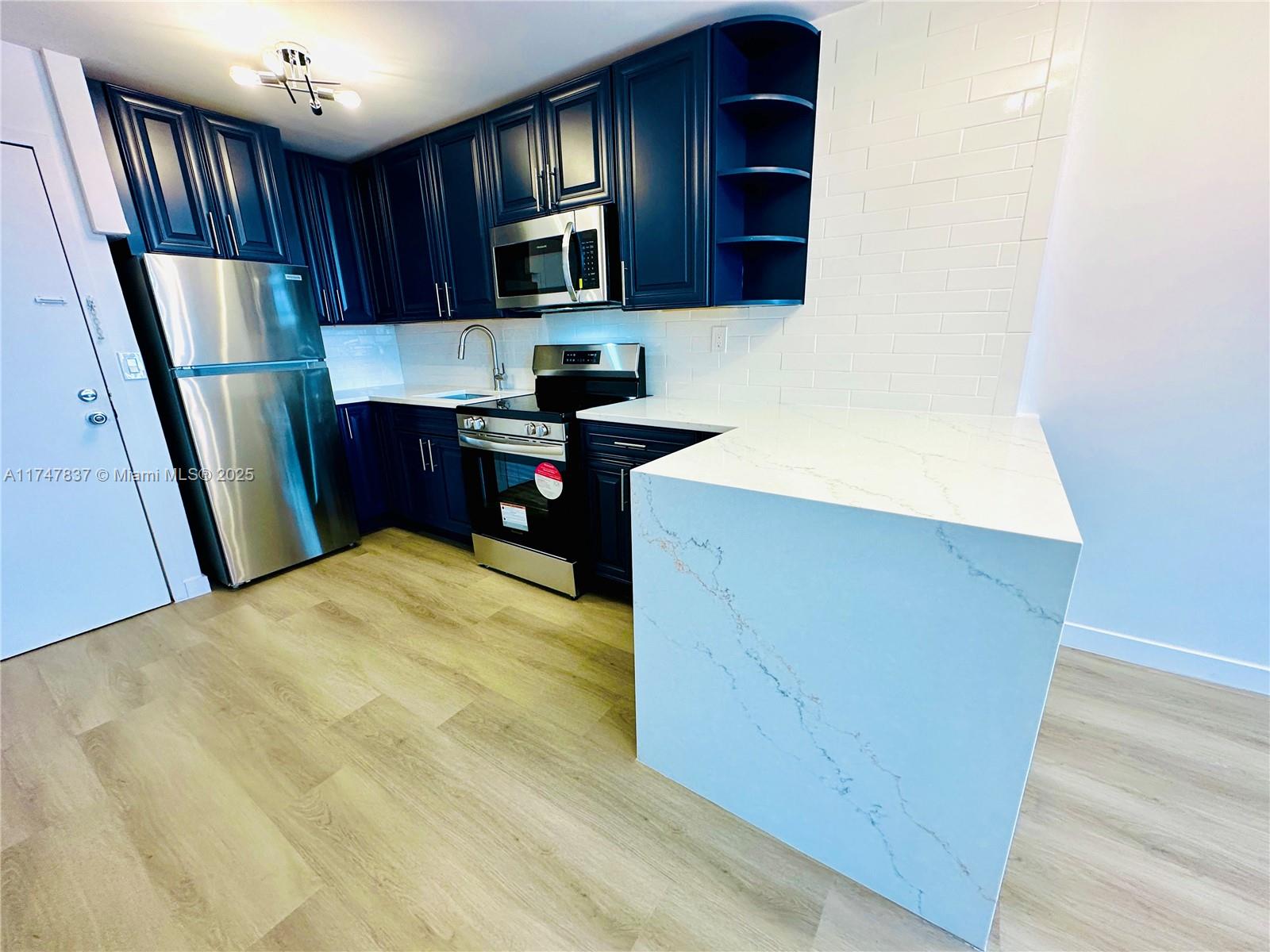Totally renovated and legally permitted one bedroom condo in the heart of South Beach, This East facing residence features stunning blue kitchen cabinetry with white veined quartz countertops, stainless steel appliances, tasteful wood laminate floors, renovated bathroom and more. Incredibly well located and just steps to the world famous sands of Miami Beach, shopping and restaurants. The building allows 30-day minimum rentals, offering unparalleled flexibility for those interested in short- or long-term rental opportunities.