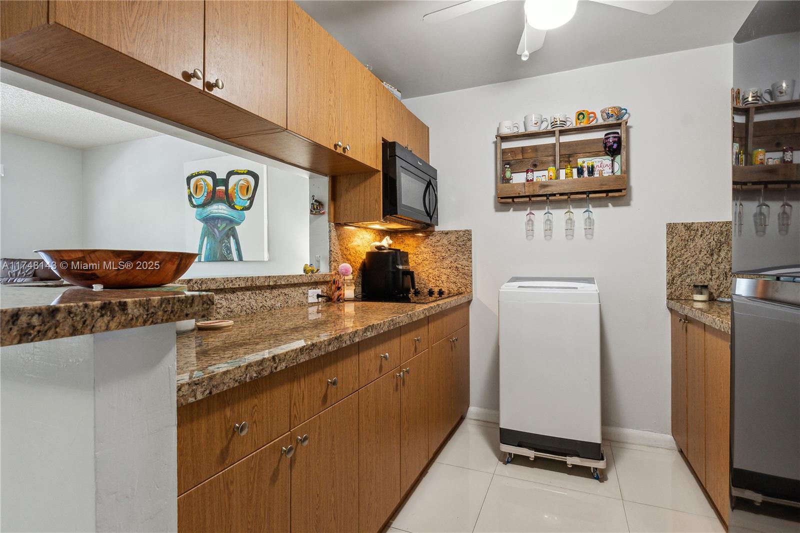 Valley Bank will finance with low Downpayment for qualified buyers! Spacious 1 bed, 1.5 bath unit in Century Village 55+ at Pembroke Pines. Furniture included. This unit features breathtaking water views and overlooks the most gorgeous sunrise. It has porcelain tile throughout, newly renovated bathrooms, custom blinds, a portable washer, and granite countertops. Unit includes a 2x3 storage space in the laundry room. The village is guard-gated and patrolled, offering serene walking trails, relaxing outdoor greenery, golf, tennis, pickleball, pools, fitness centers, a state-of-the-art clubhouse, a pharmacy, a medical office, a restaurant, and complimentary transportation. The apartment is conveniently located next to Pembroke Gardens Shops, Pembroke Lakes Mall, and Memorial West Hospital.