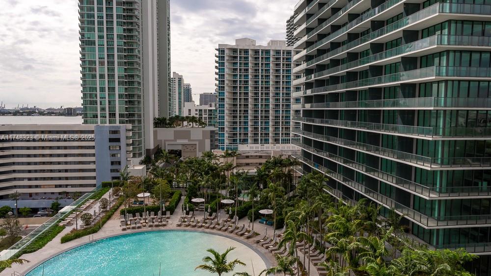 DIRECT BAY VIEWS from large balcony, living/dining room and master bedroom. 2BED/3BATH+DEN totally renovated, marble floors, built in closets, window treatments and more. Amazing building offering the best amenities including an enormous 100 linear feet pool, gorgeous party room, private screening room with state-of-the-art visual equipment, wine cellar and tasting salon, cigar lounge with private humidors, kid's game room with multimedia facilities. Tennis center with 2 lighted tennis courts, outdoor grill, bayfront park, pet park, Amara Restaurant by Beard Award winning Chef Michael Schwartz, Lobby designed by United Partners of London, private elevators, Italkraft kitchen & Sub-zero fridge. Minutes from Midtown, Design District, Wynwood and Major highways.