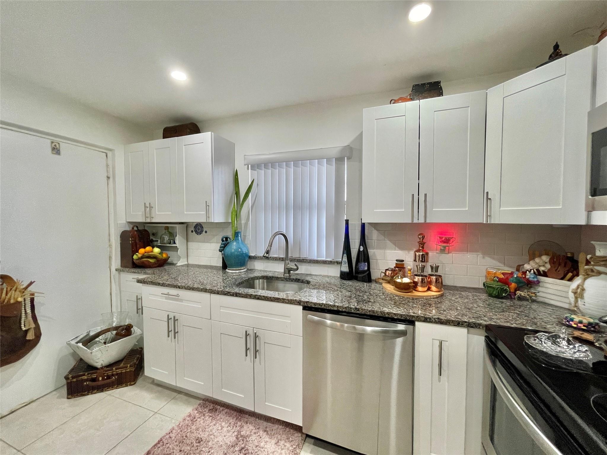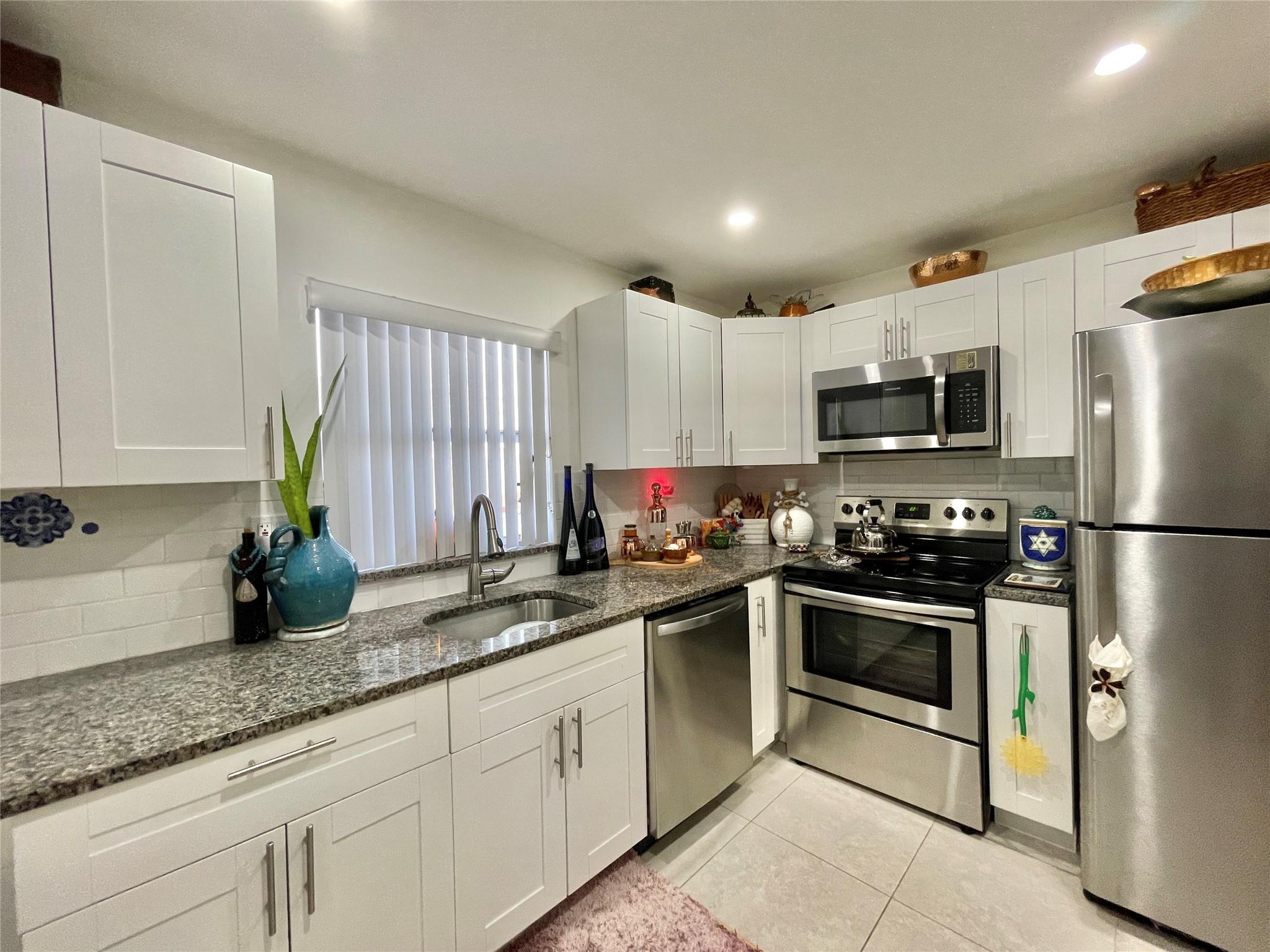 Beautifully updated 1st-floor Corner Unit w/ 2 Beds, 2 Baths, featuring a bright & open floor plan w/ uniform tile flooring throughout. The modern kitchen has white cabinets, granite countertops, subway-style backsplash, SS appliances & a pantry closet for extra storage. The primary bedroom offers a walk-in closet & a private en-suite bath w/ a walk-in shower, while the second bath features a relaxing bathtub. Enjoy tranquil garden views from your screened-in balcony. A/C & water heater are from 2022. The building has been recently updated w/ a new roof, new railings, fresh exterior paint, & a newly resurfaced parking lot. The community offers amenities, including a pool, sauna & clubhouse. Conveniently located near grocery stores, restaurants, shopping centers, Turnpike & I-95.