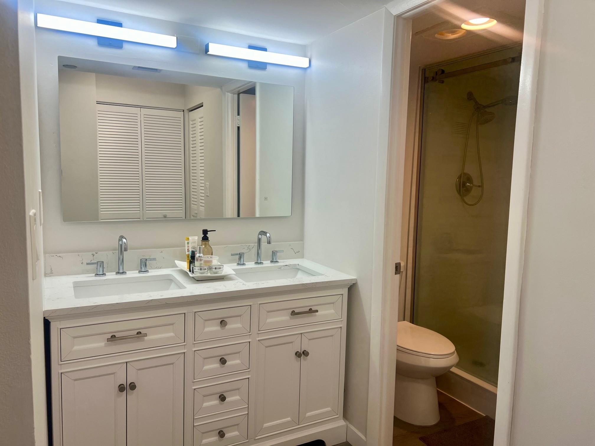 GORGEOUS 2 BED/2 BATH Condo located in Park Place, 55+ Resort style community. You'll fall in love with this cozy unit, beautiful Kitchen with quartz countertops, gorgeous golden faucet, wood cabinets, stainless steel appliances & Range Hood. New flooring with extra noise protection padding. Fully painted walls, doors and ceiling. Wireless CATV installed. New master bath vanity and shower. Amazing Amenities: Club House, swimming pool, exercise room, exercise park, tennis courts, walking/jogging Path surrounded by almost 40 acres of golf course, Bus transportation, Guard gated 24H & Roving patrol. Association fees include Water, Cable, Internet & Pest control. Building has reserves. 20% down conventional loans & 700 credit score required by the association.