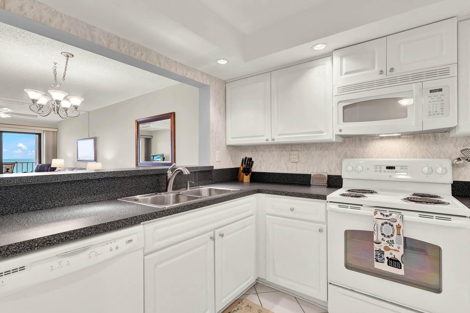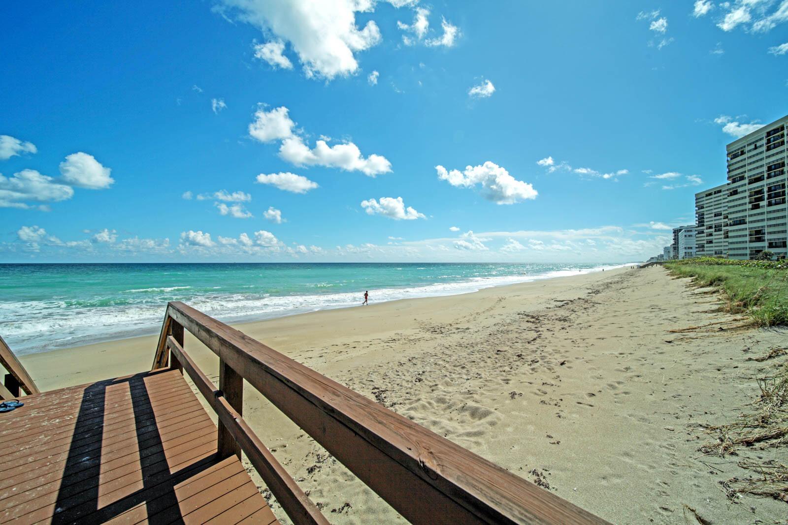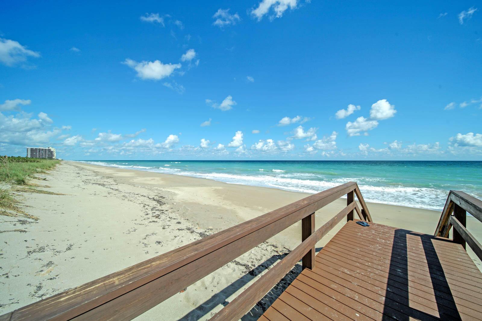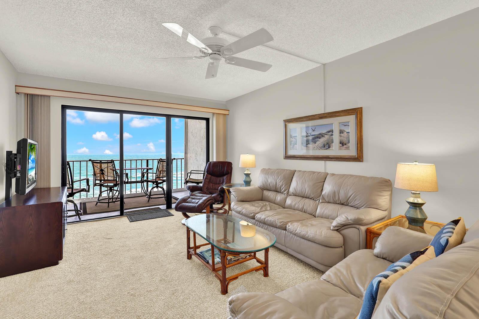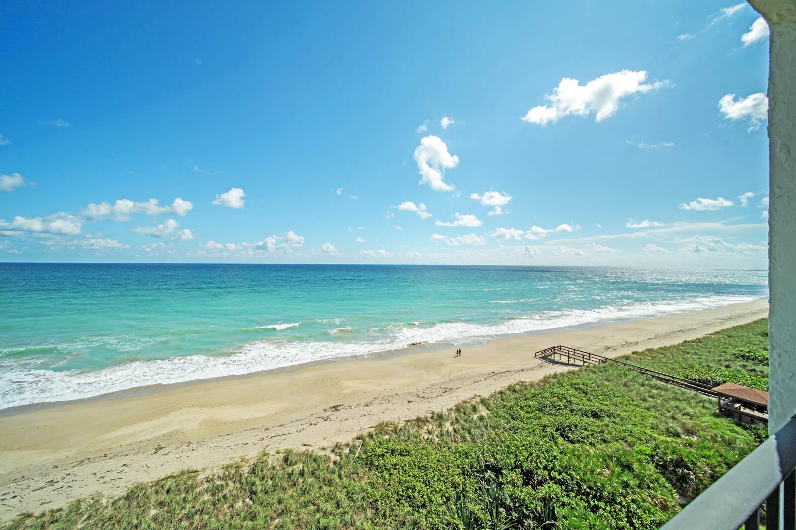 OCEAN TOWERS ON HUTCHINSON ISLAND - 7th floor with stunning, direct Ocean Views, immaculate condition, ready to move in! Features include: fully furnished, ceiling fans in every room, walk-in closets, renovated bathrooms, large window in primary bedroom overlooking ocean and beach, spacious walk-in shower, large balcony where you can enjoy a coffee with the sunrise, A/C has maintenance contract and has been recently serviced. Amenities include: gated, clubhouse, heated pool, dune walk/beach pavilion to beach, two tennis courts, pickleball court, shuffleboard, picnic tables, car wash area and extra storage on the first level. MIRS and SIRS have both been completed. This is a 1-month minimum rental building and can be rented immediately after purchasing and you can have 2 pets up to