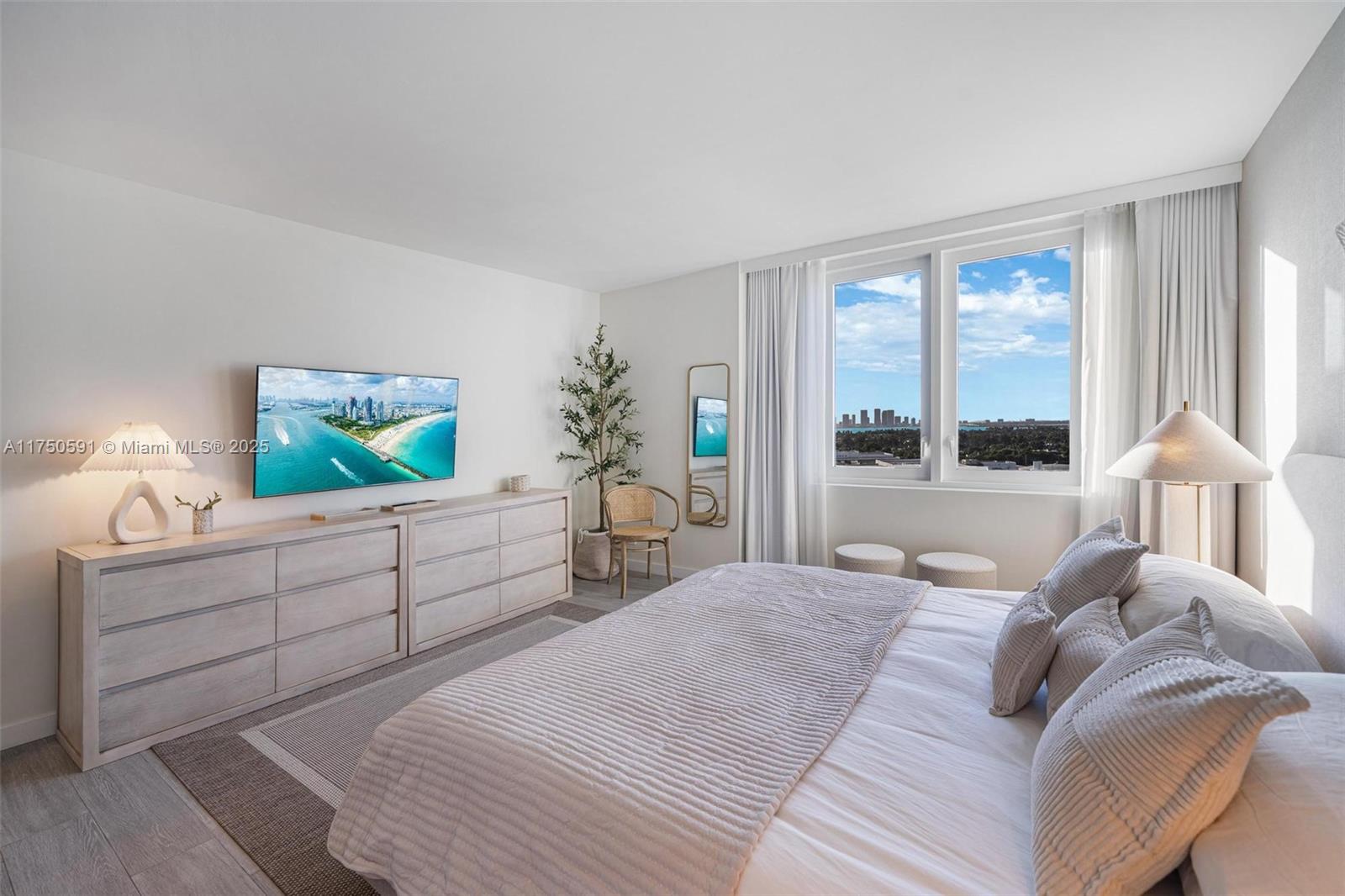 Located in the prestigious 1 Hotel at Roney, this remodeled luxury residence offers the ultimate South Beach lifestyle. Elegantly furnished with Pottery Barn pieces, it features an oversized bedroom, a spacious bathroom, and an open kitchen with built-ins. A large terrace provides unobstructed views of the sunset, downtown Miami, and the bay. The complete renovation of the building gives residents exclusive access to a new residents-only oceanfront pool and 1 Hotel’s world-class amenities, including multiple pools, a hot tub, beach services, fine dining, a rooftop lounge, SoulCycle, Anatomy Gym, a high-end spa, luxury retail, valet, concierge, and 24/7 security. A prime second home or investment, the flexible leasing policy allows 30-day minimum rentals, up to 12 times per year.