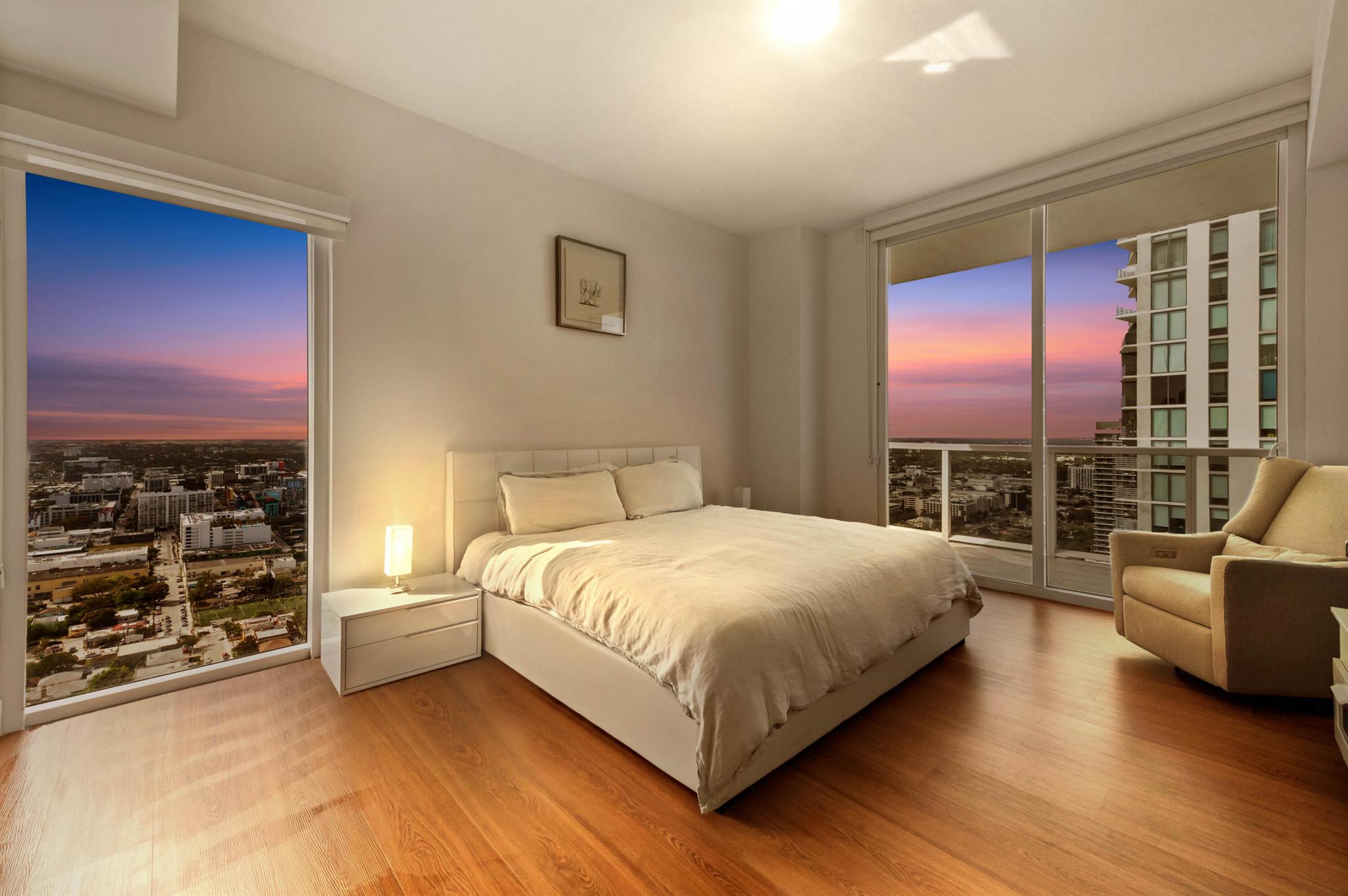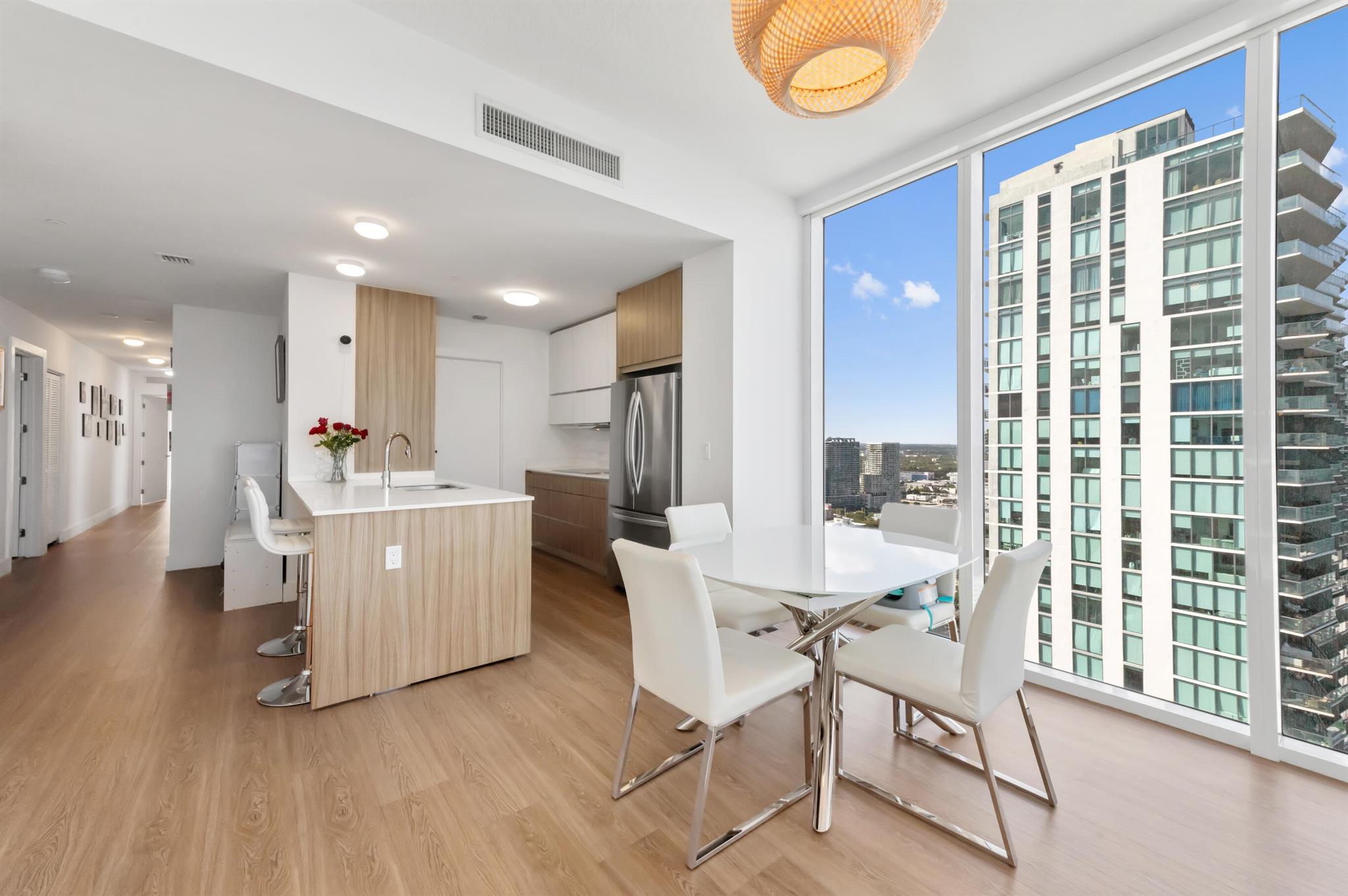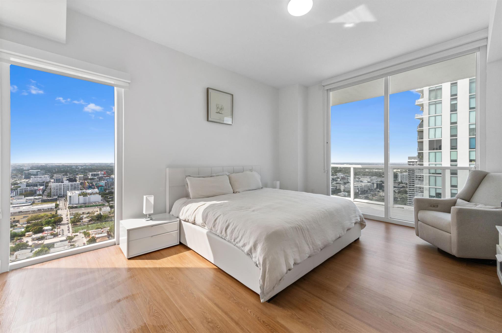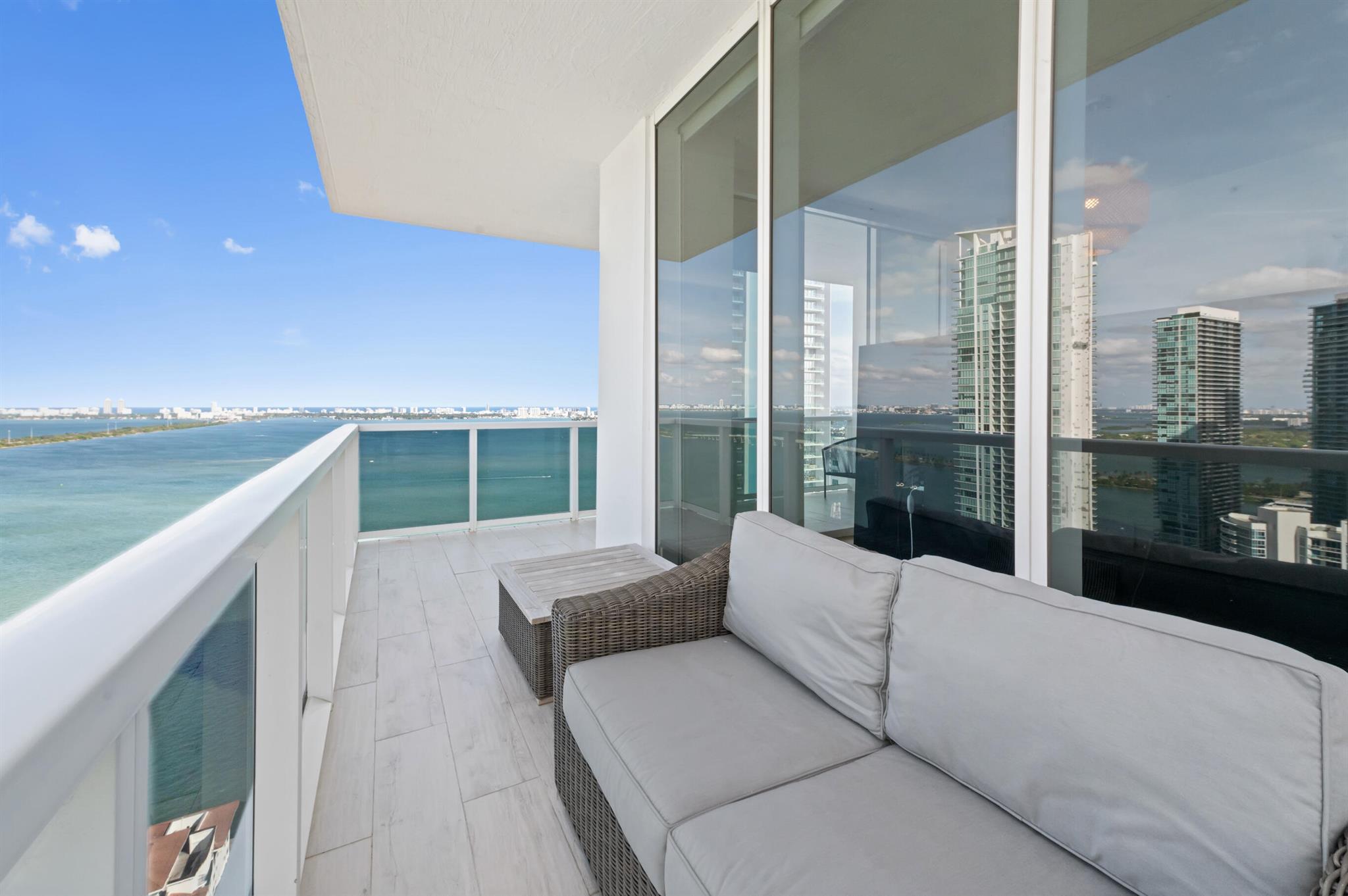 Step off the elevator into your foyer, greeted by breathtaking unobstructed views from this coveted Northeast corner Lower Penthouse. Enjoy 10ft ceilings exclusive to the LPH. With floor-to-ceiling impact glass, the open layout offers panoramic 180-degree bay views and natural light. Enjoy pink sunsets from the wrap-around terrace or the second balcony off the primary bedroom. This spacious penthouse features 3 bedrooms, 3 bathrooms adorned with custom window treatments, premium appliances, and Italian cabinetry. 2 assigned parking spaces, designated storage & 24-hour security included. Building amenities: pool, jacuzzi, yoga, gym, business center, BBQ area, and more. Located in Edgewater, walk to Whole Foods, Wynwood, parks, and just minutes from I-95.