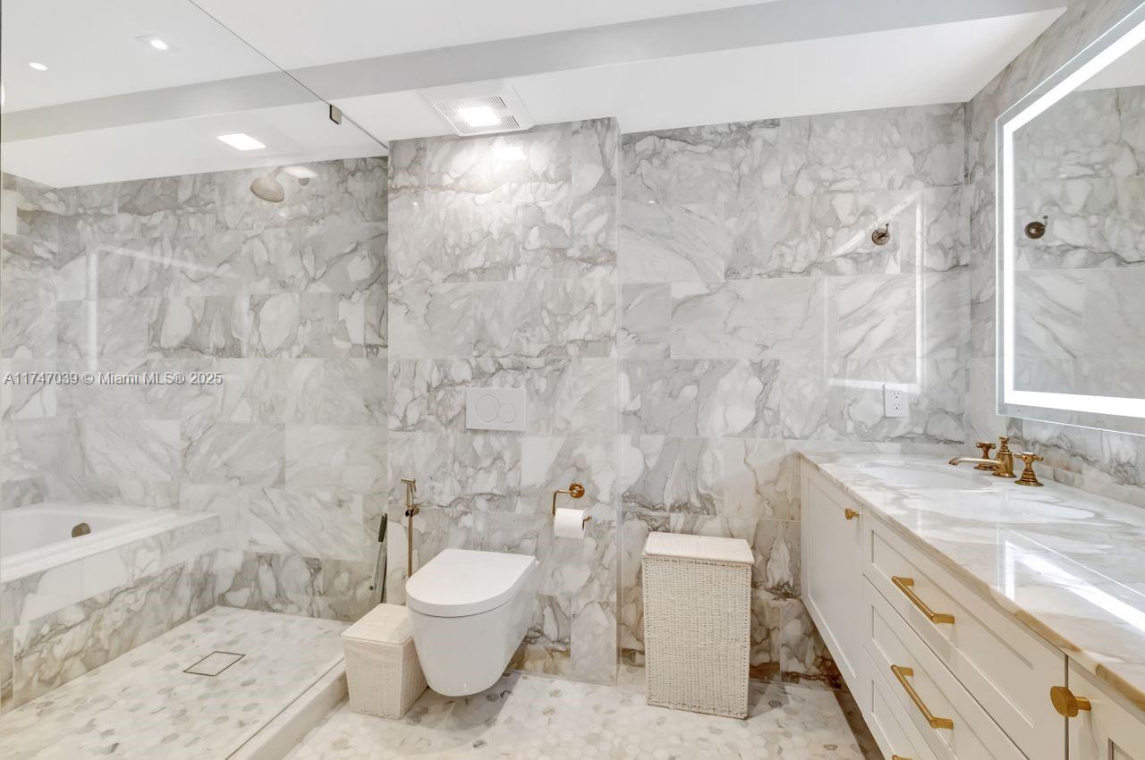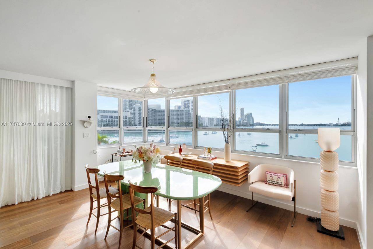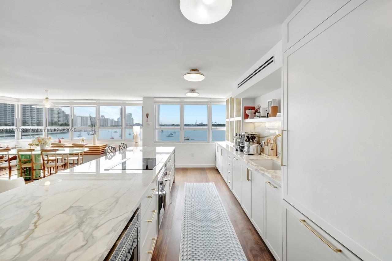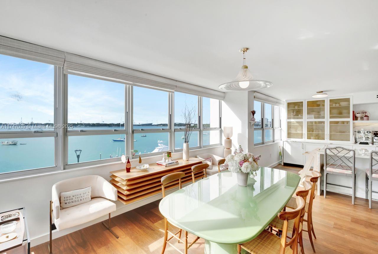 Feel like you’re sailing away from this sunny, large corner unit with breathtaking views of the bay, marina, and cruise ships. This sought-after 02 line offers water views from every room. Exquisite-Professionally Designed in 2021 with top-quality materials, including an Allied Kitchen with Calacatta Gold marble from Opustone, featuring a waterfall countertop and matching backsplash. Bathrooms are equally luxurious with Waterworks faucets, Brazilian oak wood floors, new impact windows, electric shades, and a brand-new A/C. The building offers: valet, 24/7 front desk, gym, EV charging stations, floating dock for kayaking and paddleboarding, BBQ area, and more. Prime location across from The Standard Hotel and steps from Lincoln Road, top restaurants, the beach, and more.