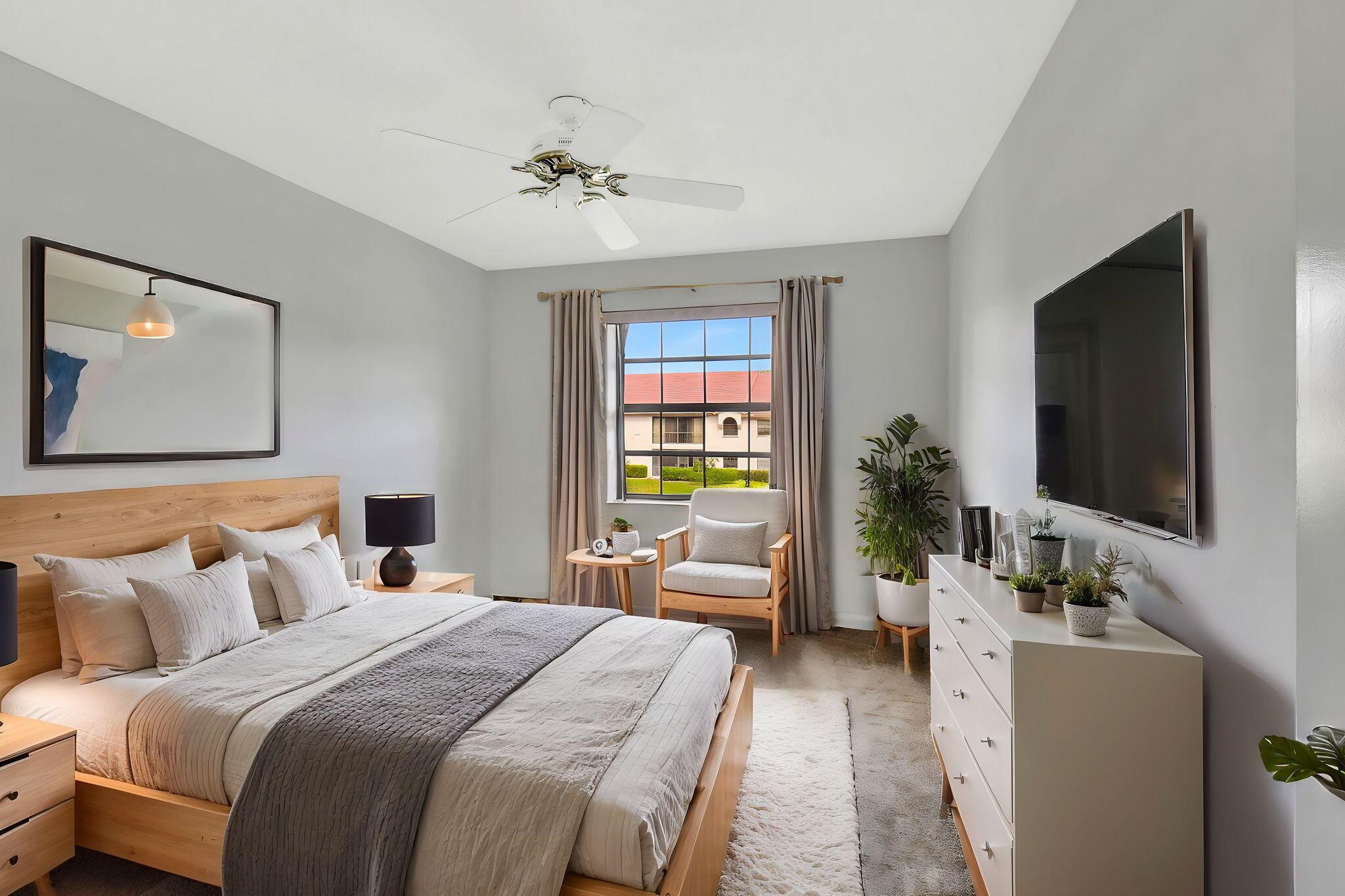 Buyers changed their minds due to their pet. Their loss is your gain! LAKE VIEW! WALK TO THE CLUBHOUSE! Boasting 1657 square feet of bright and airy living space, this home is designed to offer a serene and spacious environment with a glistening lake view. As you enter, you'll be welcomed by your private staircase and elevator, making access effortless and exclusive. The entire interior has been freshly painted, allowing you to move right in and personalize the space at your own pace. The split floor plan provides privacy and convenience for all. The large eat-in kitchen has generous storage space and a large pantry to keep everything organized. The master bedroom features a large walk-in closet and en suite with dual sinks, vanity, Roman tub and separate walk-in closet.