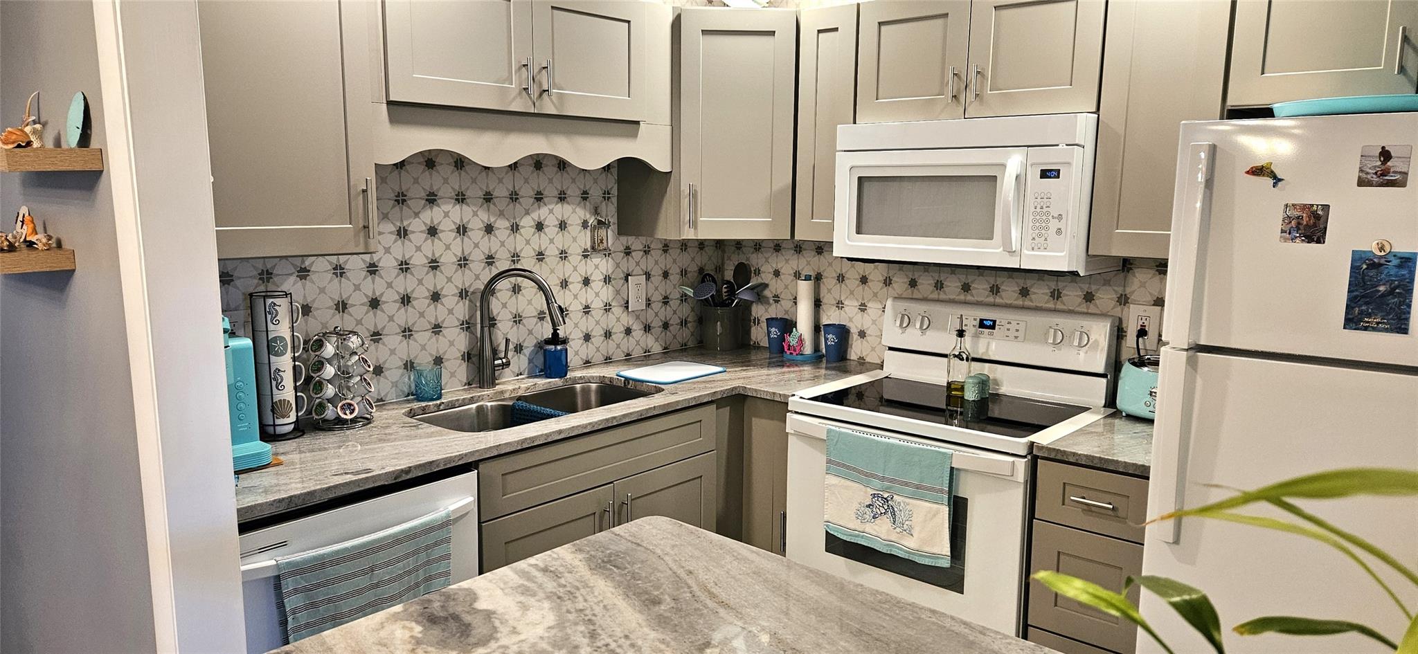 Welcome to this beautifully remodeled 1st floor, 1 bedroom-1 bath condo. Light, bright & airy, this unit is perfect for full time residency or seasonal stays. High end shaker cabinets. Granite tops. Beachy pastel color palette. Luxury vinyl flooring. Vista Royale is a very active 55+ community with loads of amenities. The onsite public restaurant will soon be delivering to residents! Public golf course is being completely revamped by golf pros! Just minutes to toes in the sand, shopping, dining, entertainment, healthcare and more. Room sizes approximate. Buyer must verify.