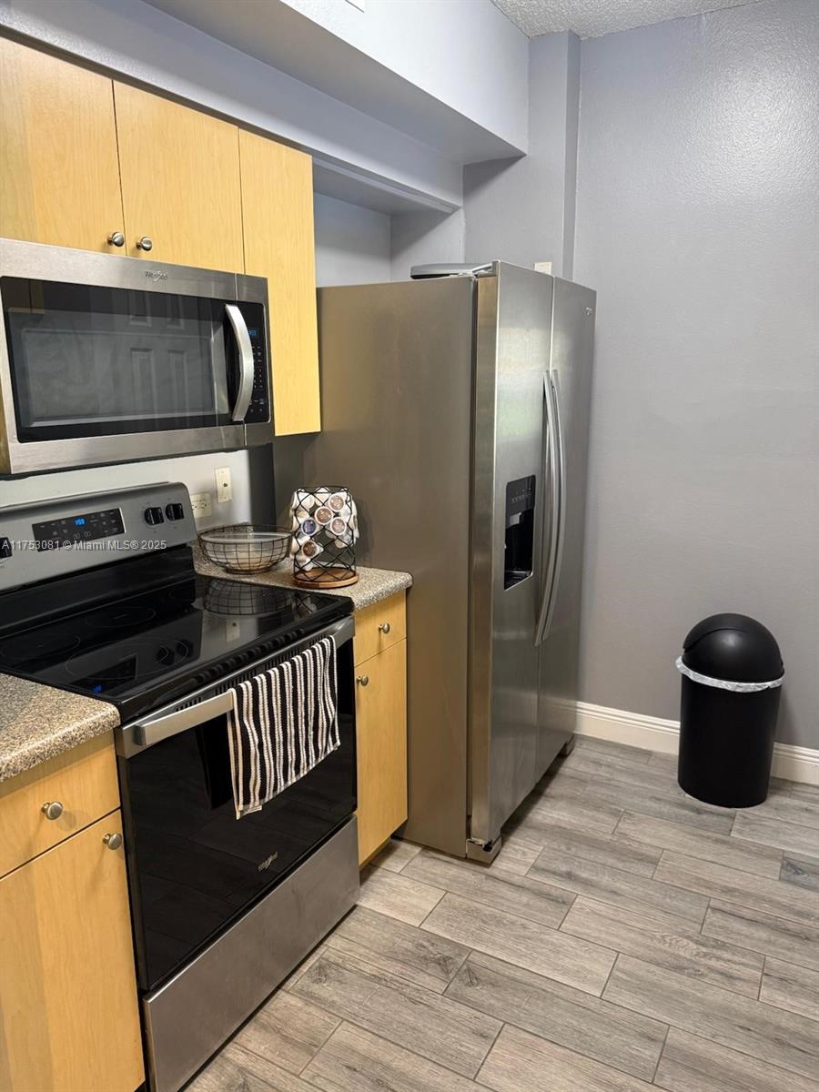 Welcome to your next Luxury Smart Condo, located in the Heart of Miramar's El-AD Residences. Step inside this 1 Bedroom / 1 Bathroom home and be greeted by sleek stone tile flooring and stainless steel appliances in the kitchen. The automatic door lock with Blink camera provides peace of mind, while the Wyze Panoramic camera in the living room, allows you to control the bedroom and hallway lighting with just a touch of a button. With sensors on every window, a Nest Thermostat, and all cameras connected through Smart Things, you can rest easy knowing your home is efficient and secure at all times. This Smart Condo also features; newer paint throughout, new water heater (installed Feb. 2025), AC (serviced 2025), new roof (2024). Don't miss out on this opportunity to Own your next Smart Home!