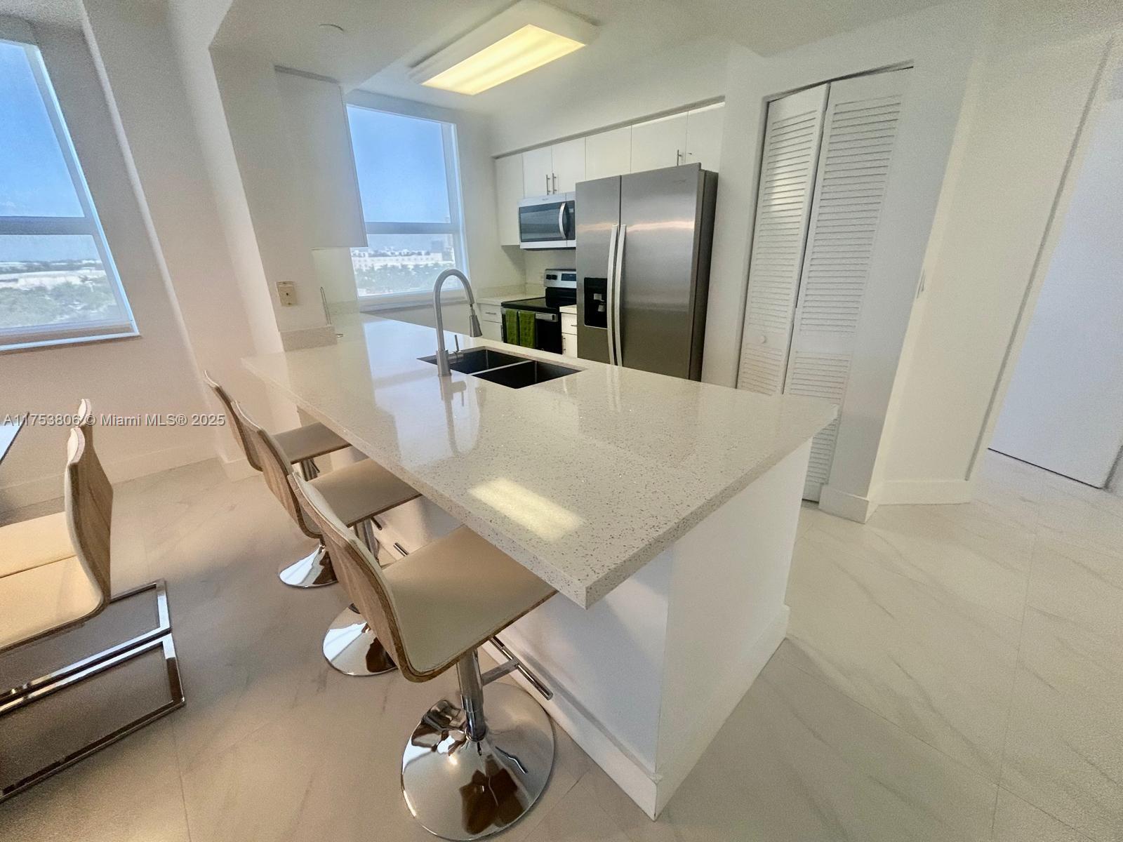 Corner 2/2 apartment with beautiful views to Aventura Mall and Aventura skyline. New modern floors and upgraded open kitchen with quartz countertop and SS appliances from 2022. Located in a luxury building in the heart of Aventura within walking distance from shops, Turnberry Golf and 5 min drive from the Beach. Building has resort alike amenities overlooking the golf course: two swimming pools, jacuzzi, barbecue area, fire pit lounge area, kids playground, a very equipped gym, with a yoga room and saunas in locker rooms, game room and party room. Low maintenance that includes Internet & Cable. Great as investment, second home vacation or place to live in.
