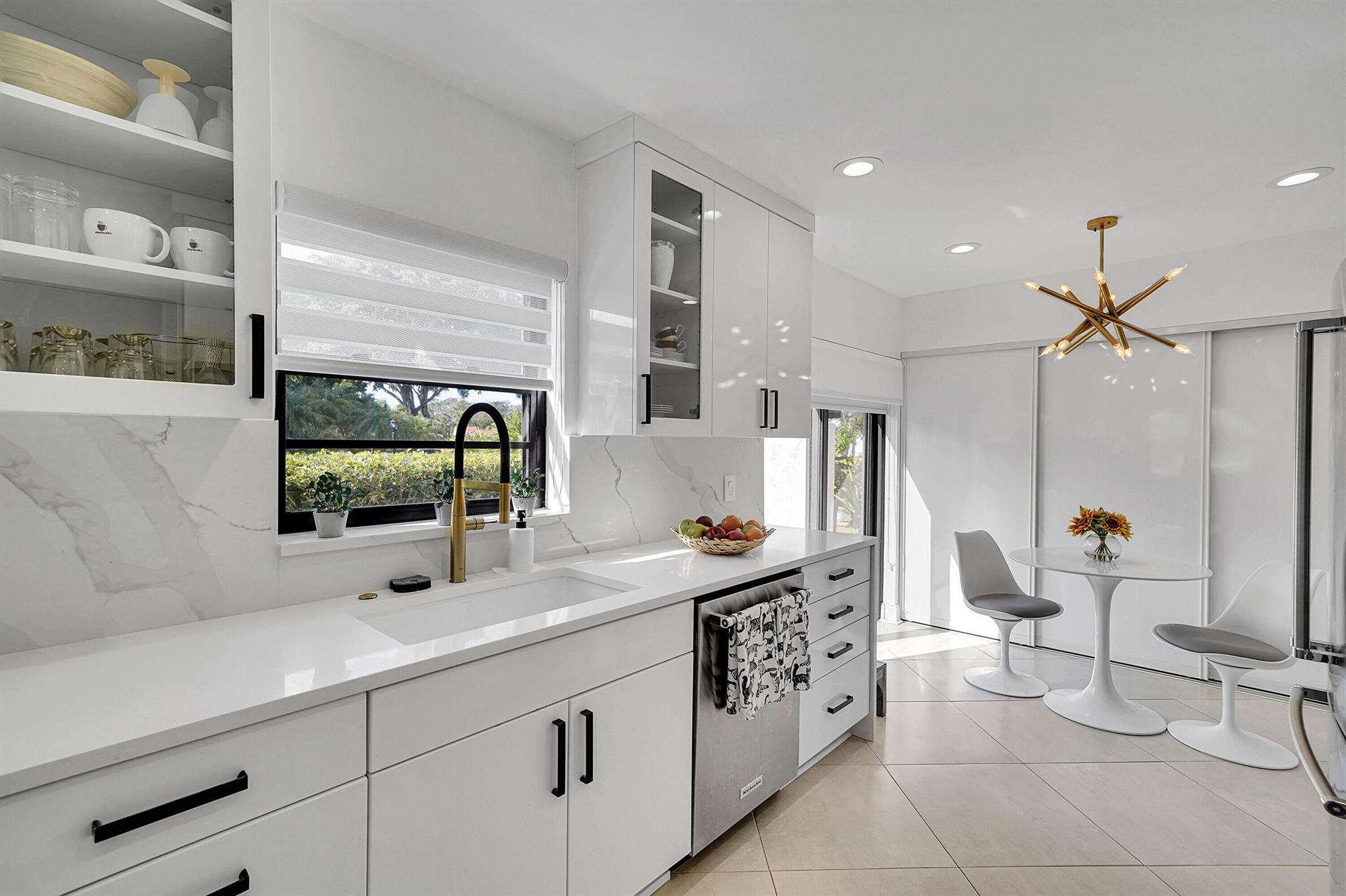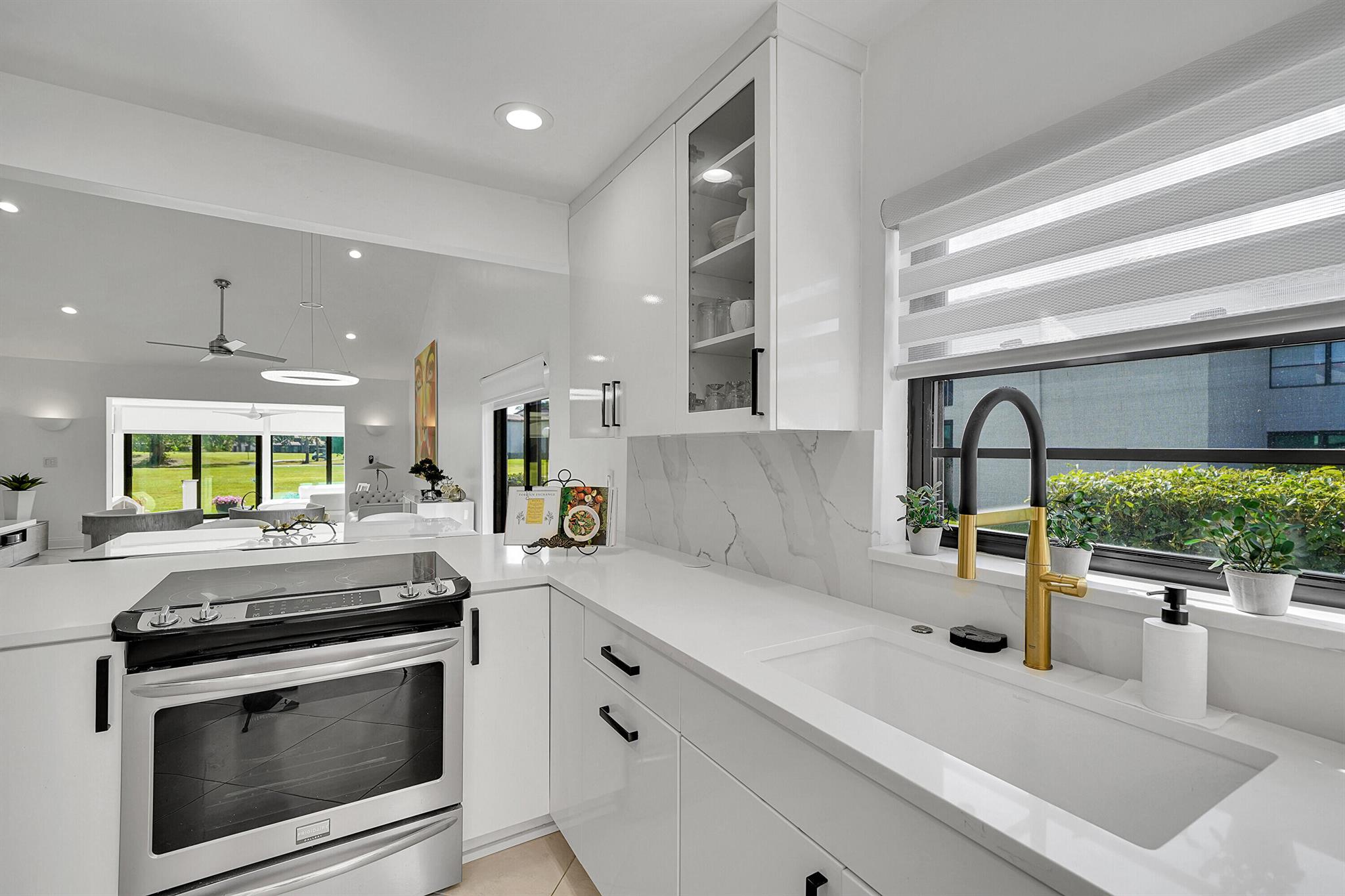 Beautifully renovated 2 bedroom 2 bath villa on golf course. Impact glass on all windows and doors. New roof,exterior painted in 2023,driveway paved 2024. New cambria quartz kitchen countertops and backsplash. Beautiful light fixtures and fans. Pop up electrical outlets. interior painted 2024 and no popcorn on ceilings. Custom closets. This is move in ready with nothing to do. Front patio and side patio for entertaining. Large glass enclosed back patio. Tankless water heater and full size washer and dryer. Feels like a private house. Cypresses has 2 pools and clubhouse. Not mandatory to join country club.