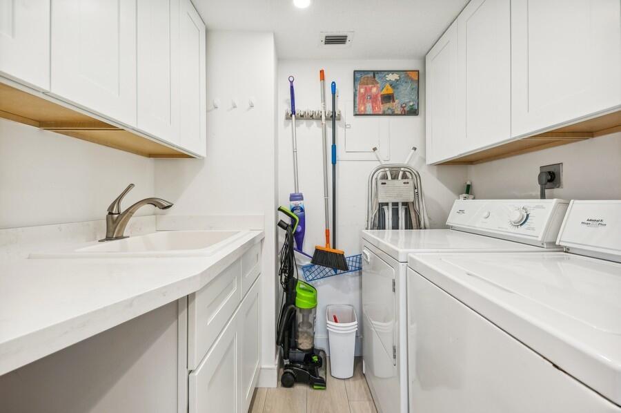 This stunning residence is located across from the beach with deeded beach access and features an updated kitchen with gorgeous quartz counters and sleek cabinetry. The updates continue throughout the residence, including luxury vinyl flooring, beautifully renovated guest bath and powder room, oversized laundry room with storage and all impact glass windows and doors. The water heater and a/c are newer and there is a whole-home water filtration system. The balcony views are absolutely breathtaking from this third floor residence. This is an ocean area opportunity not to be missed! Click More to view the fabulous Mayfair amenities. *dining light fixture and water filter excluded* All offers considered. *