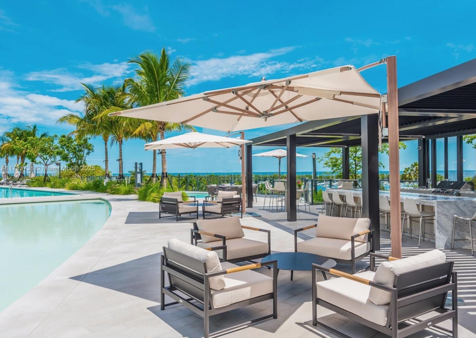 Welcome to Park Grove, Coconut Grove's ultimate luxury haven. This 1 bed, 1 bath retreat blends impeccable design with unparalleled comfort. The European-inspired kitchen boasts top-of-the-line appliances, a gas cooktop, marble countertops, a striking mirrored backsplash and a private terrace with glass walls that frame breathtaking views of lush greenery. Enjoy the convenience of a parking space and indulge in world-class amenities, including a resort-style pool with cabanas, Club Residence private rooftop pool, media room, top notch fitness center, a wellness lounge with steam room and sauna, on-site dining, a business center, a children’s play area, and more. With 24/7 concierge, valet, and security, every detail is designed for effortless luxury. Welcome home.