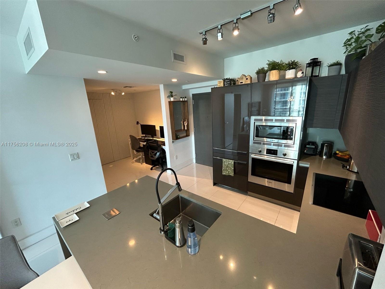 Stunning city views from this bright & spacious 1 bed + DEN/1 bath residence located in one of the most elegant buildings in the Brickell area. The Bond is set in the heart of the city surrounded by world-class dinning, shopping, food markets, parks and the Miami's vibrant lifestyle. This condo features European-style kitchen with Bosch appliances, 9 foot ceilings, high-impact glass sliding door and window, walk-in closet, new washer and dryer. One assigned covered parking space, EMV charging stations. Enjoy resort-style amenities including a sundeck, fitness center, heated pool, steam & sauna room, BBQ, cabanas & high speed elevator. Pet friendly building!