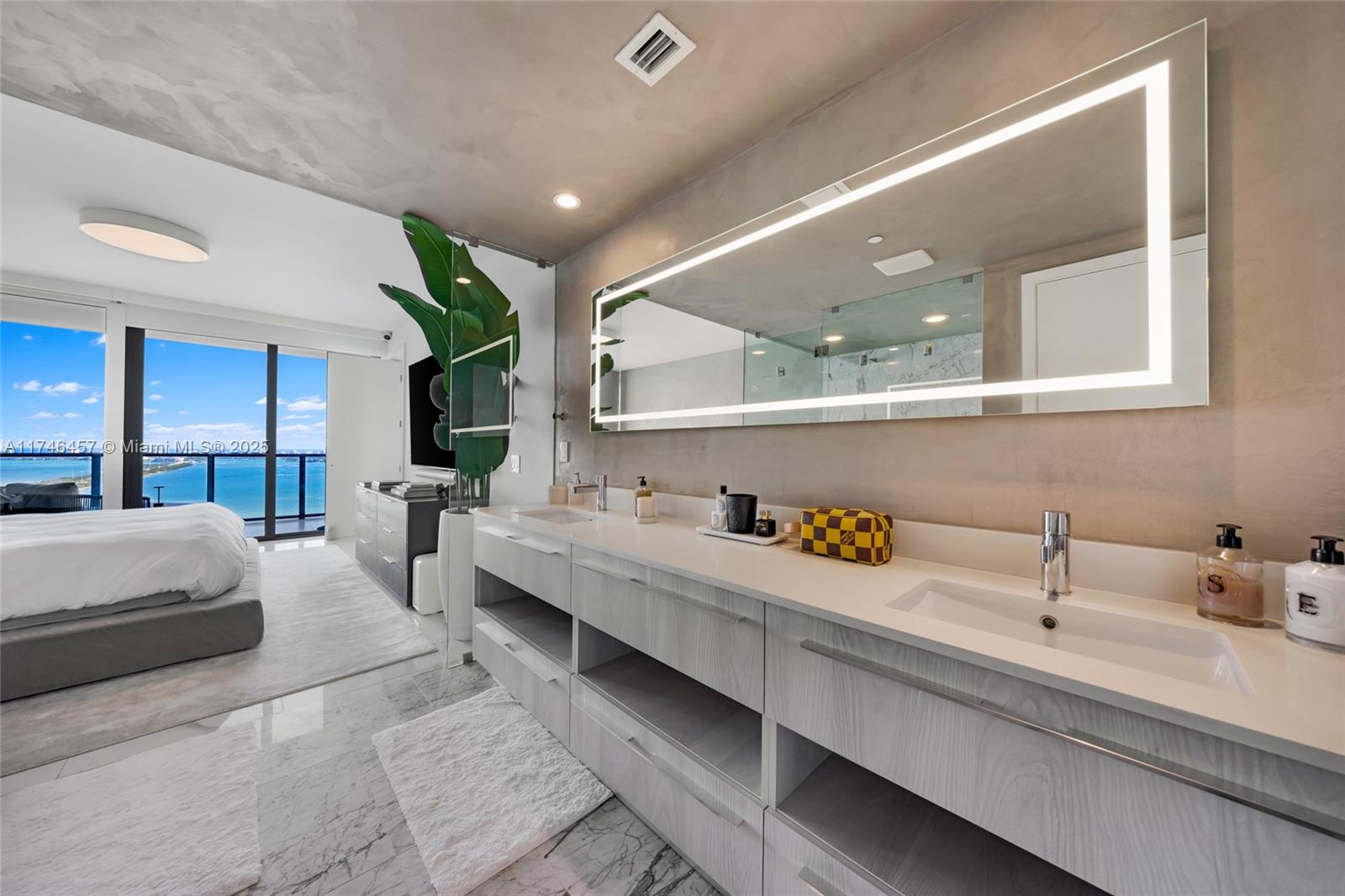 Indulge in opulence at One Paraíso! Impeccable 3 bed + Den / 3.5 bath condo, 1,526 sq ft indoors + 220 sq ft balcony. Porcelain tile floors thru out, a kitchen island, countertops and backsplash adorned with exquisite stone. Many upgrades thru out the condo to make it one of a kind. Revel in unobstructed bay views, where each sunrise becomes a masterpiece. Luxuriate in resort-style amenities: a state-of-the-art gym, spa with an oversized jacuzzi, lap pool, adults-only pool with gourmet dining by Amara at Paraíso, private theater room, basketball court, tennis courts, children's play area and more. This model-like unit is a rare gem. Arrange your exclusive viewing with the listing agent and elevate your lifestyle amidst unparalleled sophistication and breathtaking panoramas.