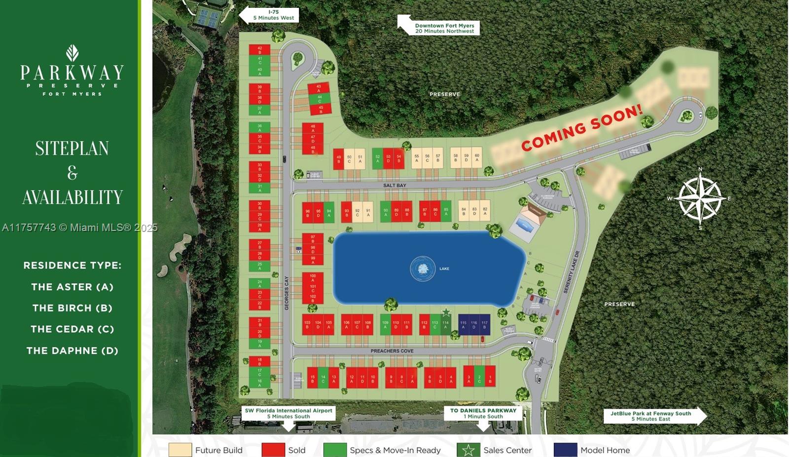 MOVE-IN READY HOME!PARKWAY PRESERVE is a Brand-New 1-Story Villa & 2 Story Townhome Community w/Garage, NOT IN A FLOOD ZONE! THE ASTER, Lot 109 w/LAKE VIEWS is a gorgeous 1-story floorplan w/3 large BDS & 2.5 BAS, 1,590 sq. ft. of flexible open-concept interior living space where the living and dining areas flow seamlessly together. The Aster boasts luxury features & finishes including large walk-in closets, brand-new stainless-steel appliances, a covered patio to enjoy the sunny Florida weather & private 1-car garage that can be securely accessed from the inside of your residence. At the heart of Parkway Preserve a modern community clubhouse with heated pool, spa, fitness center & social lounge will offer homeowners the perfect spot for relaxation and fun in the sun all year round.