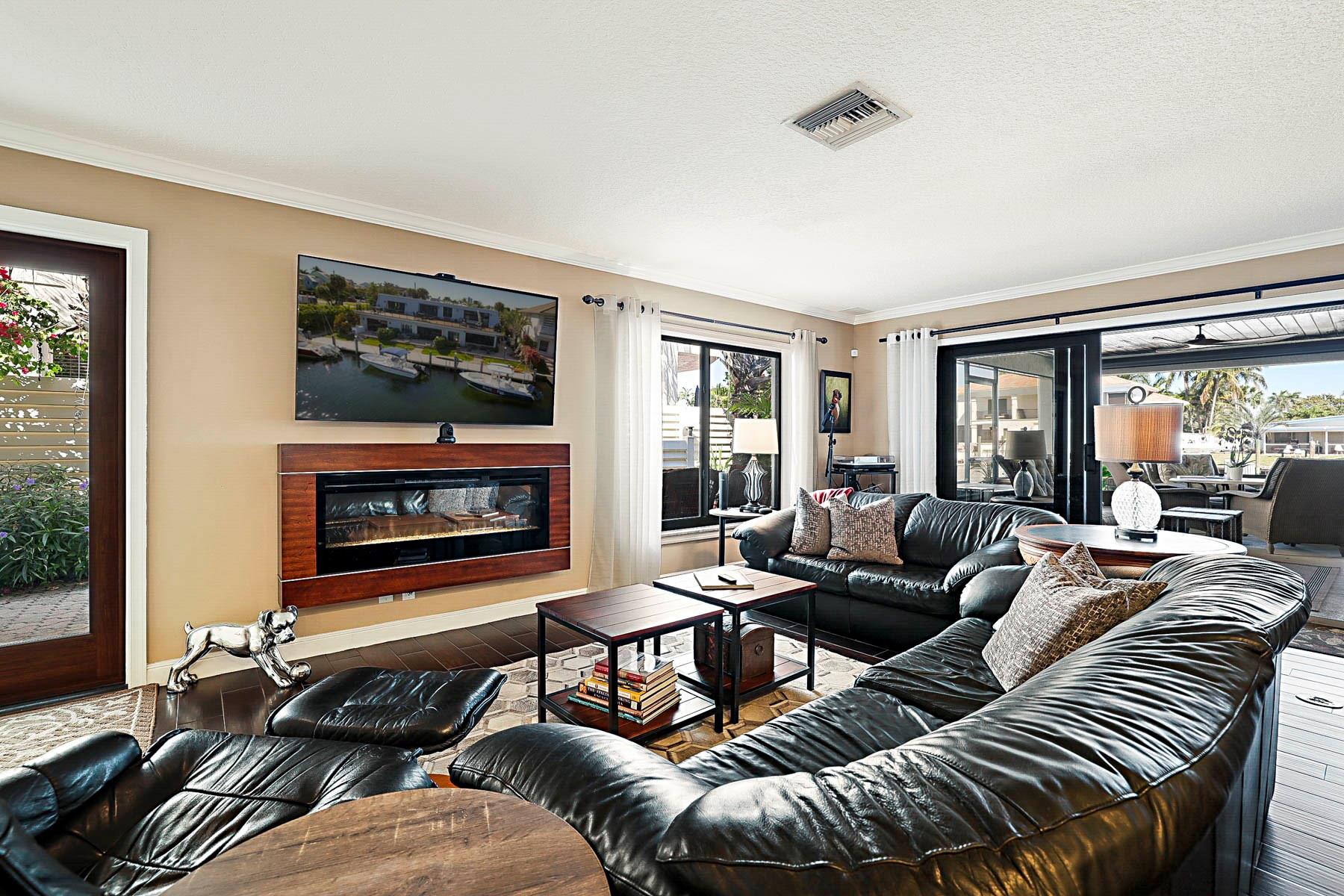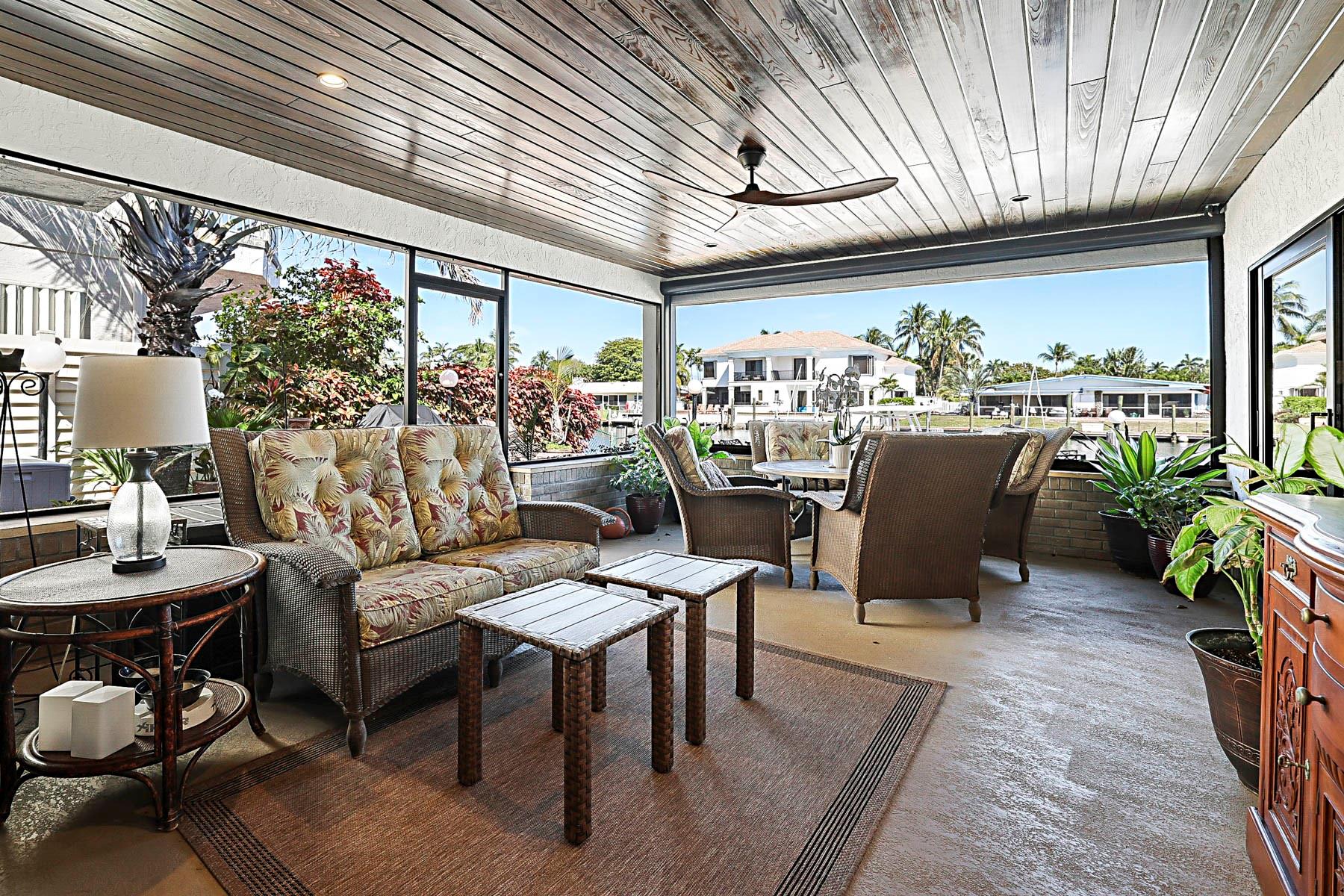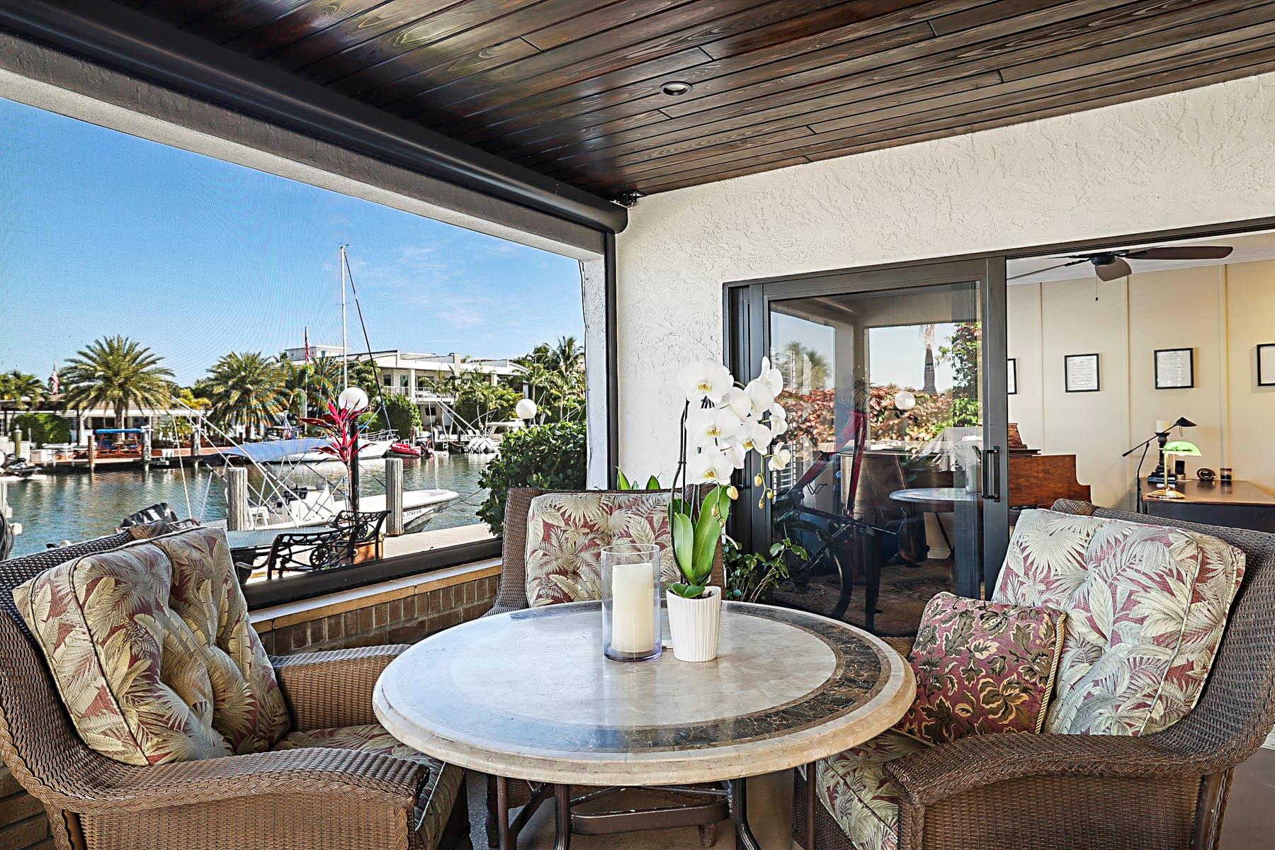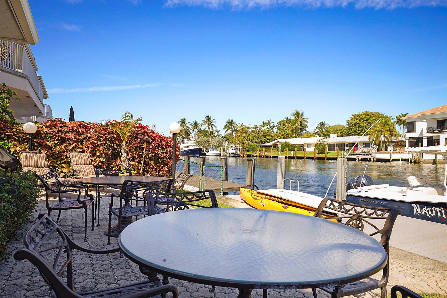 This is an unusual opportunity to own a 3-bedroom 2.5 bath ground floor unit remodeled in the Marina area of Lighthouse Point on the widest canal in the city, so close to the Hillsboro inlet, there is dock space when available on the property. The Unit was decorated by a designer in the last few years. Some of the features in this warm inviting home are stainless steel appliances, beautiful granite counter tops, decorative electric fireplace, full size washer and dryer and an amazing gourmet kitchen and butler bar pantry. Enjoy the use of a beautiful, screened Patio with T and G ceiling overlooking the beautiful wide water views. Launch your Kayak or Paddle Board from the dock and be in the Atlantic Ocean in 10 minutes (literally). Wired for Generator. You must see this gorgeous unit!