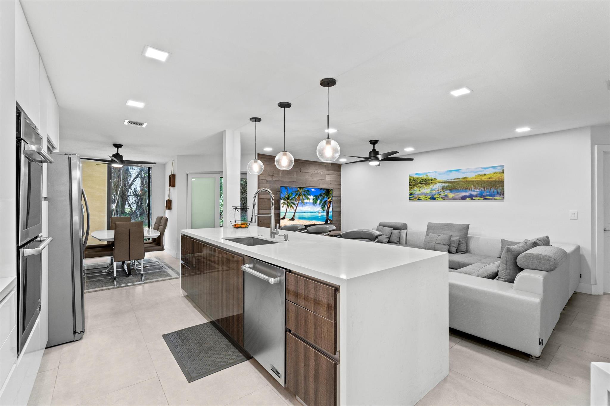 Stunning Renovation in Platina - Resort-Style Living Awaits!This fully renovated 2-bedroom, ground-floor unit is the perfect blend of modern luxury and everyday convenience! With a one-car garage and an in-unit laundry room, this home has been designed for effortless living.Step into a chef's dream kitchen featuring a spacious island with over 10 feet of quartz countertops, a matching backsplash, high-end Jenn-Air appliances, LED under-cabinet lighting, and stylish West Elm pendant lights--the perfect setup for cooking, entertaining, or simply enjoying your morning coffee.The sleek, spa-like bathroom is outfitted with quartz countertops and premium Brizo faucets, offering a true retreat at the end of the day.
