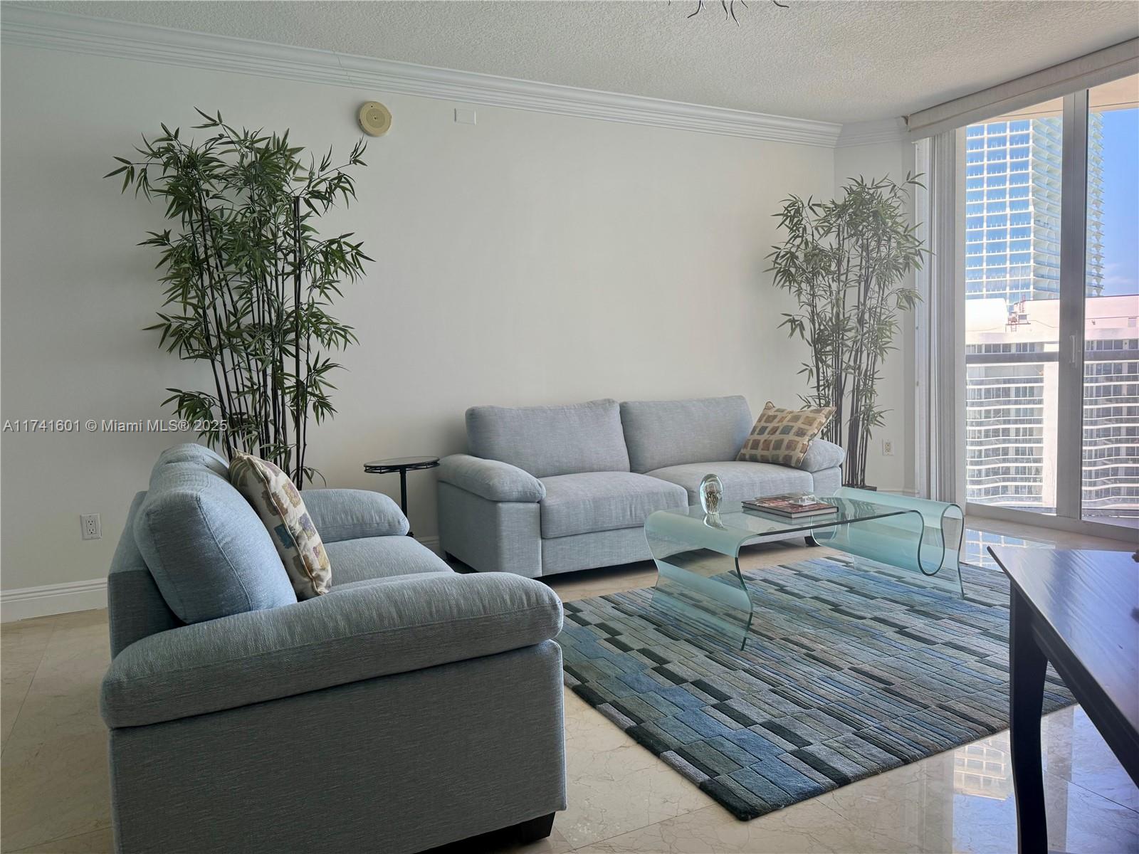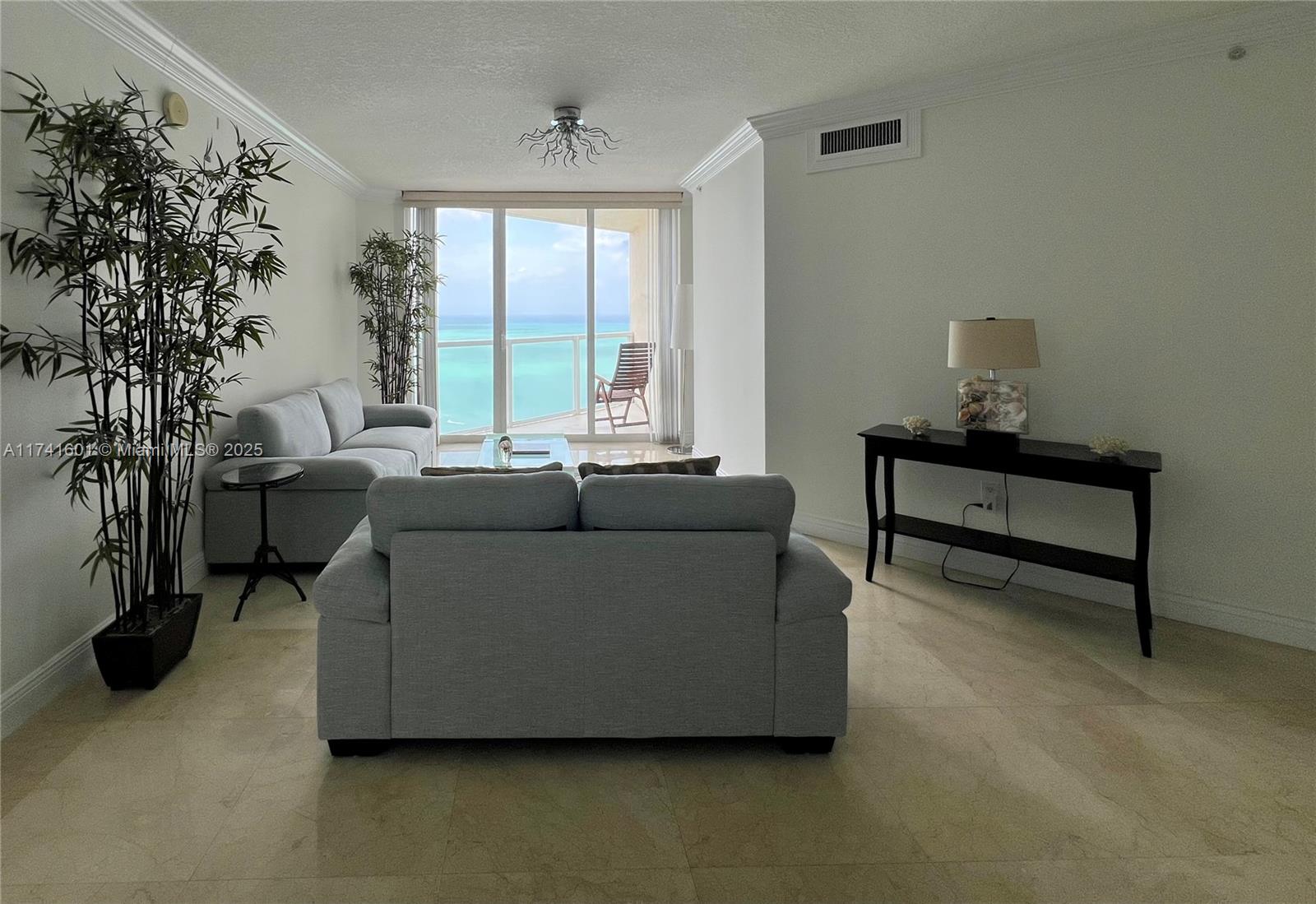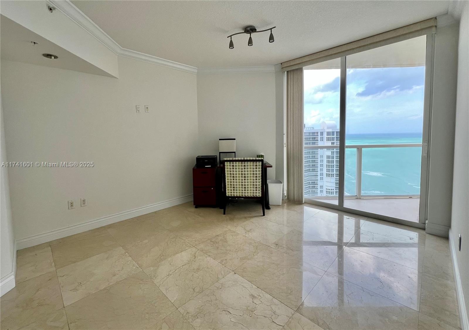 Welcome to the bright and spacious 2-bedroom plus den, 2.5-bathroom residence in the prestigious La Perla Condo, located in the heart of Sunny Isles Beach. This well-maintained freshly painted unit features marble floors throughout. Versatile den that can serve as a third bedroom, office, or media room. Updated white kitchen with granite countertops & new appliances. Gorgeous NE views from three terraces with ocean & city view. Resort-style living with access to a heated oceanfront pool, full beach service, fishing pier with restaurant, gym, jacuzzi, kids room, 24/7 security. La Perla allows short-term rentals, 12 times per year. Enjoy the vibrant lifestyle with nearby shopping, dining, & entertainment options within walking distance. Minutes to Aventura mall and Bal Harbour Shops.