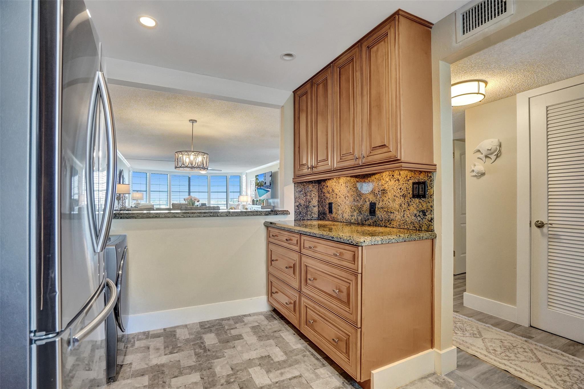 Stunning, luxurious waterfront living in this 2BR/2BA condo with 1450 SF of modern space. This turn-key unit features a renovated kitchen with granite countertops, stainless steel appliances, and custom cabinetry. New elegant plank ceramic floors, new hurricane compliant windows/doors, plantation shutters, and newly painted! Spacious master and second bedroom feature large walk in closets. Washer/dryer in unit! One parking space in the covered garage. The secure building finished its concrete restoration and almost everything is new, including modernized elevators, new dock, new roof, seawall updates, and a heated pool that gets sun-all day. Pet-friendly and just steps from top dining, shopping, nightlife, and minutes from Lauderdale- by-the-Sea Beach. Low HOA’s. Parking space 41