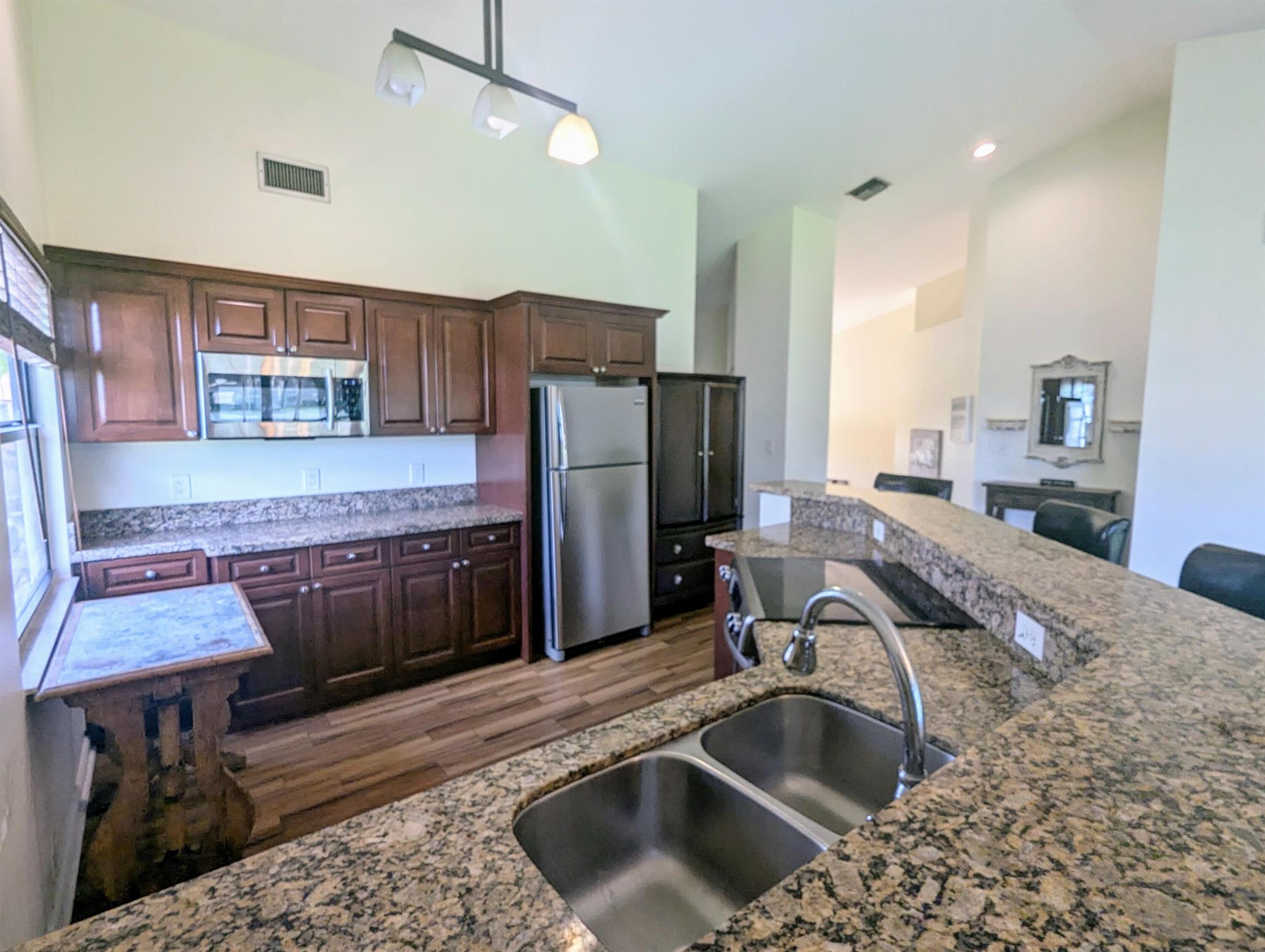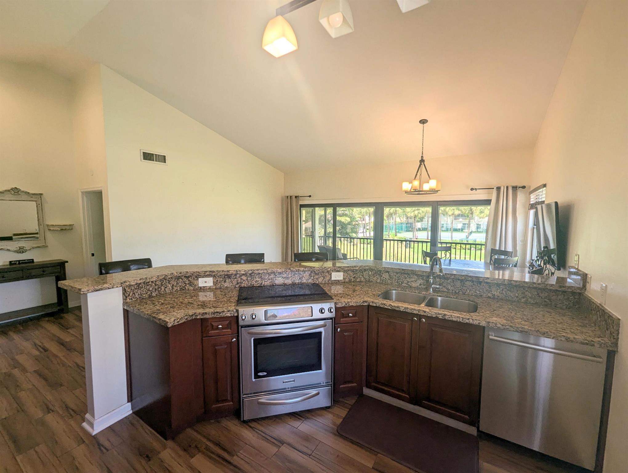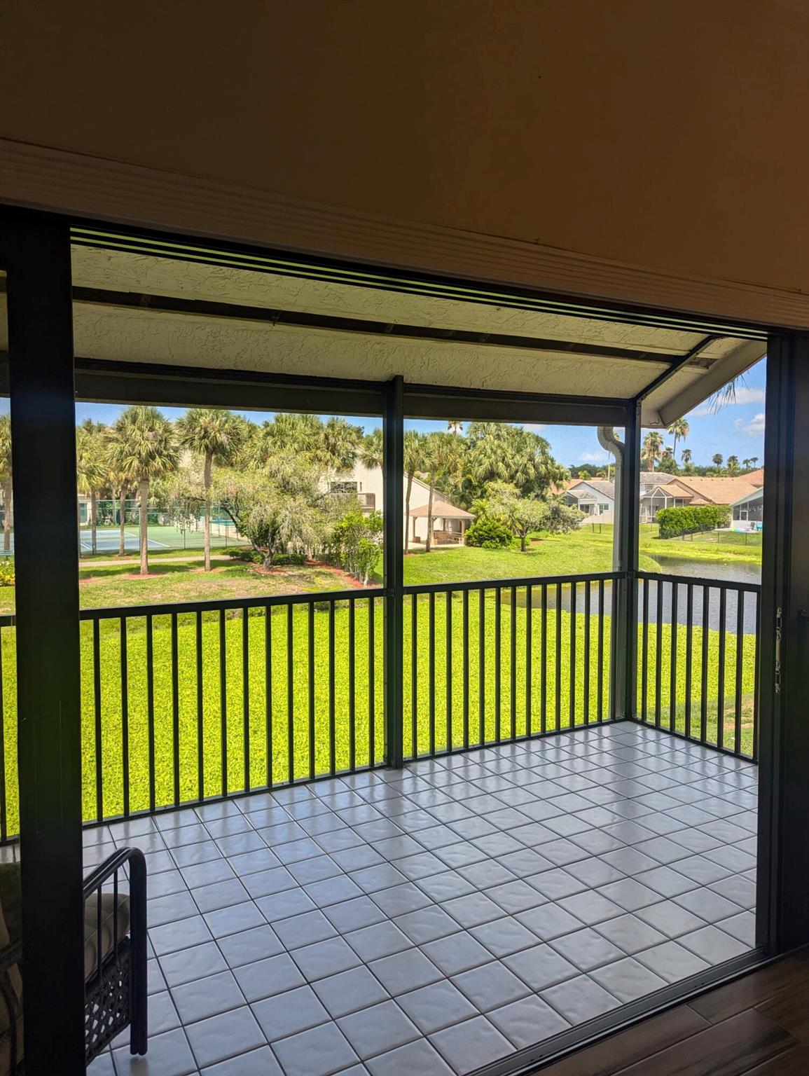 Lovely 3/2 condo overlooking the lake offers tranquil water views from most rooms with a spacious screened patio affording super privacy! This well-maintained condo is a spacious corner unit and has been recently updated with Impact Windows throughout, new bathrooms, wood-tiled and laminate flooring (no carpets), newer A/C and Hot water units, plus a community pool and tennis courts! Owner remodel offers open floor plan, bright & spacious kitchen/living/dining areas with high ceilings providing a more comfortable living space than similar units in The Shores II. Three separate bedrooms offer privacy, with in-unit W/D and A/C. Unit is located on the 2nd floor with a 1 car garage and driveway space for 1 additional vehicle. HOA approval required; freshly paint too! Close to everything