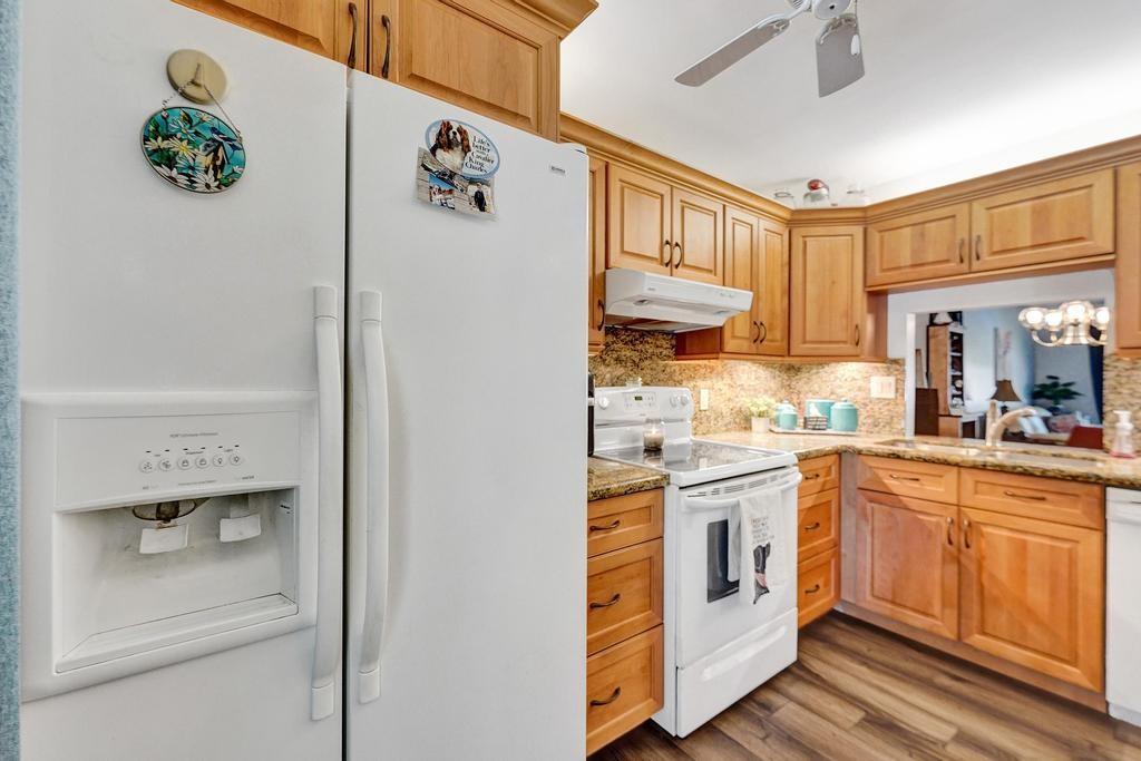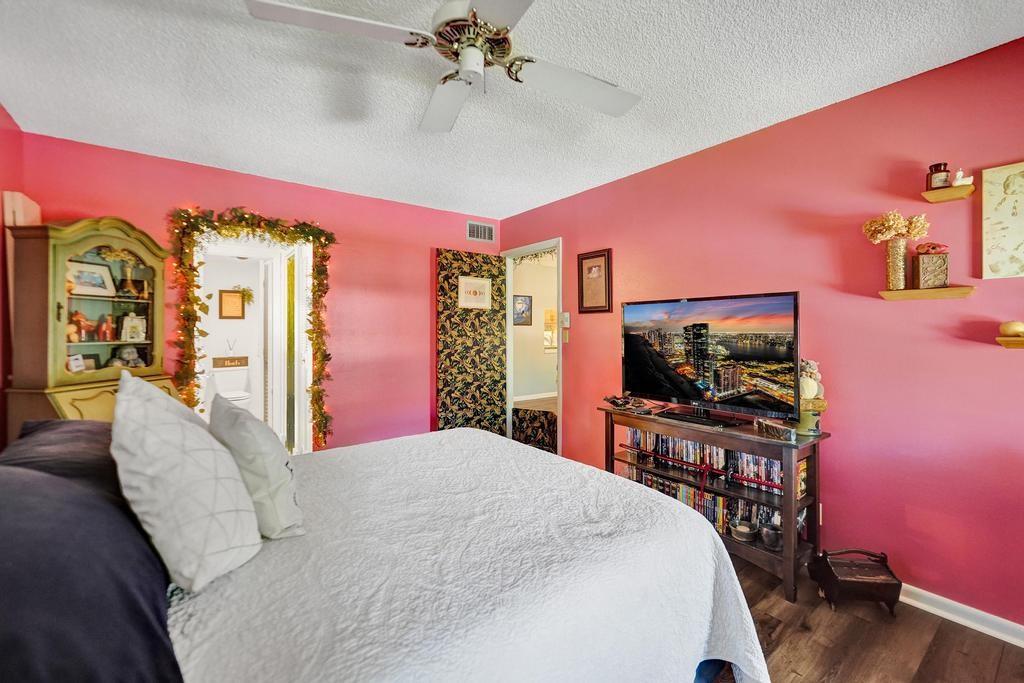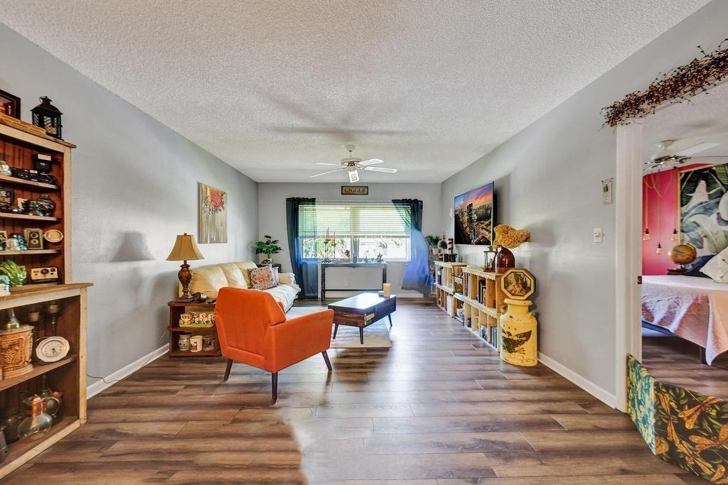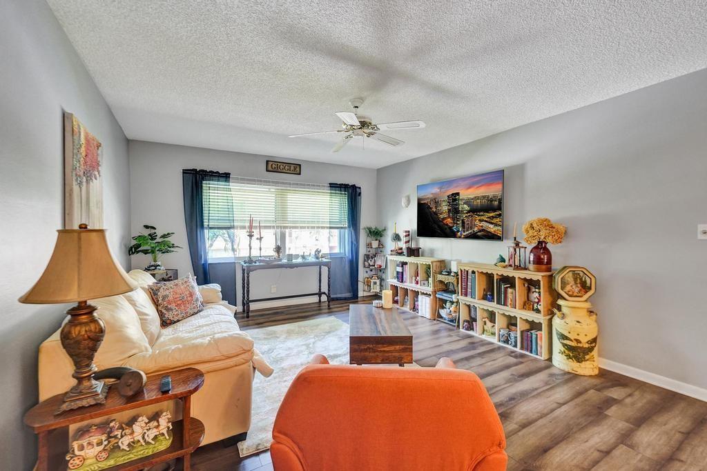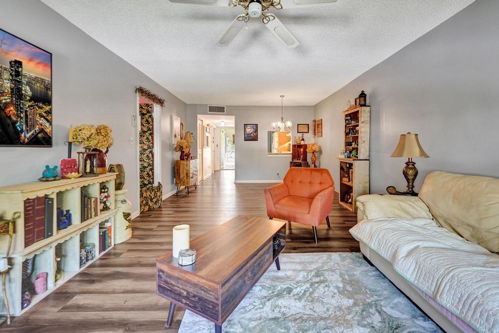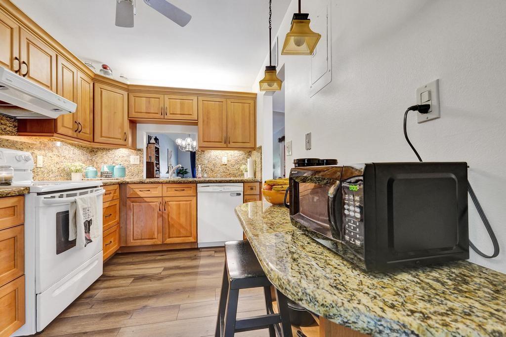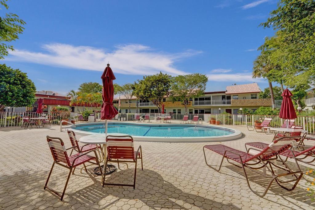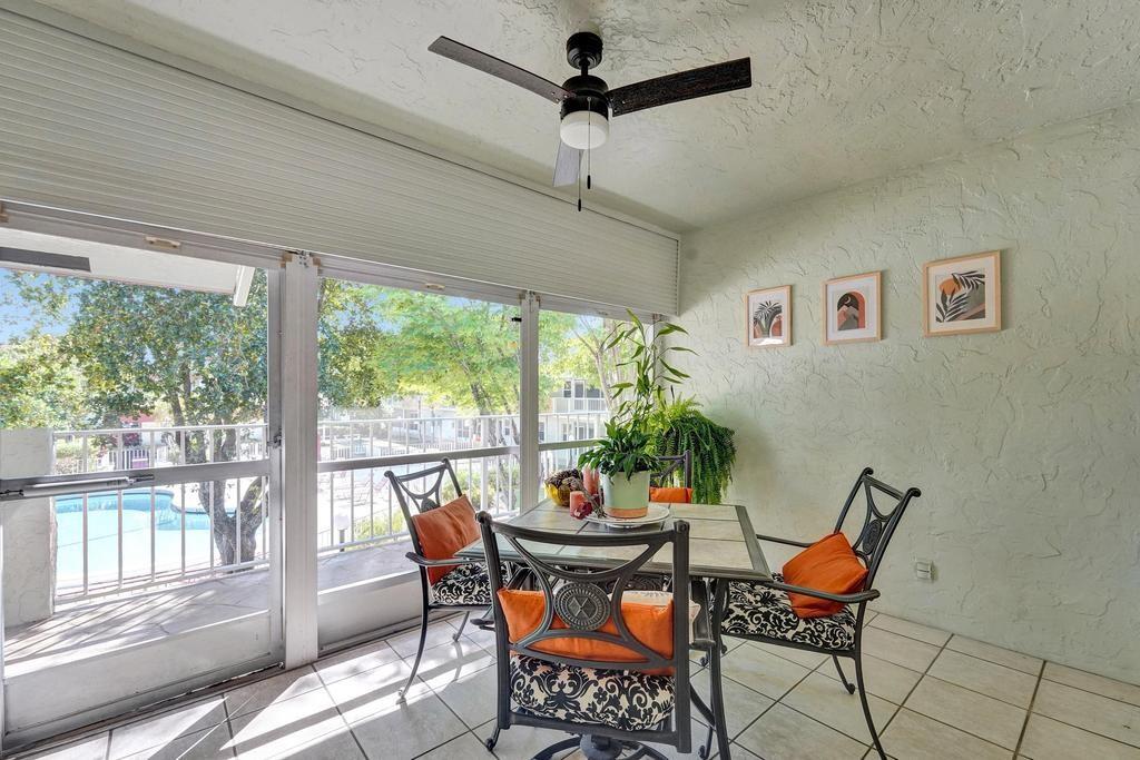 Nicely updated unit in quiet, smaller 2-story complex. Impact windows and shuttered sliding doors lead to a quiet front patio with all-day shade. Great north AND south exposure. Low fees and great common areas add to the easy-living style of the complex. Laminate floors with a modernized kitchen and other great features. Large primary bedroom with walk-in closet and nicely decorated bath. 2nd bedroom with private bath. Only a few steps from the covered, reserved parking spot. All inspections completed and a BRAND-NEW roof. Newly done pool and deck limit further future assessments. Upstairs unit for quiet and privacy. Possible Seller financing available.