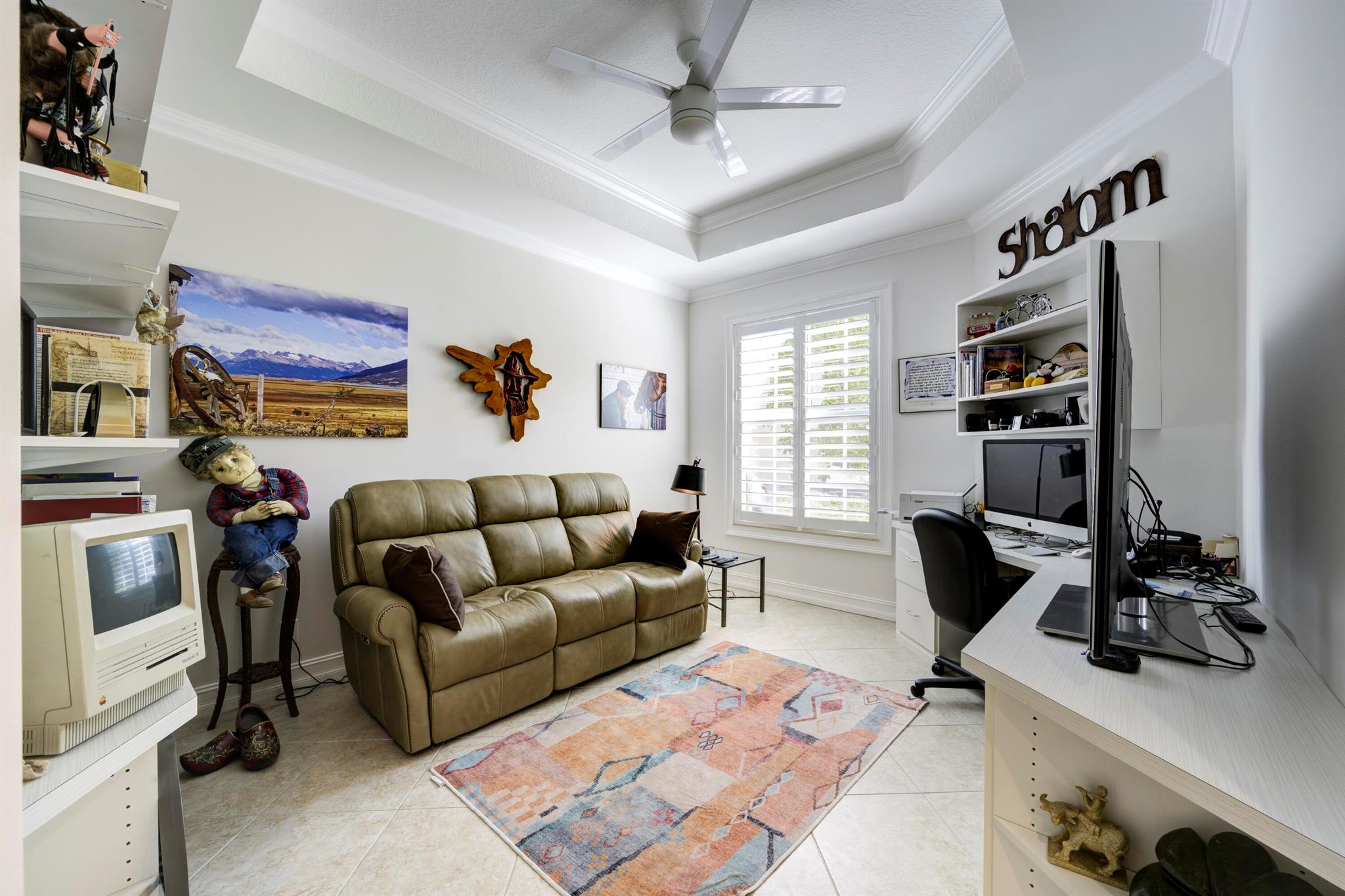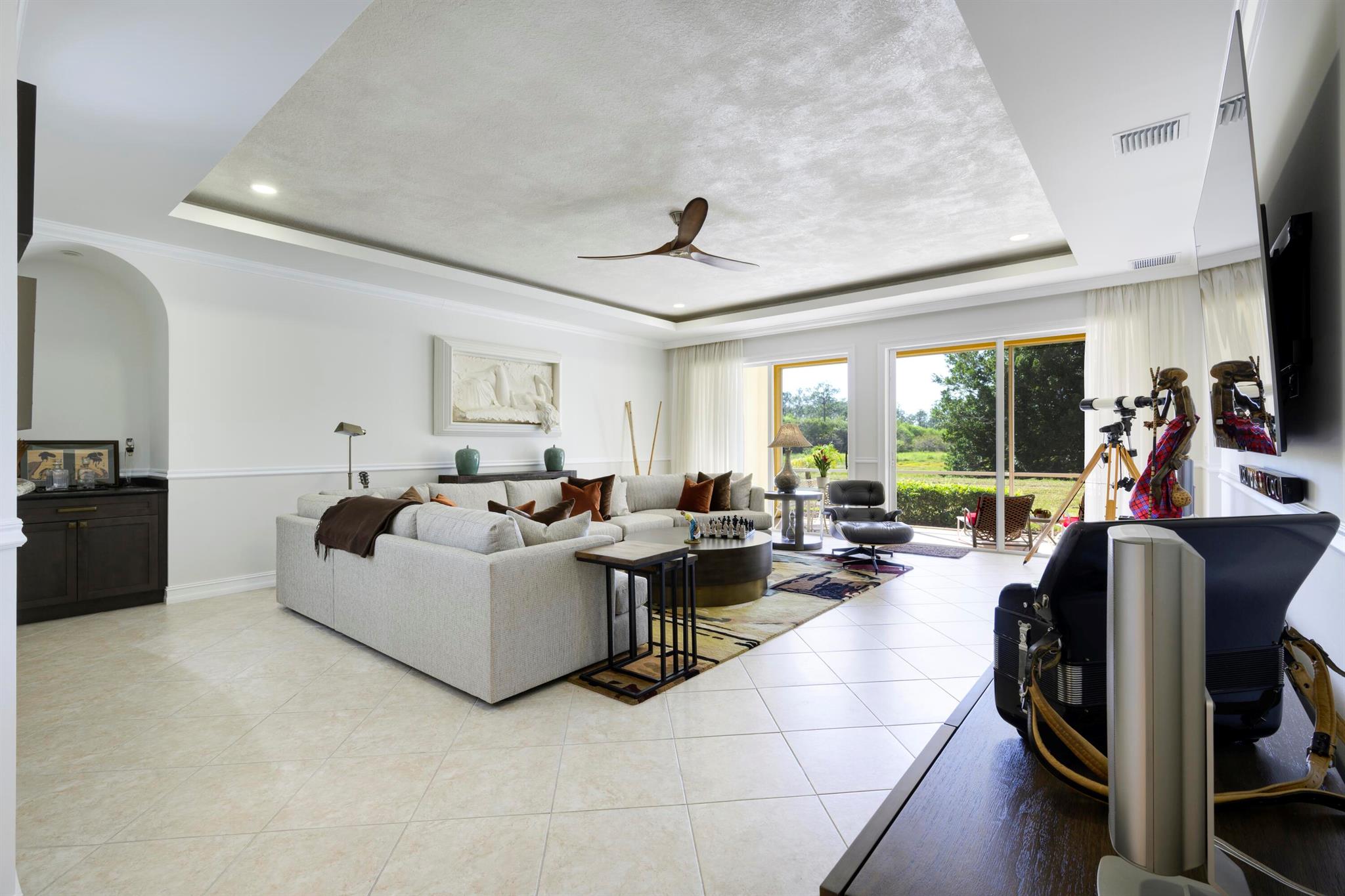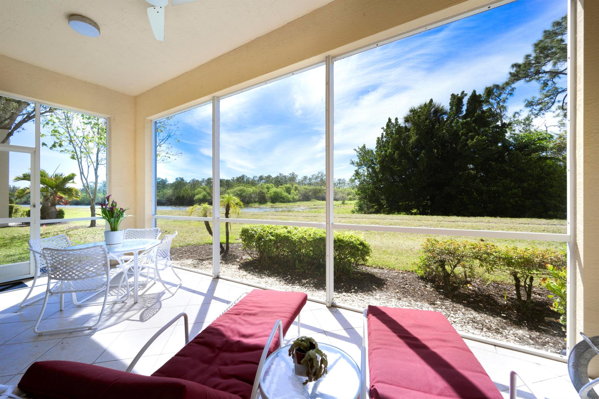 Premier golf available with worry free condo in beautiful Orchid Reserve. This 2/2 + den, 1st floor unit provides exceptional southern views on private screened lanai. Enjoy an awe-inspiring family room which is further enhanced by a dramatic dropped ceiling with specialized lighting. Kitchen provides ample storage space with glass accented cabinets and plantation shutters. Primary bath has frameless shower, tub and newly framed mirrors. Spacious primary BR has wood floors, customized his/her closets. Dramatic DR has unique wall lighting and recessed walls to add ambience like no other. Den includes custom built ins and plantation shutters. Unit is newly painted, has tankless water heater, newer AC and a whole house H2O conditioner. Orchid Reserve has own community pool.