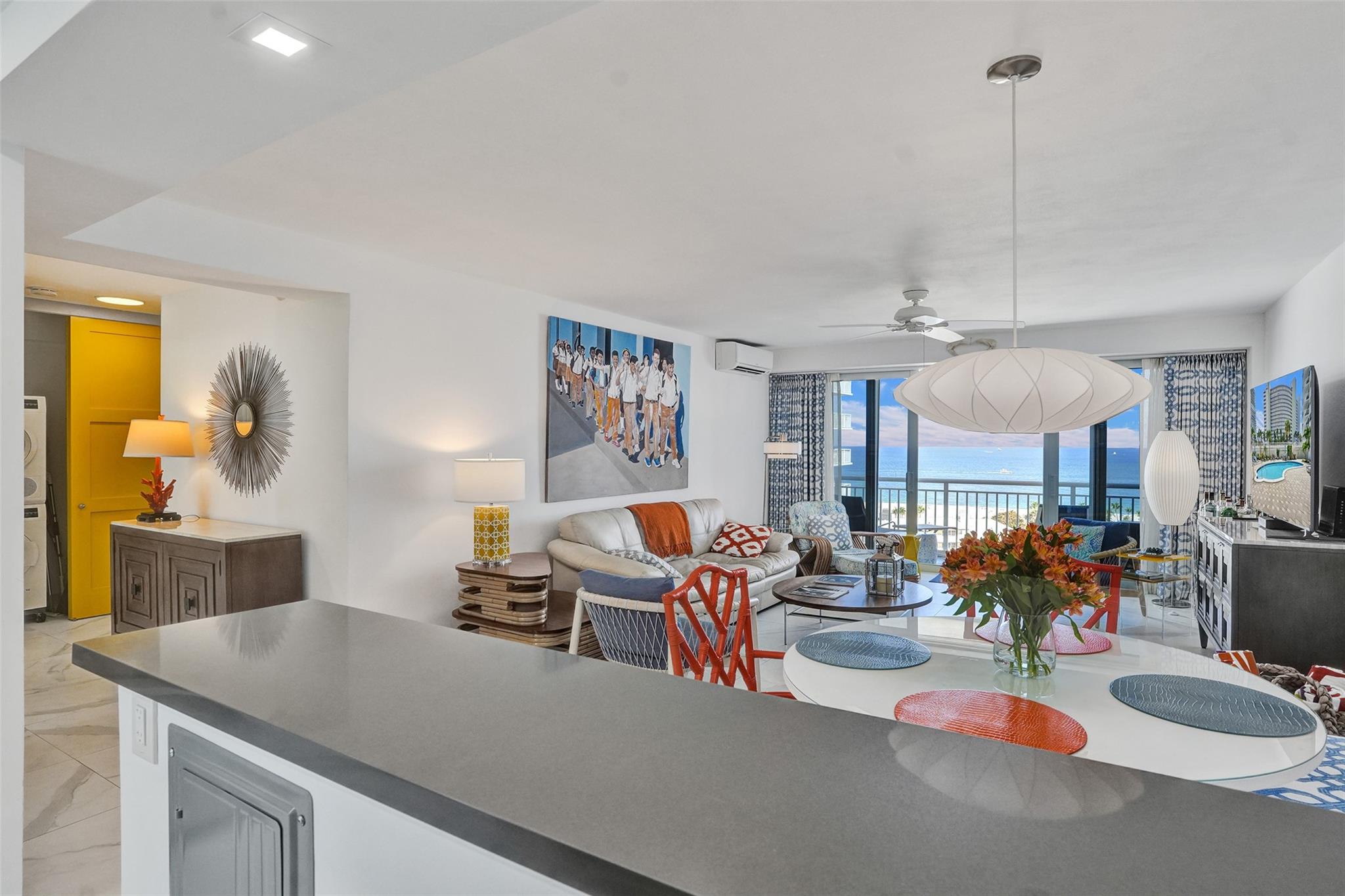 Beautifully updated 1-bed, 1-bath condo in the coveted Harbour Isles neighborhood boasts breathtaking direct ocean views from the main living area and balcony. Relax and take in the sight of cruise ships setting sail right from your own home. This modern, turnkey residence features a new kitchen with sleek countertops, stylish flooring throughout, and state-of-the-art appliances. The fully renovated bathroom adds a spa-like touch, while a new A/C ensures year-round comfort. Atlantic Towers is a financially stable building with no pending assessments and offers fantastic amenities, including a fitness center, pool, and club room. Just steps from the beach, dining, and Fort Lauderdale’s world-famous waterfront lifestyle, this condo is ideal for full-time living or a seasonal escape.