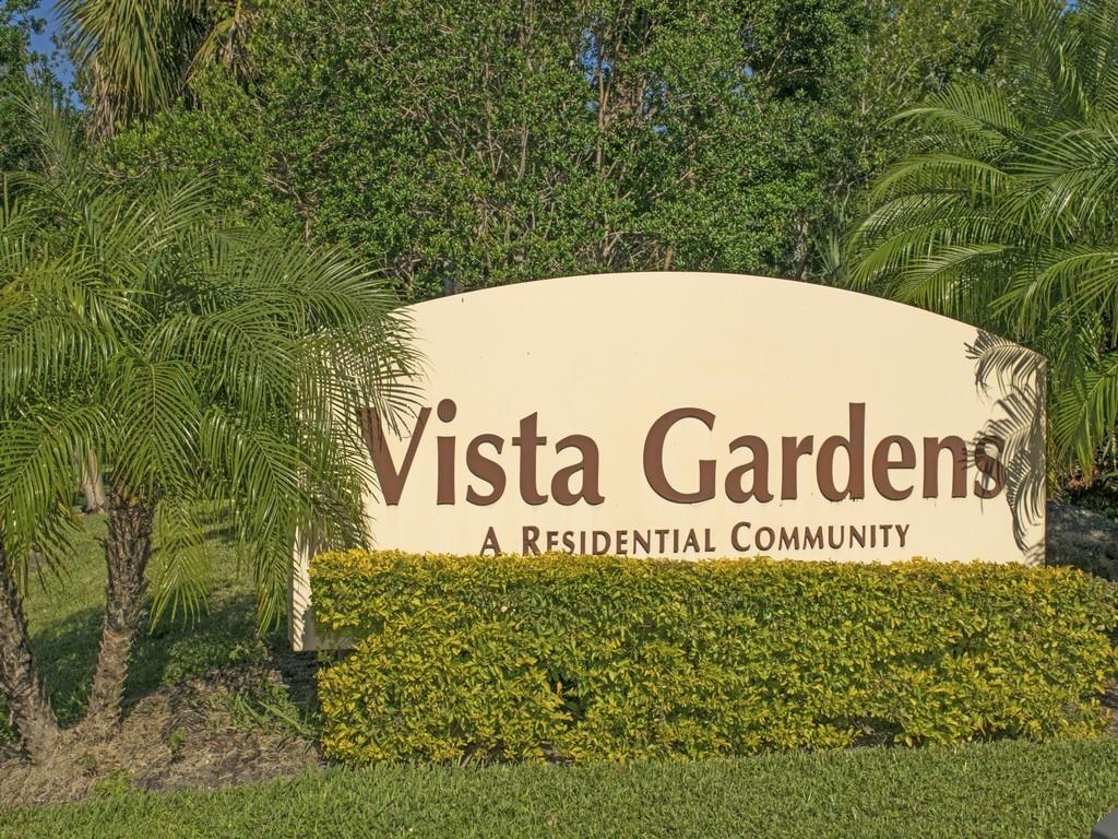 Vista Gardens, First floor end unit, 1 bed, 1.5 bath, private washer/dryer in the condo! This well-maintained unit features updated tile plank flooring, A/C installed 6/24, Newer Washer/Dryer, refrigerator, electric range & microwave for comfort & convenience. This Active 55+ community provides amenities such as a heated pool, hot tub, billiard room, fitness center, library, shuffleboard & tennis courts. Enjoy the vibrant Florida lifestyle with easy access to nearby shopping, restaurants, and pristine beaches. Don’t miss this opportunity! Furniture Negotiable.