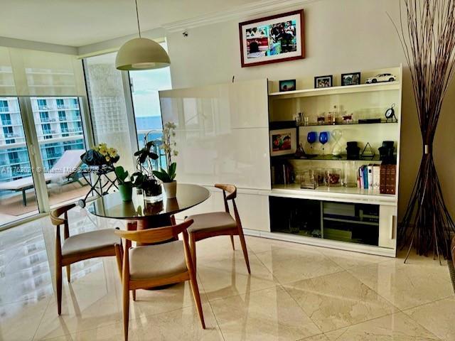 Stunning 2/2 oceanfront residence with Breathtaking Ocean and Intracoastal Views. 1,782 sq. ft. and 450 sq. ft. wraparound balconies. Featuring exquisite marble flooring throughout. The updated European-style kitchen is equipped with top-of-the-line appliances, perfect for culinary enthusiasts & new dishwasher . Electric window shades in living room. The Master suite with private balcony offers an updated generous walk-in closets and updated lavish bathroom with dual sinks, a separate walk-in shower, & a relaxing jacuzzi tub. Enjoy resort-style amenities including beach service 5 pools, a 50,000 sq. ft. fitness center & spa, on site restaurant,24/7 security & valet service, & more. This property offers walking distance to beach, restaurants and shopping centers.