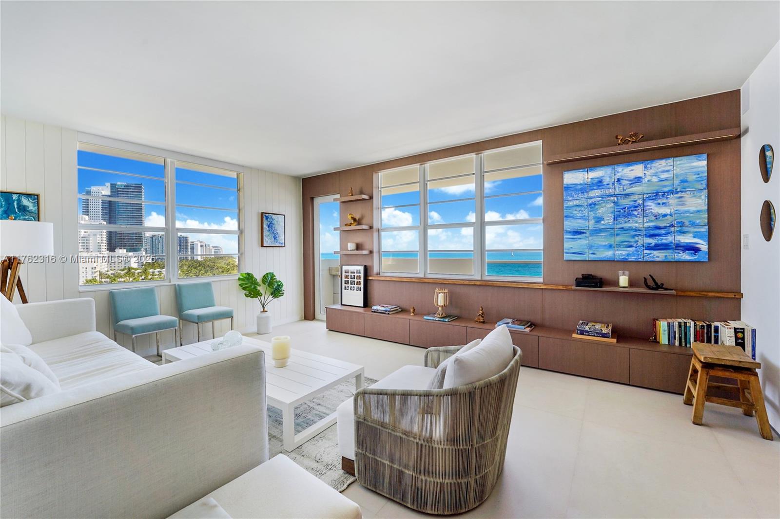 Welcome to a rare opportunity to own Decoplage's most stunning direct oceanfront 2 bedroom, 2 bathroom residence. The epitome of refined coastal living, this turnkey, 1190 SF renovated corner unit in the coveted 47 line, enjoys sweeping views of the ocean and the iconic hotels dotting the coastline. Exquisitely reinvented, features include an open kitchen and baths outfitted with Italian marble and porcelain tile, upscale appliances, stylish furnishings, washer & dryer, parking space, and a 272 SF private balcony. Where Lincoln Road meets the ocean, the Decoplage offers a renovated lobby, oversized heated pool, renovated gym, beach service, valet, walkable South Beach location, and for savvy investors, a flexible 30+day rental policy. This is the ultimate beachfront pied-a- terre!