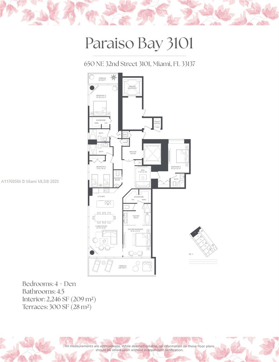 STUNNING BAY & SUNSET VIEWS FROM THIS ECLECTIC FLOWTHROUGH CORNER RESIDENCE AT PARAISO BAY IN EDGEWATER! Enjoy Both Sunrise & Sunsets over from your 2,246 SF Private Retreat in the Sky w/4 Beds + 4.5 Baths & Terraces. Enter through your Private Foyer to your Art Deco inspired Den Perfect for Entertaining & Welcoming your Guests. Filled w/Light, the Living Area features Floor-to-Ceiling Windows w/Blackout Shades + Curtains. Open Dining Area seamlessly connects to a Fully-Equipped Kitchen w/Sub Zero Fridge & SS Bosch Appliances. Primary Bedroom features Bay Views + Primary Bath w/Soaking Tub. Custom Wallpapers & Fine Porcelain Floors throughout. 1 Parking Space + Valet. Paraiso Bay is a luxury development in Edgewater w/Amenities including Pool, Fitness Center, Spa, & Movie Theatre.