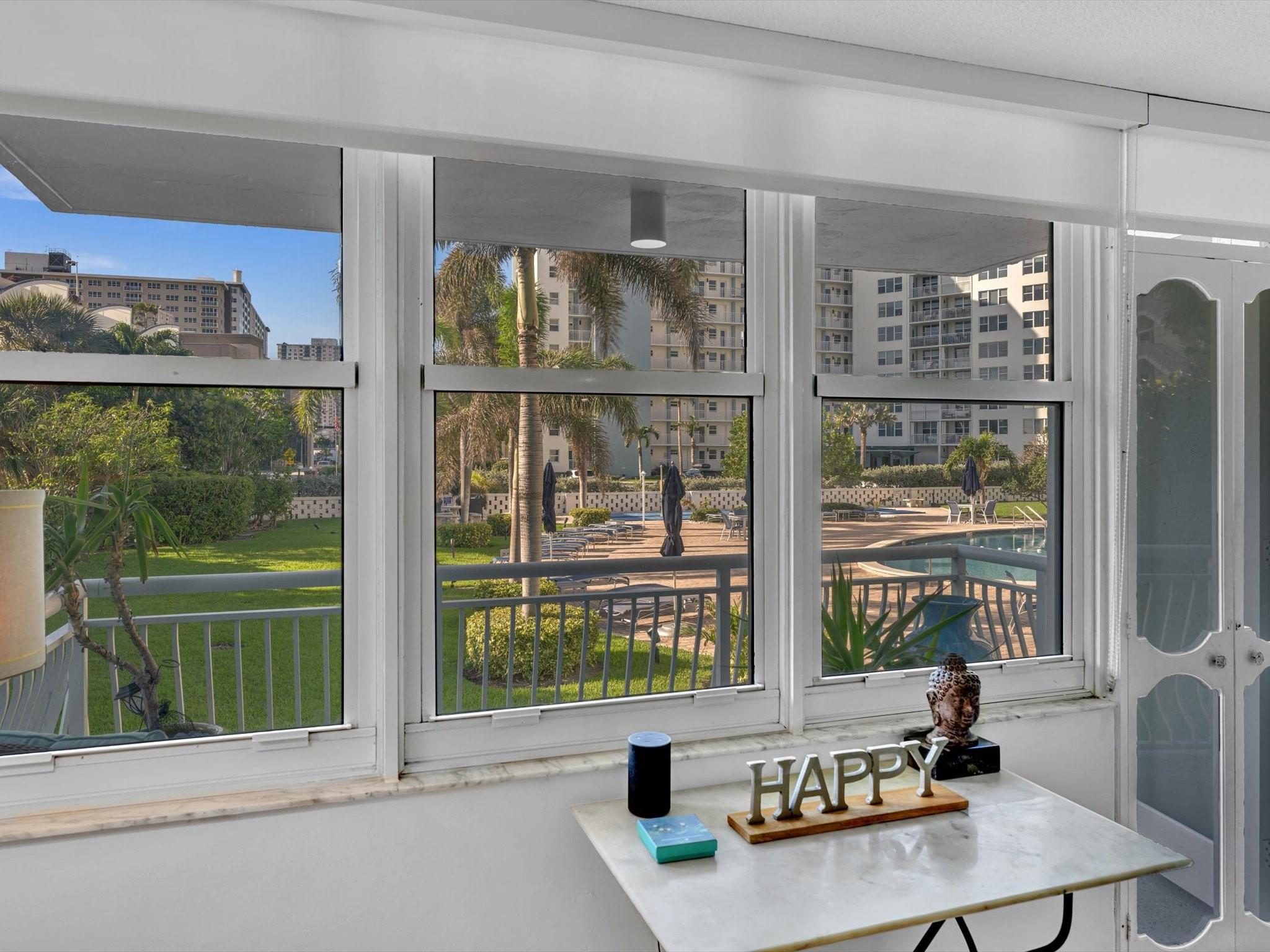Seller motivated on this rarely available 2 bed/2 bath NE first-floor corner unit with breathtaking garden/pool views. Just a 2 minute walk to the beach & Pompano Beach Fishing Village! This bright, open-layout condo features an open design kitchen with all-new stainless steel appliances plus a spacious living area. The large primary suite boasts a walk-in closet, while the open balcony invites you to enjoy the ocean breezes. Brand-new A/C unit & hurricane-impact windows. The highly maintained, modernized building offers new exterior paint, upgraded lighting, and sleek finishes, with all assessments paid. Top-tier amenities: Heated pool, BBQ area, contemporary lobby, stylish community room w/full kitchen, extra storage & covered parking. Bring your water shoes!