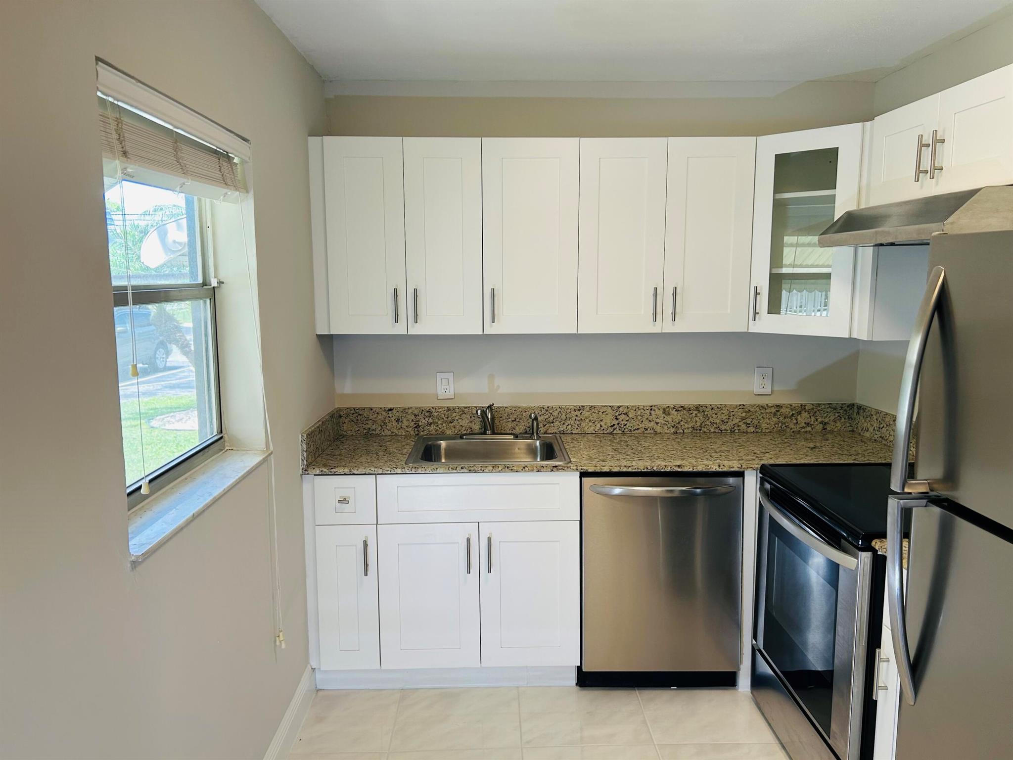 Vacant, easy to show, TURNKEY READY updated corner unit. **MOTIVATED SELLER** One of the lowest HOA's in Kings Point. This amazing unit is freshly painted and extremely clean. It boasts a white shaker cabinet kitchen with granite countertops, an updated bathroom with new vanity & mirror, and brand new wood vinyl flooring in the master bedroom & closets. In the vibrant 55+ community of Kings Point residents never run out of ammenties to enjoy throughout the day which include: 2- 18 hole golf courses, 2 beauitfully maintained restaurants, multiple pools, tennis & bocci courts, state of the art gym, theater, free bus service around town, and many social/recreational clubs to join.