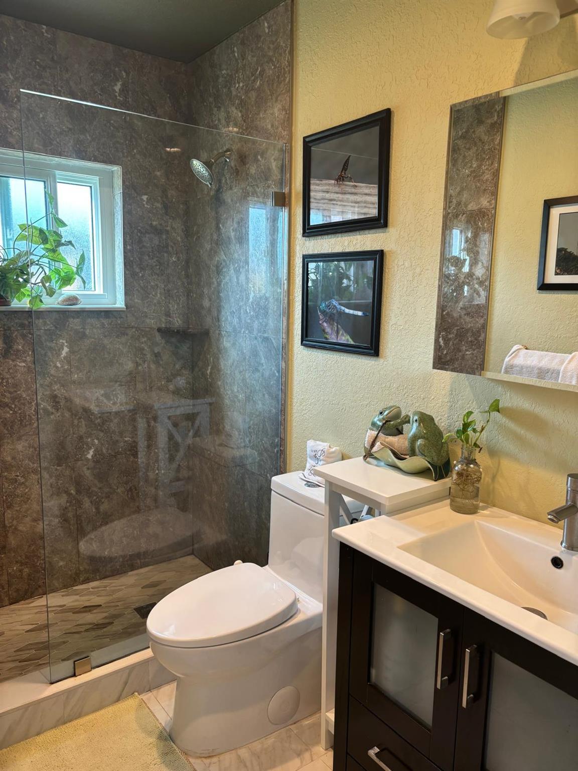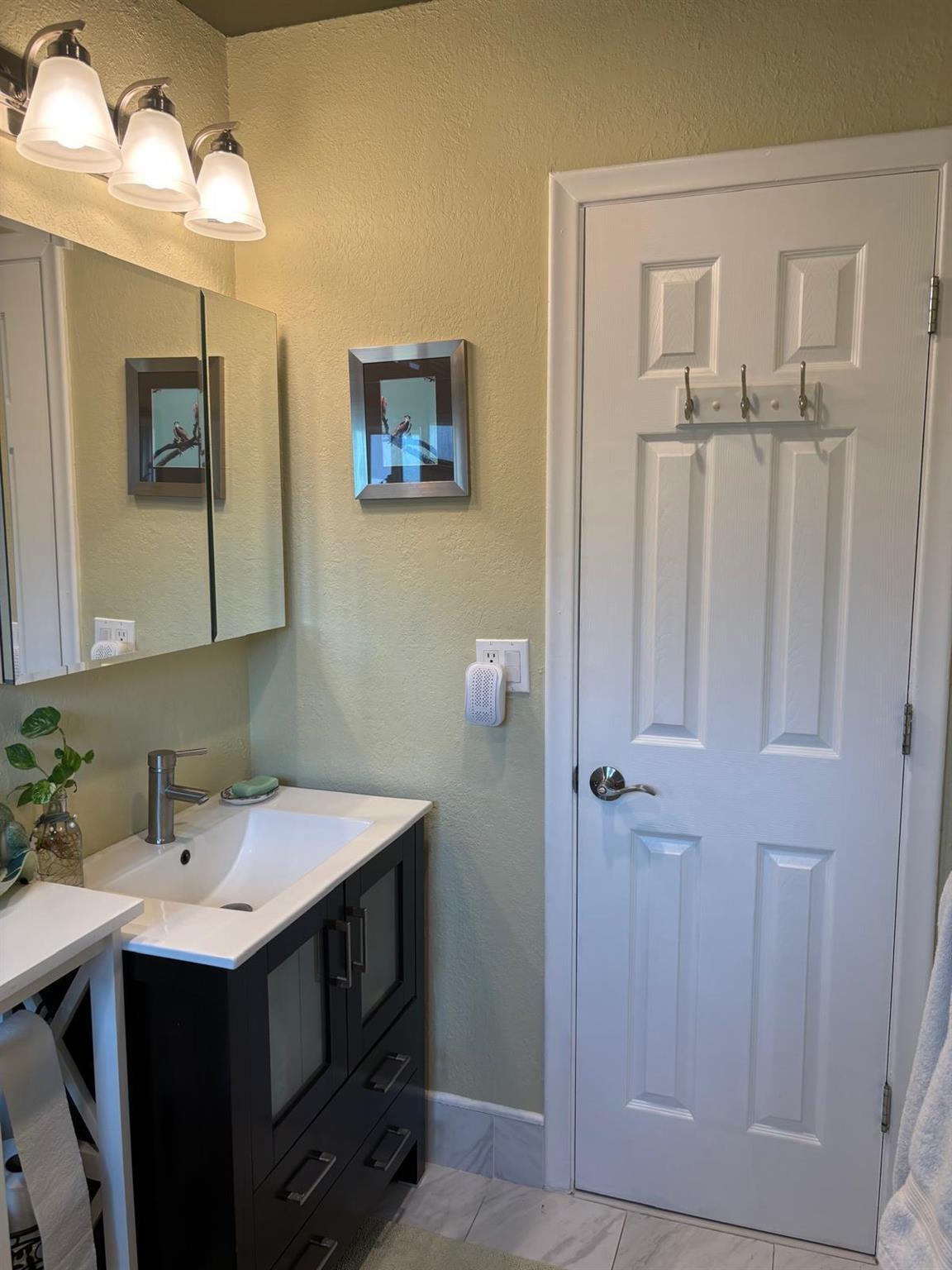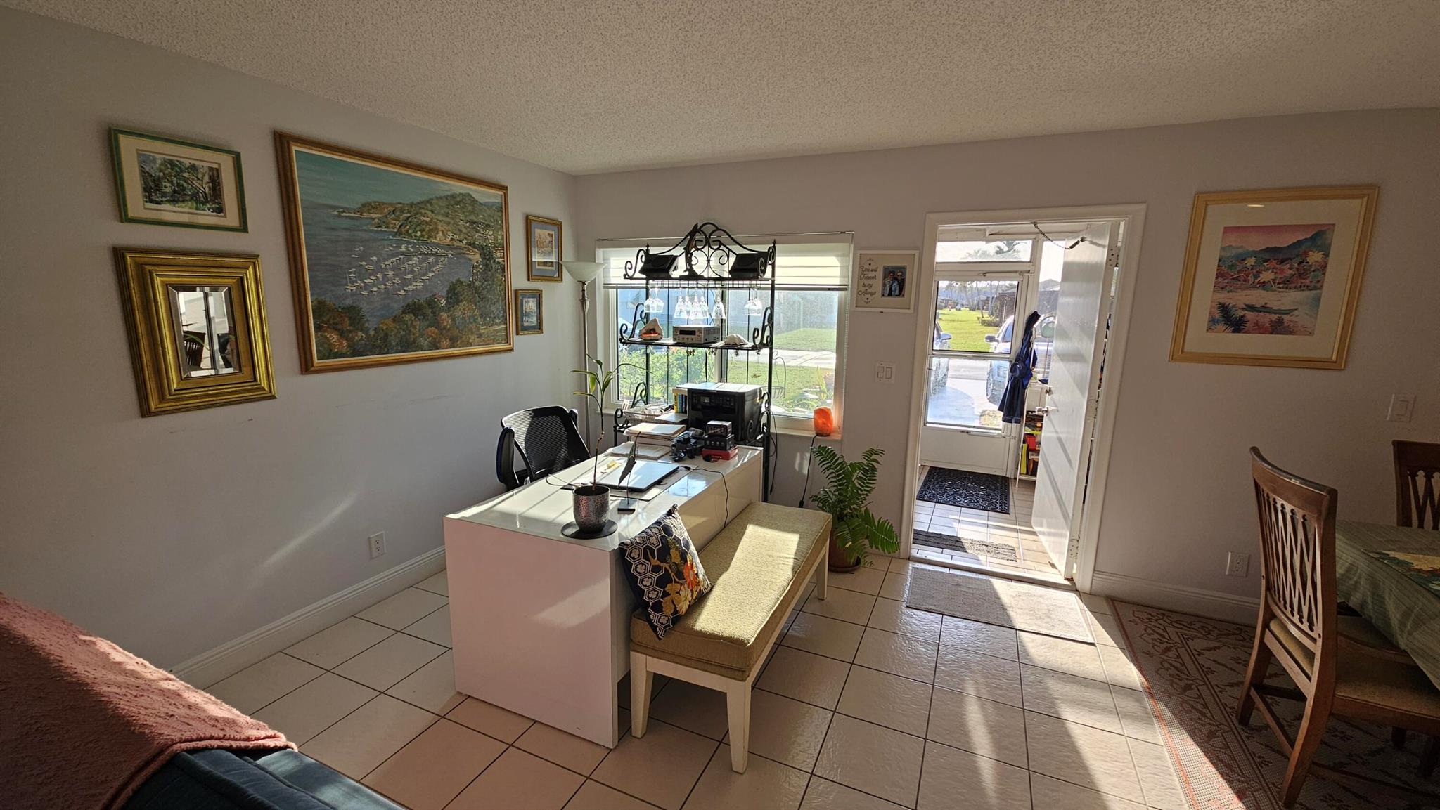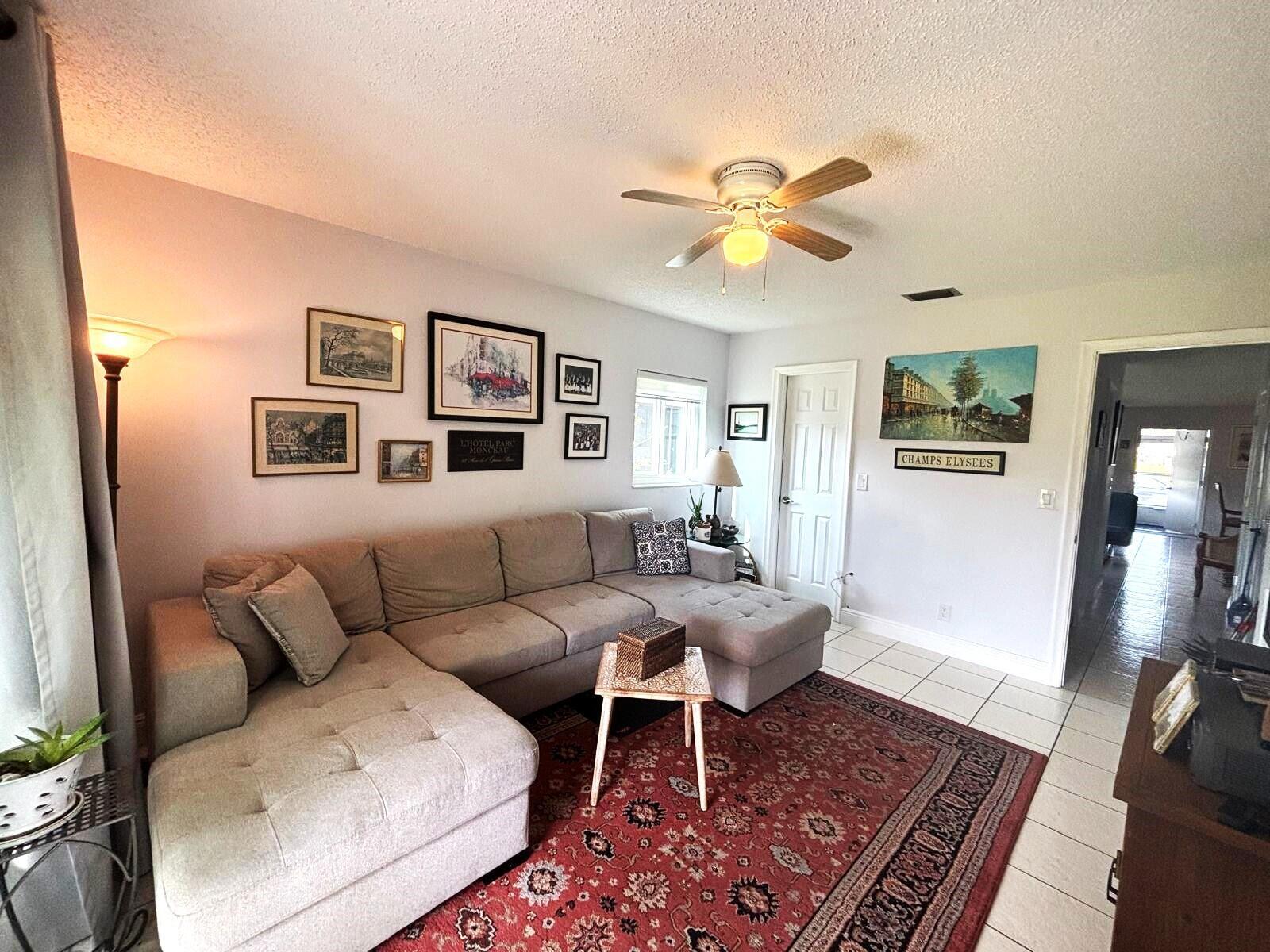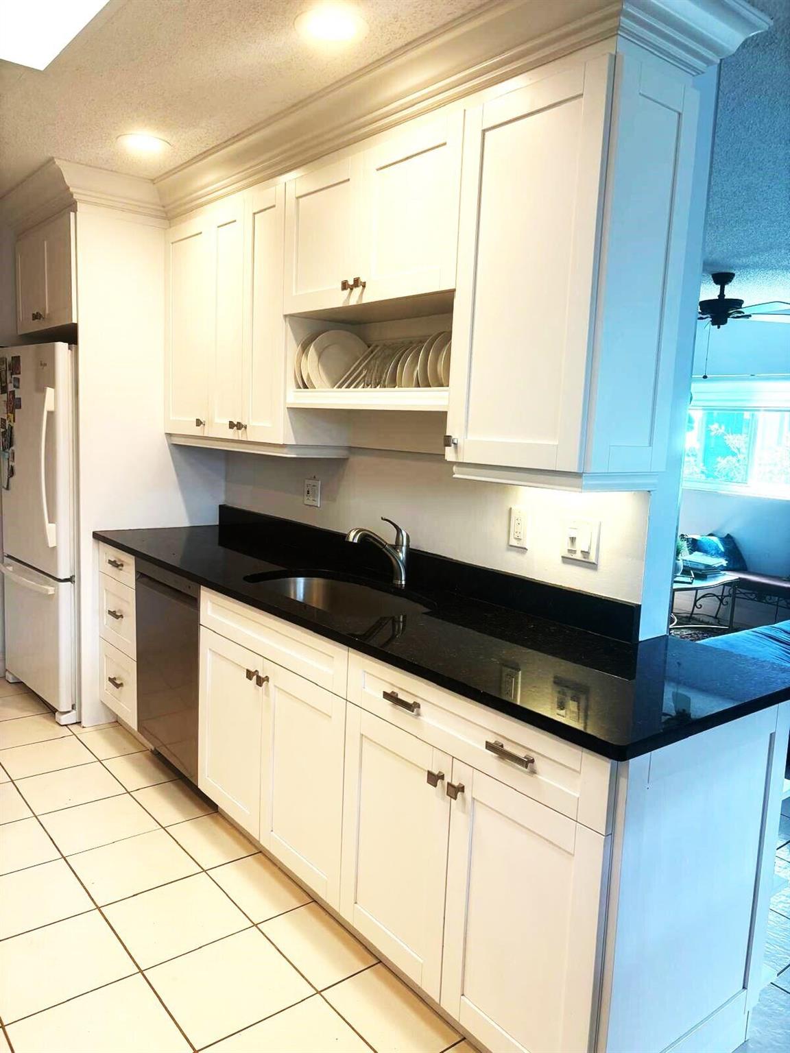 Beautiful well maintained Villa with quiet water view from back yard patio. Updated Kitchen with sliding drawers and skylight. Both baths fully upgraded. New roof and gutters in 2022, impact windows in 2020, with spacious rooms and walk in closets, upgraded base boards, tankless water heater. Cold A/C installed in 2015 and recently updated with new compressor. Exterior of home has French drains plus bonus garden in front of home. Enlarged Front and Rear Patio, Mature native shade trees, New Dishwasher and Dryer and new electrical outlets.All in a peaceful 55 plus community lots of amenities including large heated pool, hot tub, pickle ball, tennis and 18 hole golf course. Minutes from the beach, PBI, theaters and shopping.