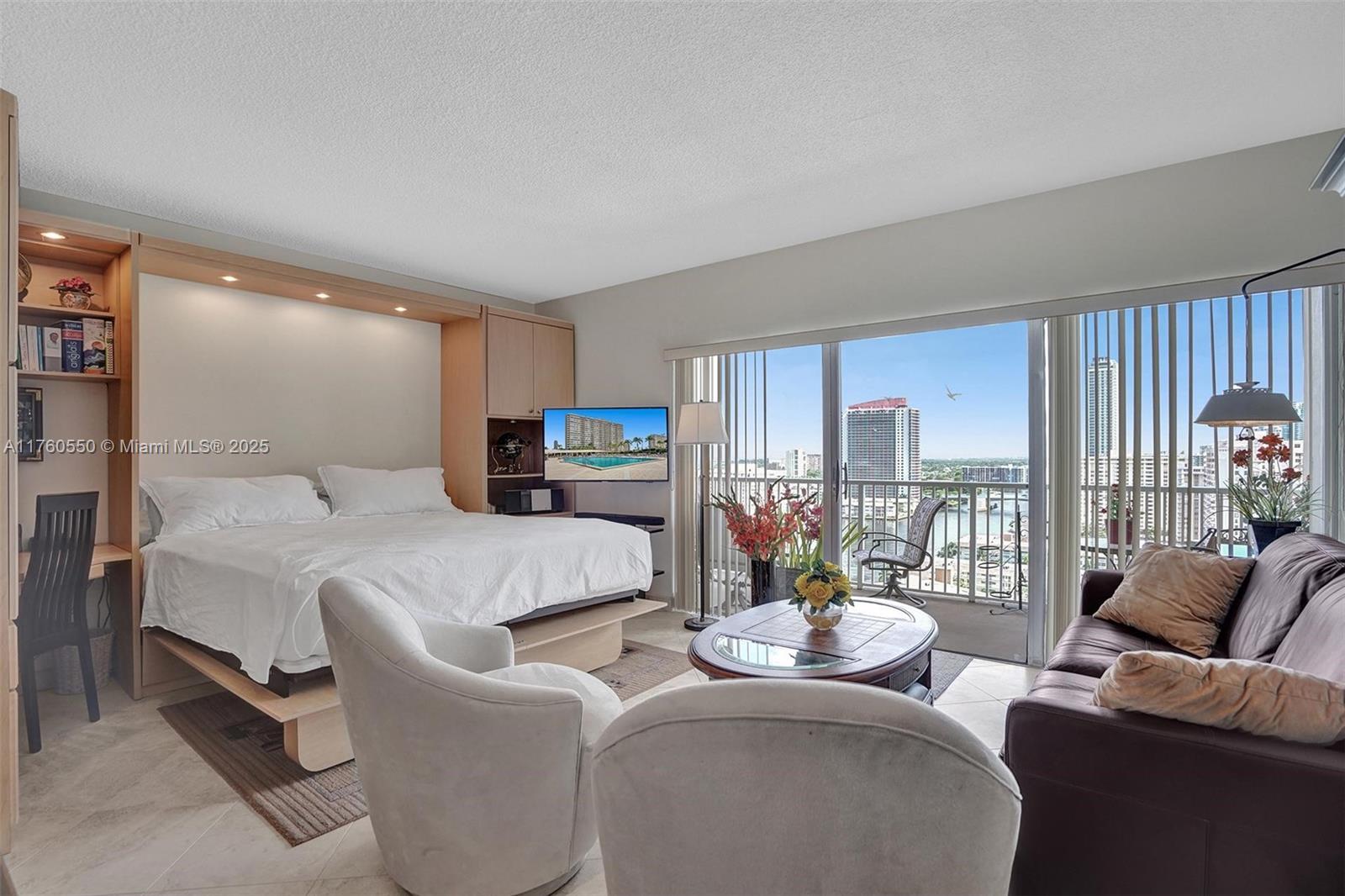 Excellent opportunity to purchase an amazing furnished junior one bedroom with Ocean AND intracoastal views, natural light throughout the unit! Full-service building has oceanside and bayside pools, convenience stores, beauty salon, on site management, marina, tennis and basketball courts, fitness center with sauna, 2 amazing restaurants and boat dock. Private ocean and intracoastal access by crossing the street to the other towers which you can use their facilities as well. Maintenance includes A/C, water, basic cable, internet and parking. Easy to show!