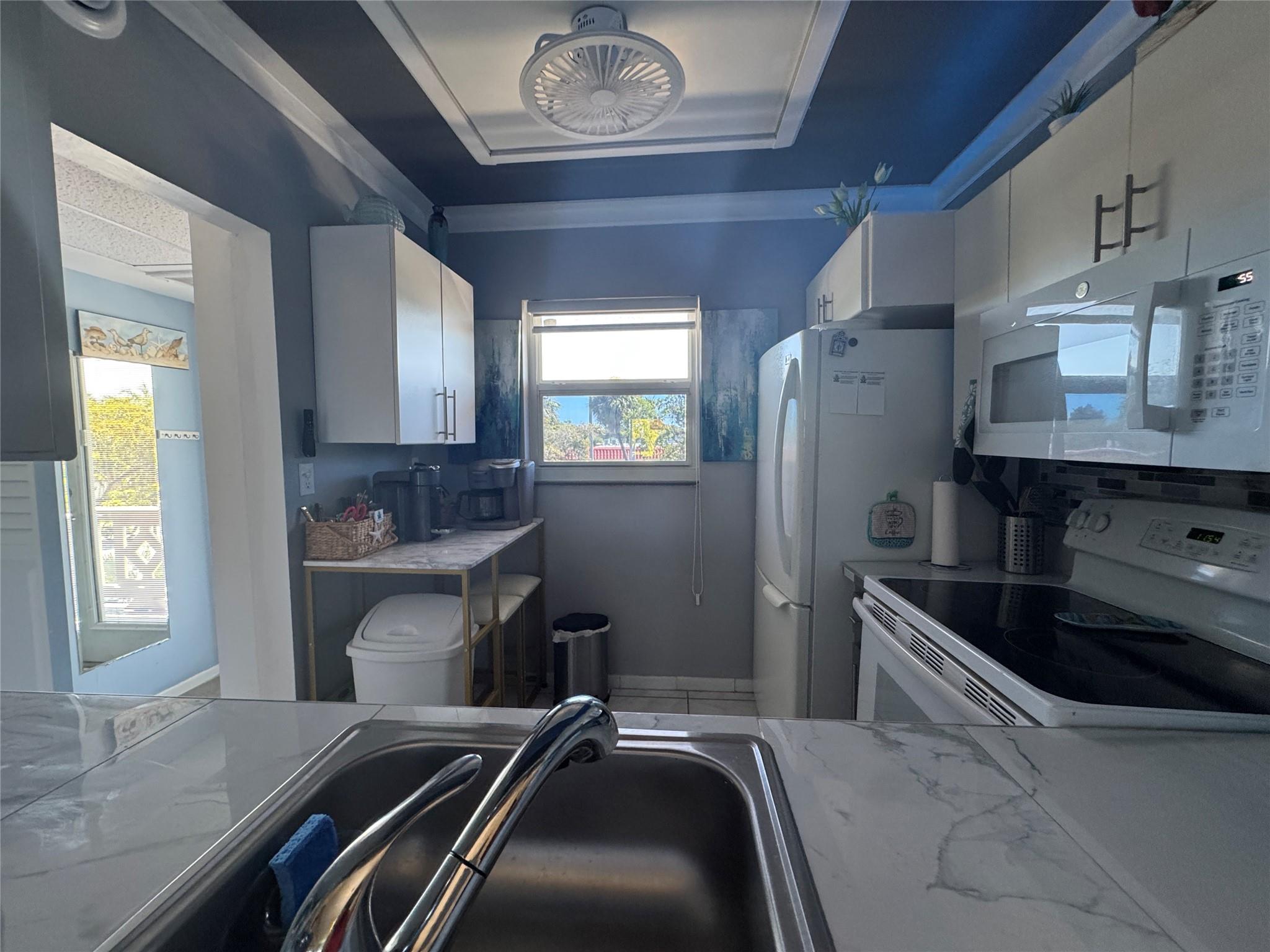 Lovely, renovated condo with Beautiful View overlooking the lake & Fountain. New 100 % Impact Windows and Doors throughout 2023. New Kitchen 2022, Bathroom Upgrade 2023, New Hot Water Heater 2022, New A/C 2022, New Electric Panel 2023, Ceramic Throughout, Furnished, Electric Recliners, New Roof 2024, 50 Year Certification almost completed. 750 Credit score required & $40,000 annual Income. No rentals during first two years and then 3 to 6 month rental permitted in season.