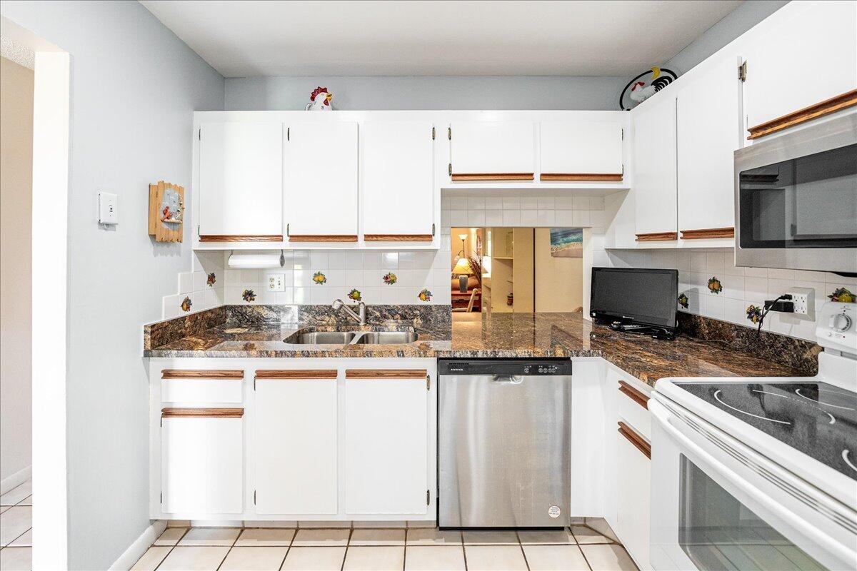 Discover this perfect 2 Bedroom, 2 Bath Condo in the gated 55+ community of The Grove! This unit is sold fully furnished and turn key. Open concept with living and dining room, updated tile floors and slider to porch. You will love the Granite kitchen with lots of cabinet space and updated appliances. Large owners suite, with built-in storage and update bathroom. Enjoy your morning coffee on the private screened porch! Huge inside laundry that includes the washer & dryer and has plenty of shelving. There is a fully enclosed front porch that is perfect for extra storage. This is a well kept condo and pride of ownership shows! Newer ROOF and no assessments! The Grove offers many amenities including a heated pool, tennis, bocce, many clubs, shuffleboard, corn-hole tournaments, holiday parti