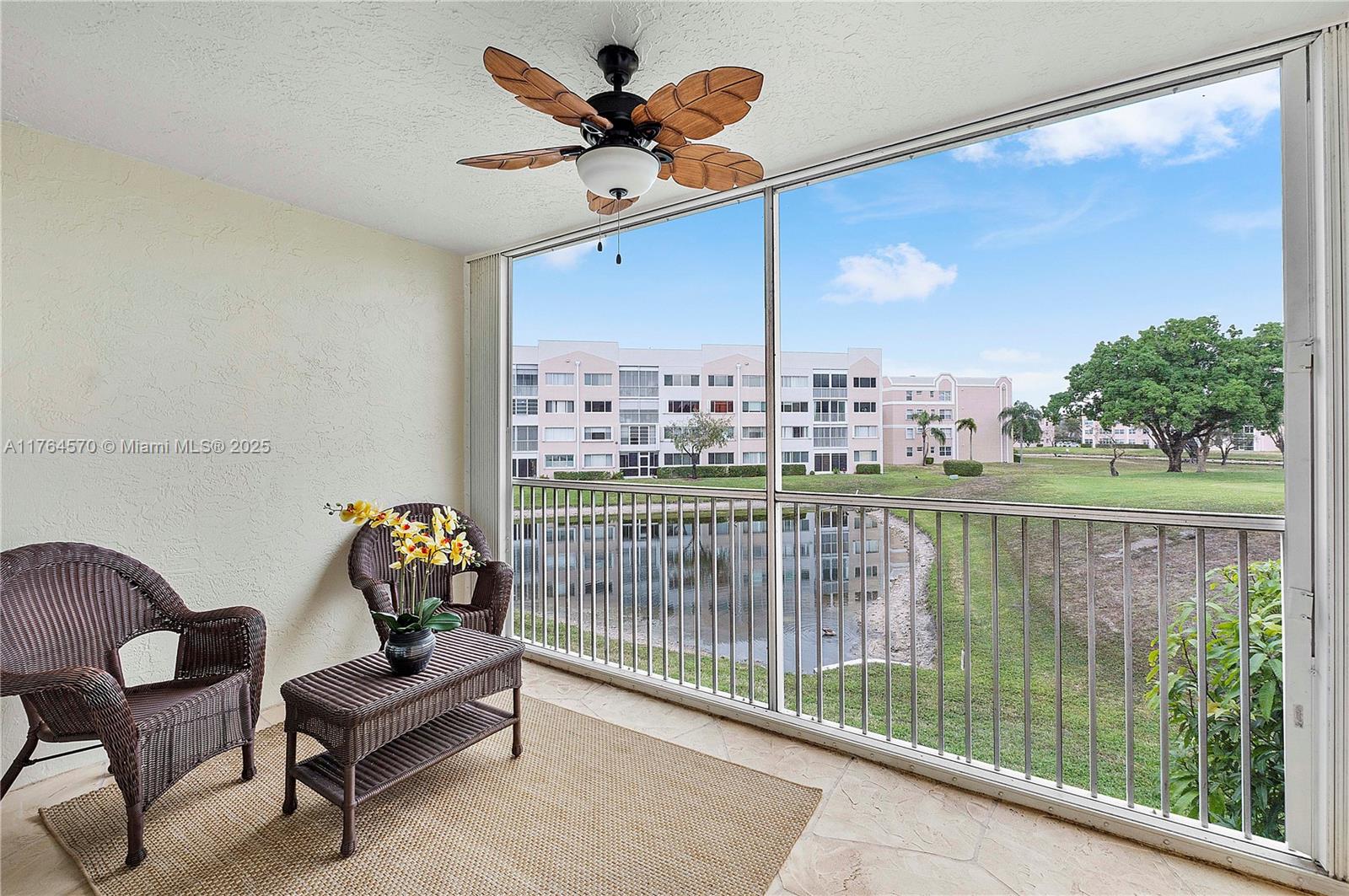 Discover the perfect blend of comfort and convenience in this 1,285 sq. ft. inside-corner unit in sought-after Sunrise Lakes Phase 4 community. This freshly painted condo offers an inviting eat-in kitchen, a spacious living area, and a triple wide sliding door with a screened balcony where you can unwind while enjoying serene golf course and lake views. Hurricane shutters and fire sprinklers provide added safety. Enjoy resort-style living with a wide range of amenities, including a clubhouse, pools, fitness center, tennis courts, and more. This 55+ active adult community is close the famous Sawgrass Mills Mall, FLL airport, Port Everglades, Hard Rock Casino & beaches.