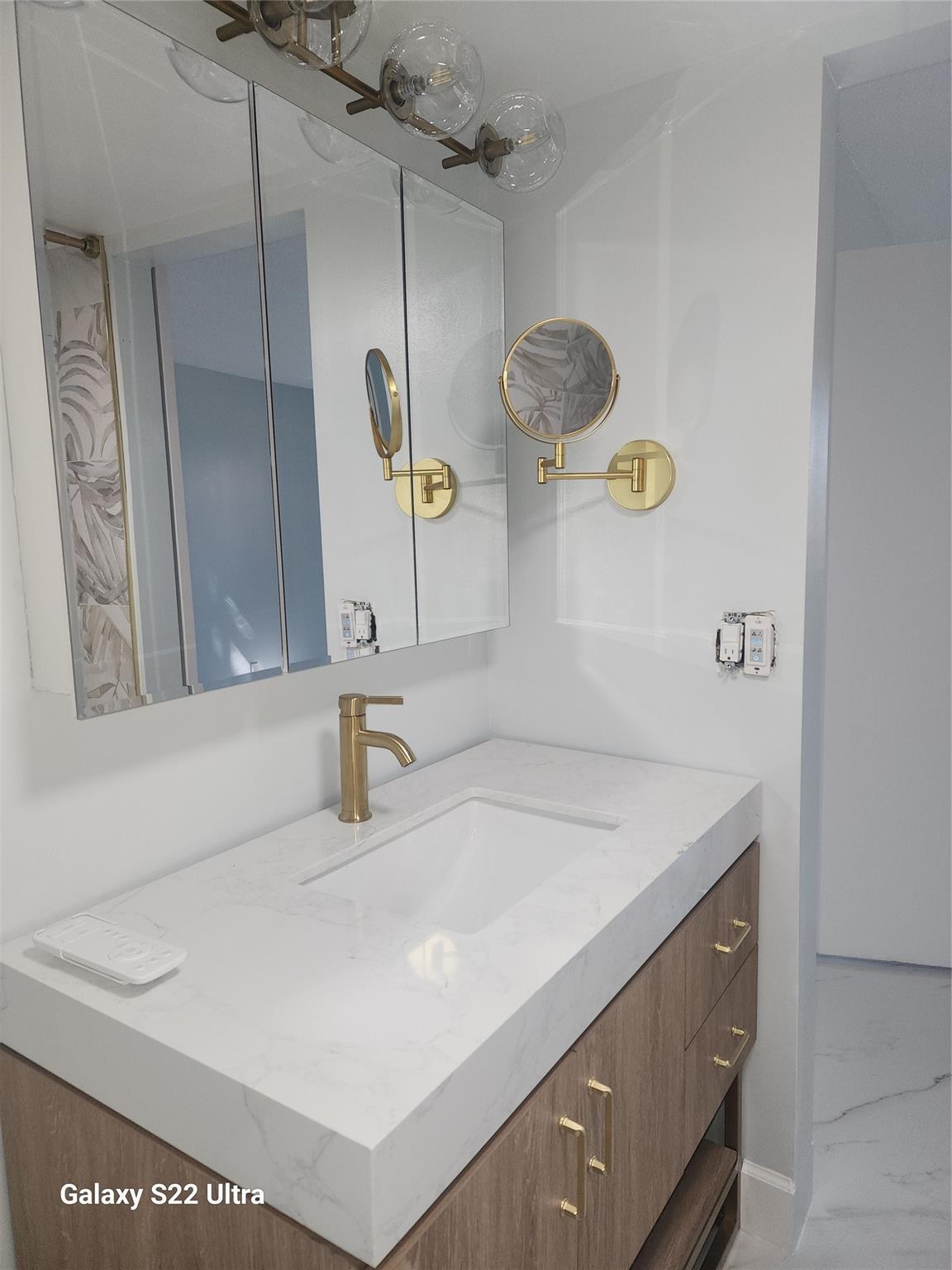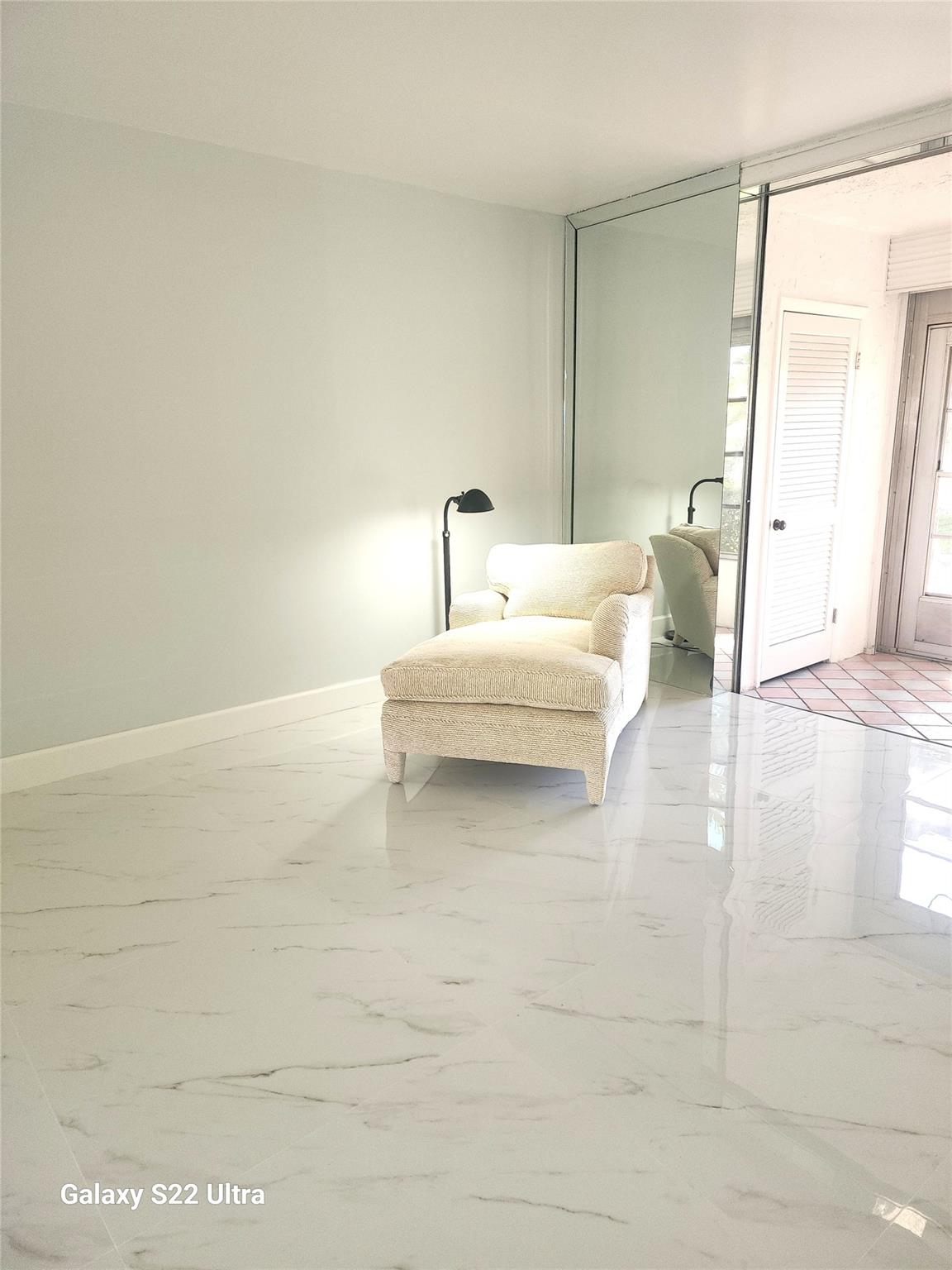 Renovated and Ready! Enjoy the comforts & convenience of this spacious 2 bed 2 bath 1st floor unit in North Gardens a 55 + community located minutes from Deerfield Beach! Park by your front door and walk into the open kitchen with granite countertops, new appliances and beautiful 32"x32" porcelain tile floors throughout. The dining room and living room are open and you can enjoy the enclosed patio that overlooks the courtyard and swimming pool. The Master bedroom has beautiful mirrored barn doors one opens into the Master bathroom that has an oversized jacuzzi tub, vanity with marble top, brass fixtures and smart toilet. The other door opens into the master bedroom closet and continues into the laundry area, with access to the guest bedroom and updated guest bathroom. A must see!