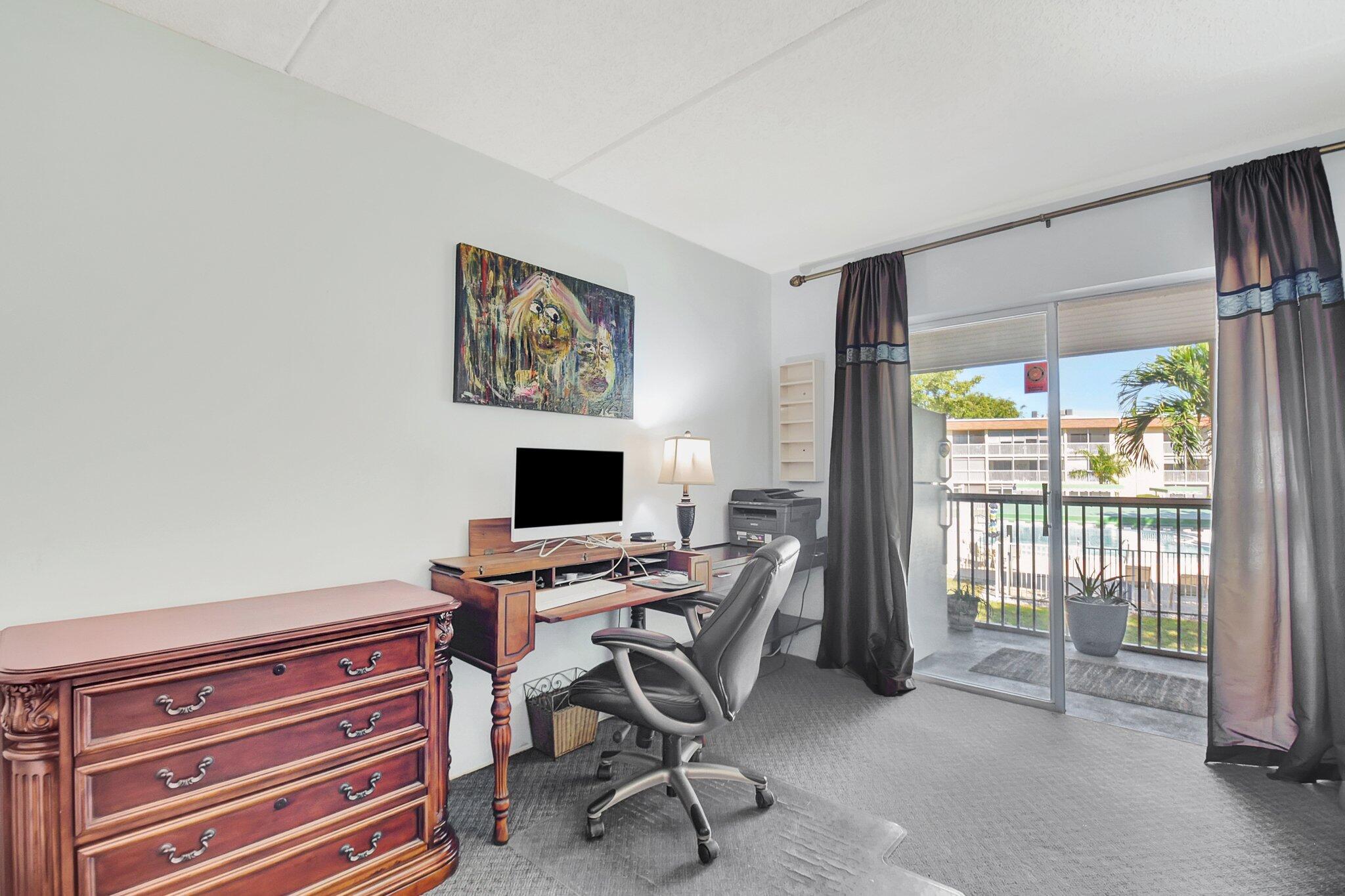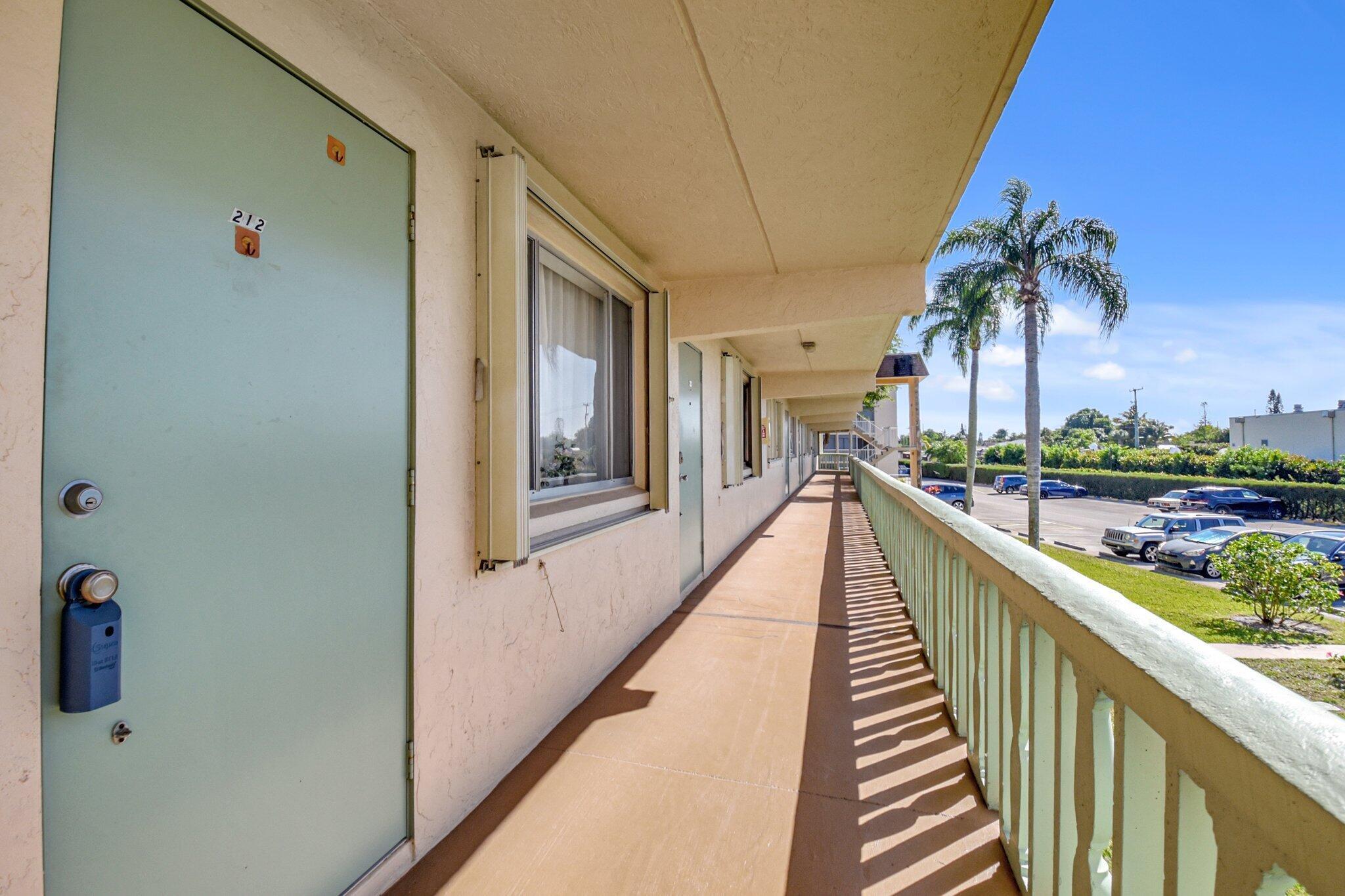 This 2 bedroom, 1 and a half bath condominium is turn key. All furniture can be included with the sale, just bring your suitcase and you are home. The kitchen and bathrooms have been updated. This home makes storm preparations easy with a hurricane door, accordion ''easy close'' shutters on the front windows and pull down shutters on the back. The front door features a high security Mul-T-lock door lock for added safety. Enjoy a cup of coffee on the covered patio overlooking the pool area, which can be accessed from both bedrooms. This home also features a storage unit. Come check it out!
