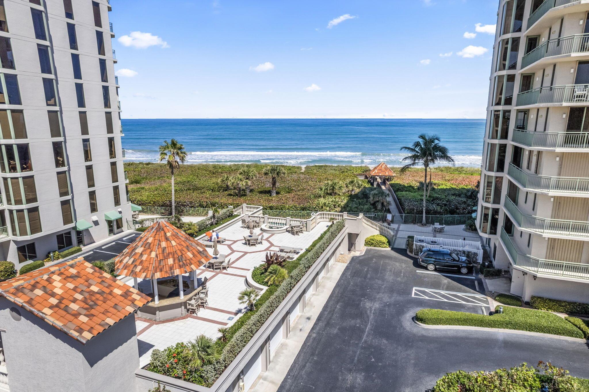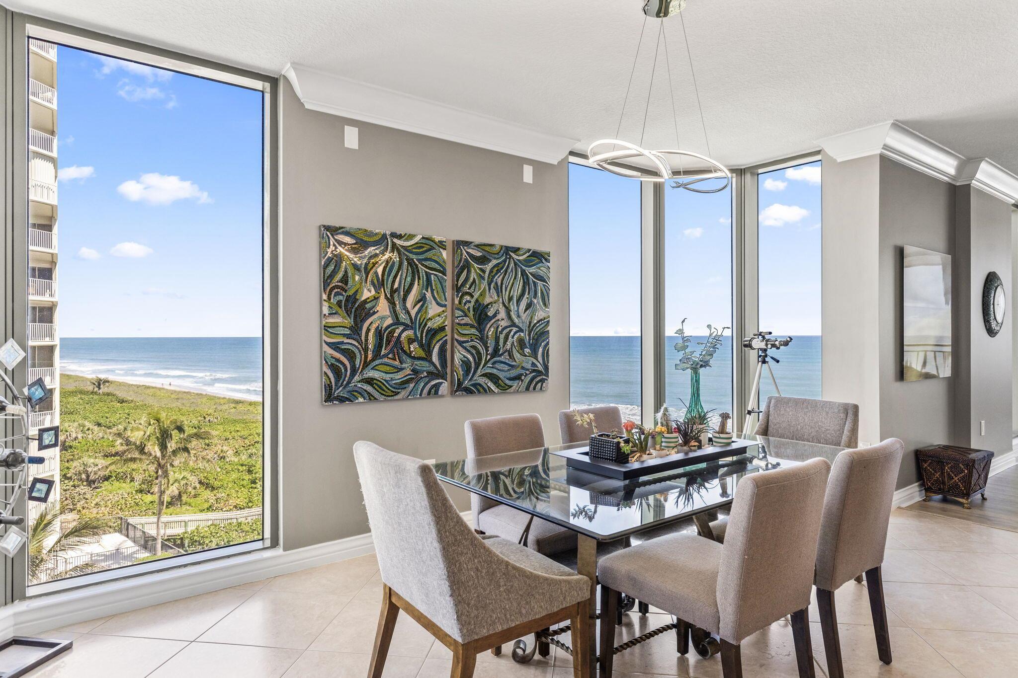 This exceptional oceanfront estate blends luxury, privacy, and breathtaking coastal views. NO ASSESSMENTS! Enjoy sunrises over the Atlantic from the east-facing balcony and sunsets from the wraparound north and west balconies. Nestled in a serene beachfront setting, it offers a front-row seat to nature's beauty, from baby turtles to crabs along the shore. With a self-accreting beach, the shoreline naturally expands over time, enhancing both beauty and exclusivity.Designed for both comfort and sophistication, the home features impact windows and doors, two private-entry elevators, and a one-car garage. Exclusive amenities include a resort-style pool, an elevated deck with a gazebo and grill, a billiard room, a fitness center, and private beach access.
