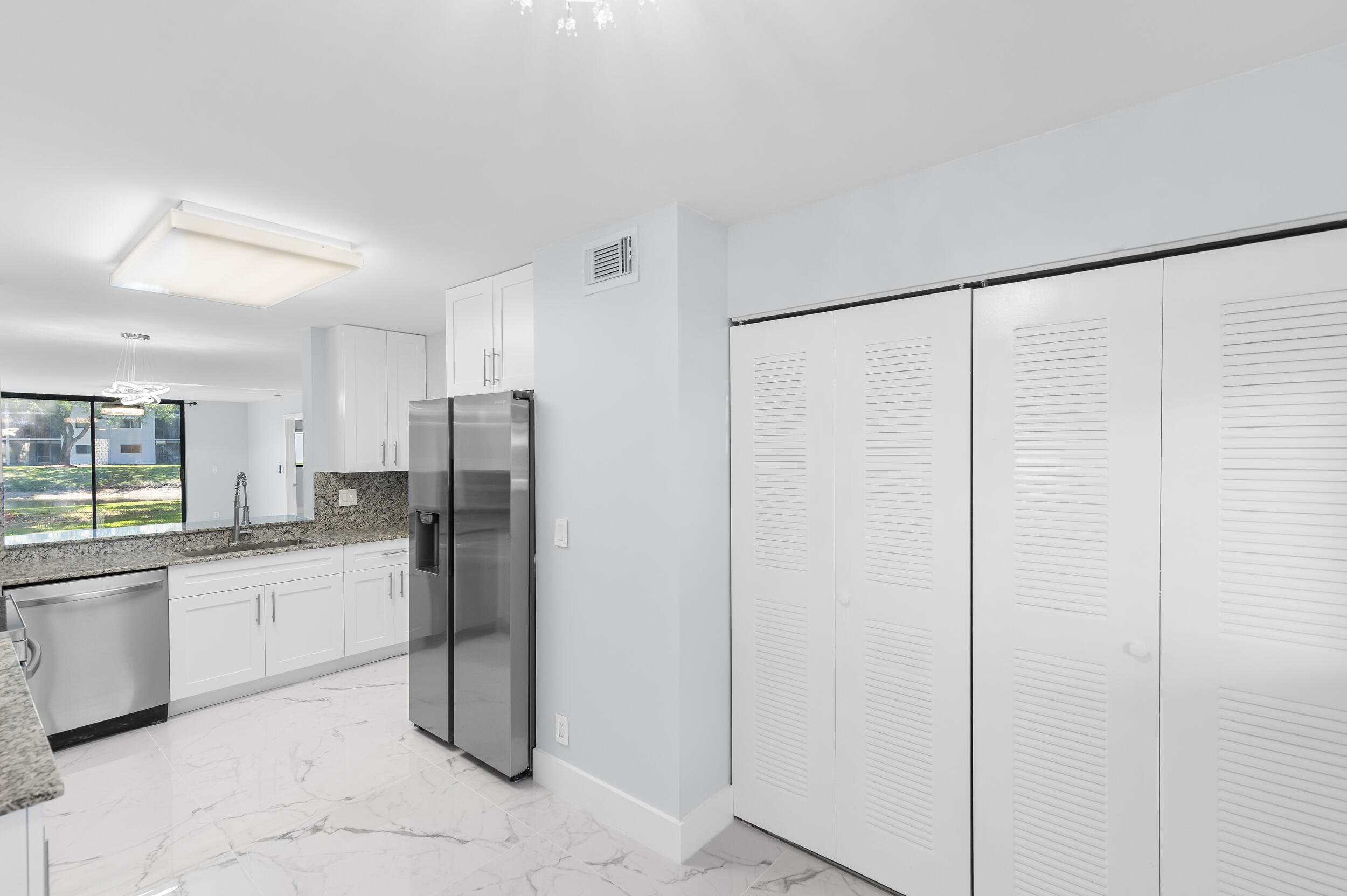 Stunning 2-Bed, 2-Bath Ground-Floor Condo - Lakes of Delray (55+ Community)! This absolutely gorgeous, fully renovated unit features the largest Water's Edge floor plan with breathtaking water views from the living room and master bedroom. Enjoy resort-style living just steps from the satellite pool--walk out your front door and jump right in! Conveniently located near the residential Sims Road entrance for easy access. Move-in ready with no assessments (all paid for brand-new roof), a passed structural milestone inspection, and fully funded reserves. The chef's kitchen boasts top-of-the-line stainless steel appliances, white shaker cabinets, granite countertops & backsplash, plus a large pantry with eat-in space, making it perfect for cooking and entertaining. The open-concept living and