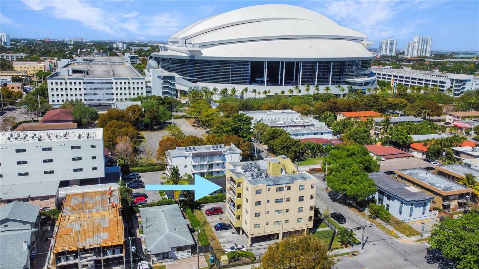 Bright 1-bedroom, 1-bathroom unit on the 4th floor of a quiet, fenced building with 12 units. It features an open layout, great natural light, and a large private balcony with city views—perfect for relaxing or entertaining. Conveniently located near the elevator, currently being replaced, this unit is a 3-minute walk to LoanDepot Park, a Miami landmark. Recent upgrades include a two-year-old A/C system for comfort and efficiency. HOA fees cover water, garbage, and insurance, offering great value. Nearby grocery stores like Walmart, Presidente, and Publix, plus dining and public transport, make this unit ideal for homeowners or investors in Miami.