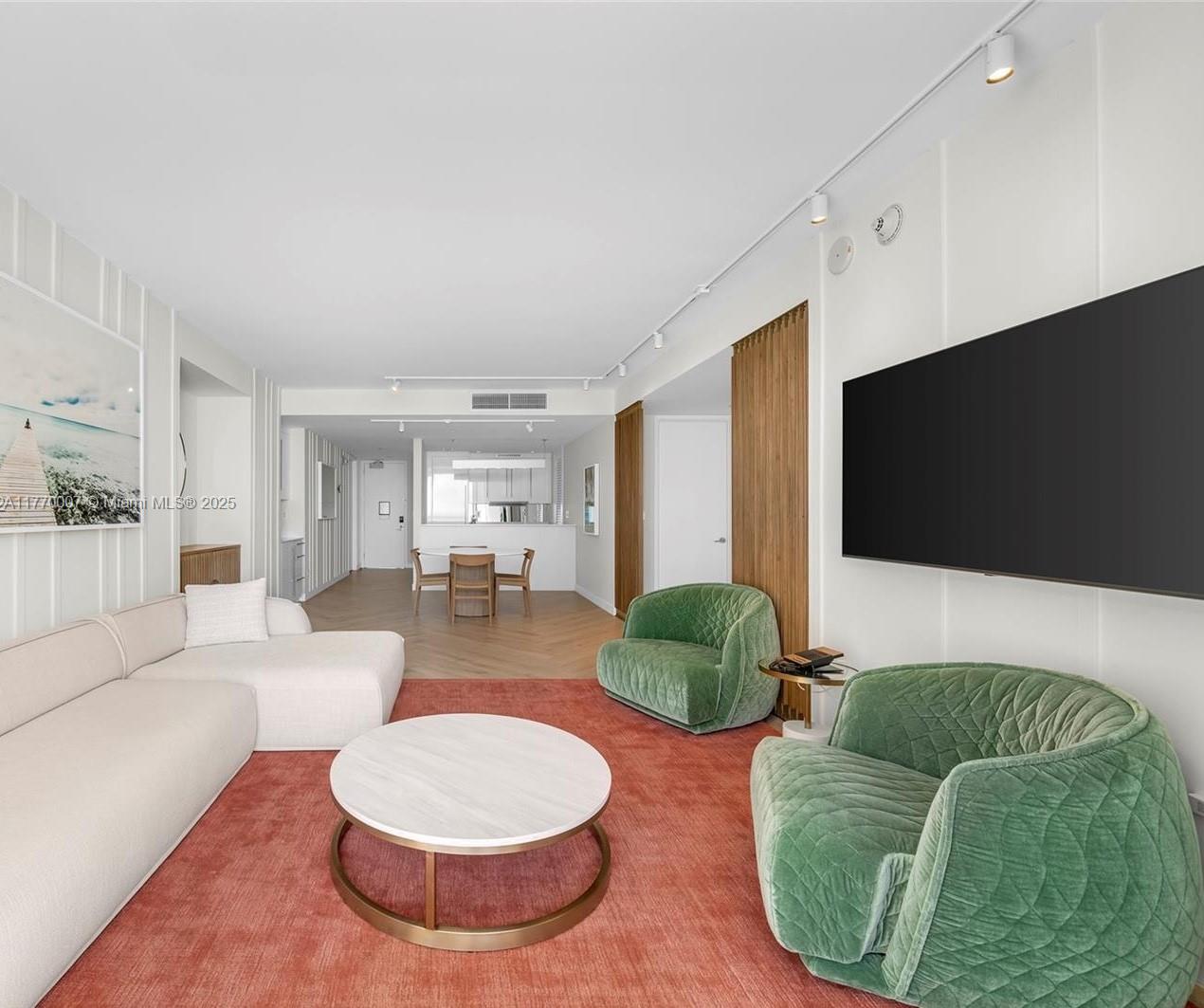 Discover the ultimate in luxury beach living with this expansive two-bedroom unit at The W in South Beach, a rare find on the market. This elegant 2-bedroom, 2-bathroom residence spans 1,543 square feet and includes a private den/media room. Enjoy breathtaking beach and ocean views from three distinct terraces. The unit features an open-concept living and dining area, complemented by a kitchen equipped with high-end Wolf and Sub-Zero appliances, granite countertops, and Italian cabinetry. The principal suite offers a private terrace with stunning views, wood flooring, a walk-in closet, and a chic bathroom complete with a sunken tub, dual sinks, and a glass/marble shower. Continues in Supplemental Remarks