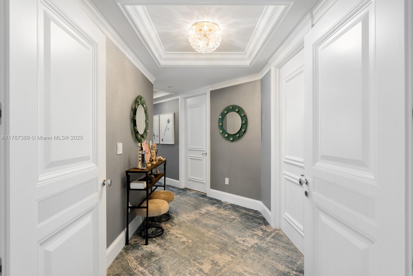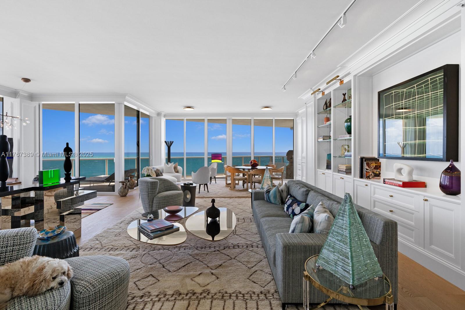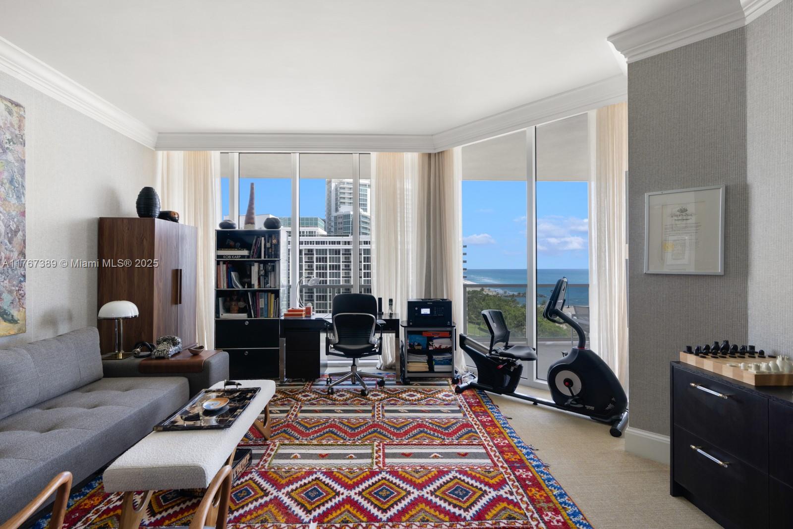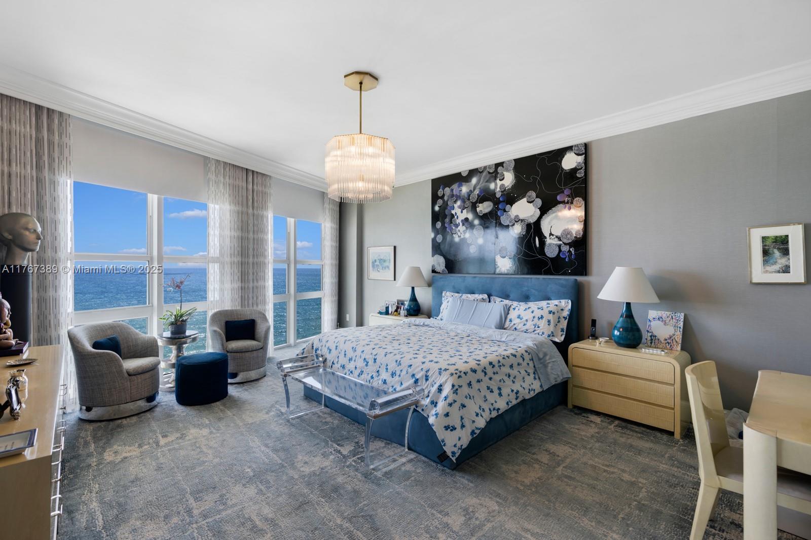 Luxuriate in this Bellini corner residence in Bal Harbour with stunning N.E. & W. Ocean views. This 3BR+office, 6.5BA, 3,820 SF gem features exquisite woodwork, custom storage, and a private elevator opening to bright living spaces with floor-to-ceiling windows and a 700+ SF terrace surrounded by endless ocean views. The gourmet kitchen boasts 10-ft ceilings, premium appliances, and custom cabinetry. The primary suite offers sunrise views, 3 walk-in closets, and 2 spa-like bathrooms. Enjoy exclusive amenities: heated pool, private beach pavilion, gym, spa, salon, Pilates, dining, and 2 parking spaces. Steps from the beach and world-class shopping/dining, this is your ultimate coastal retreat.