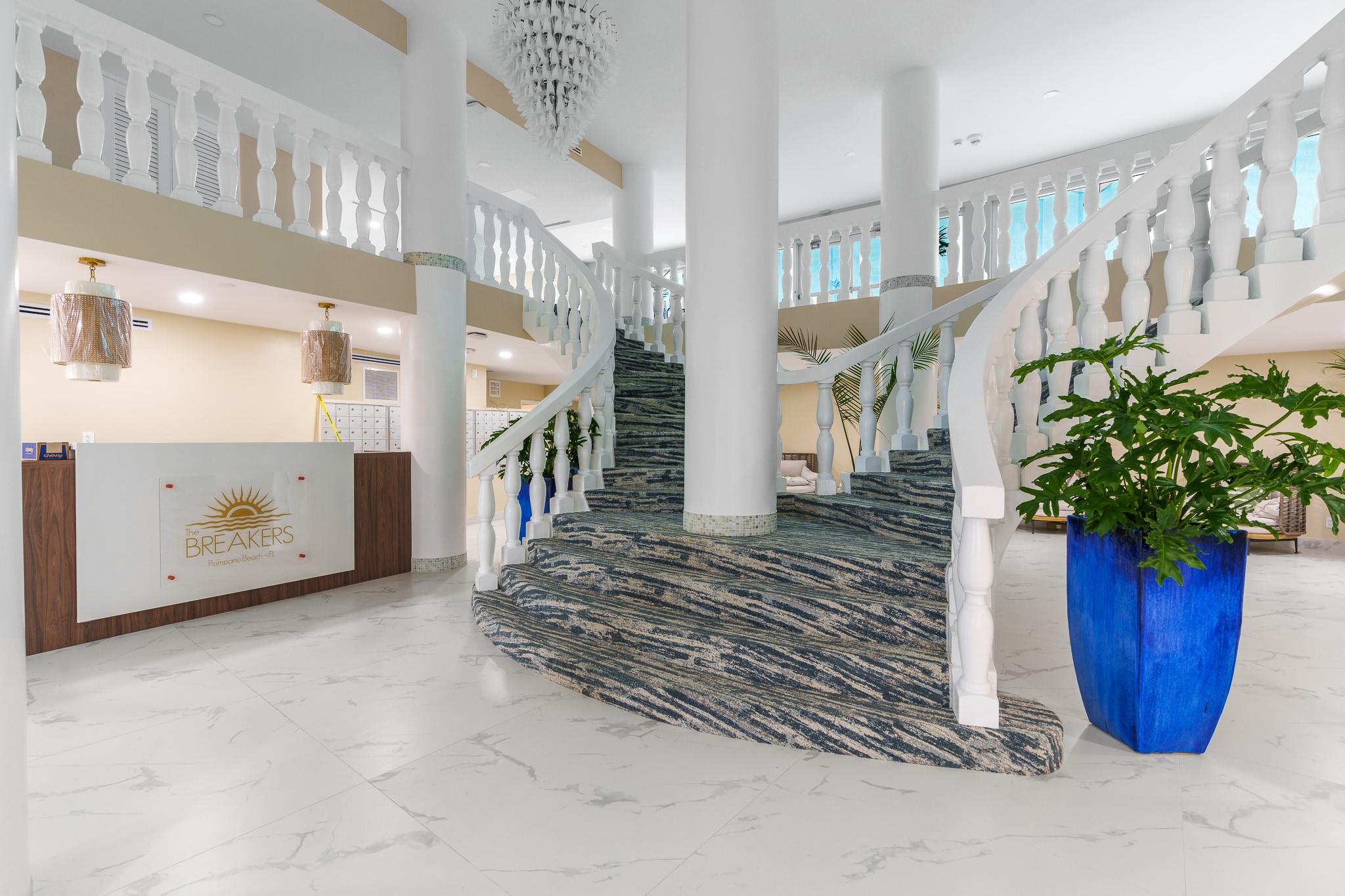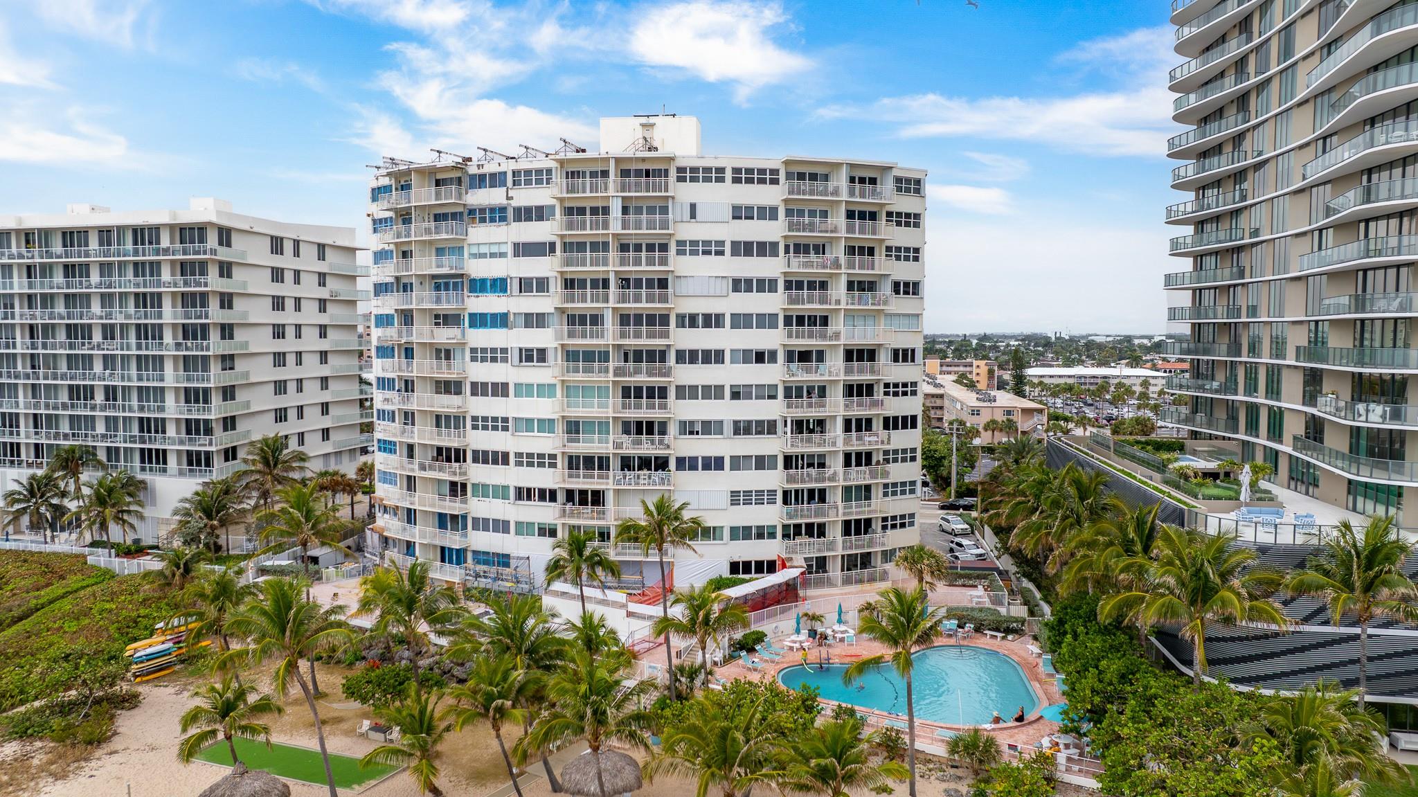 Great opportunity to live in a building directly on the sand just north of the grand new redevelopment around the fishing pier in Pompano Beach, and under $450,000! Two bedroom/ two bath condo with amazing views of the ocean from the primary bedroom and living room! This corner unit gives you more light, two oversized balconies and a little more square footage! Brand new accordion shutters open and close easily and smoothly. Building is fiscally sound and pet friendly! Common areas have just been renovated. Stunning pool deck has loads of room and leads directly to the sand and ocean! Beach area includes Bocce Ball, tiki huts and grills for The Breakers personal use! Walk to restaurants, shopping, bars, tiki bar & entertainment! Owners may have two cars! Rent after one year of ownership!