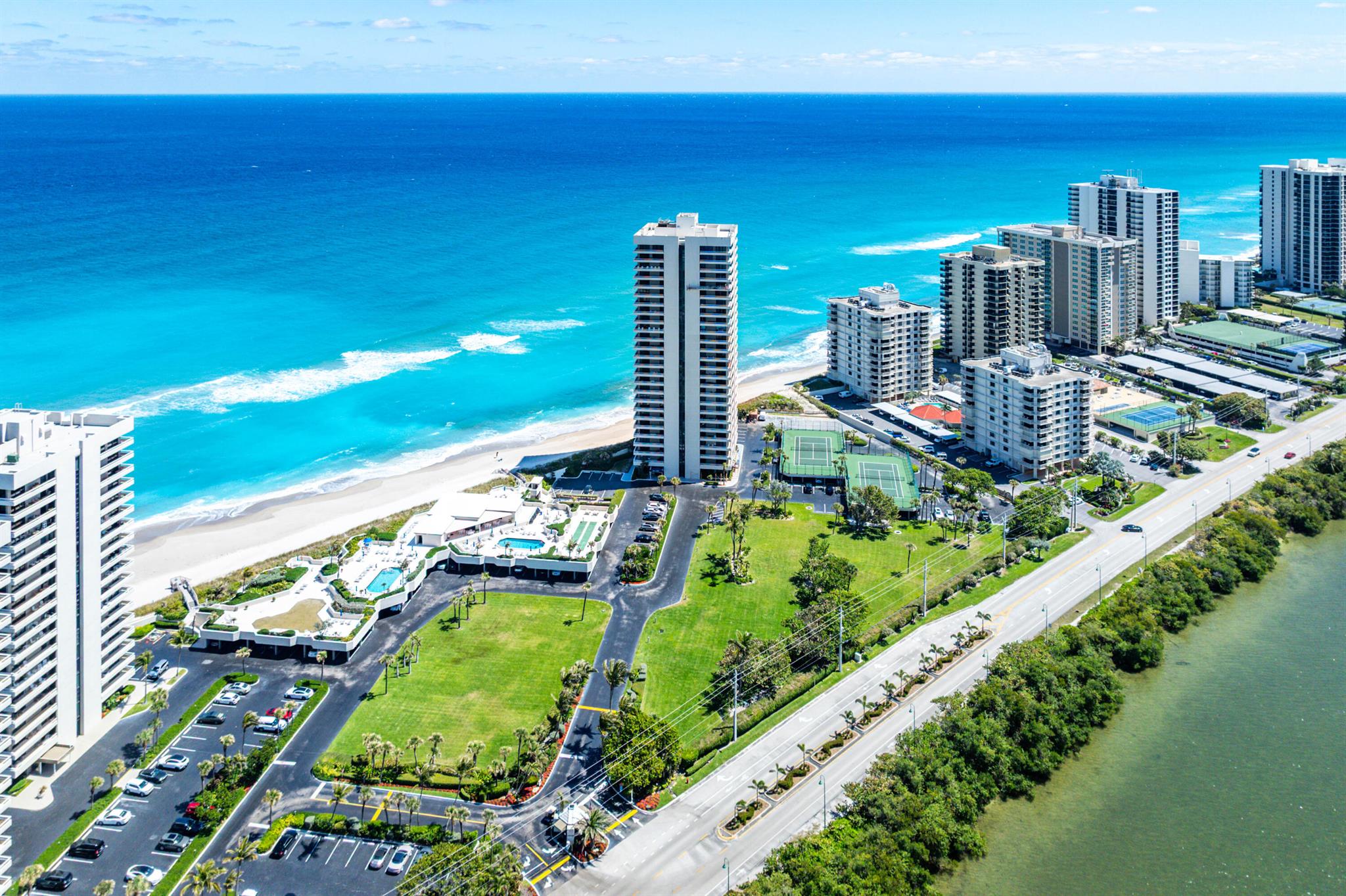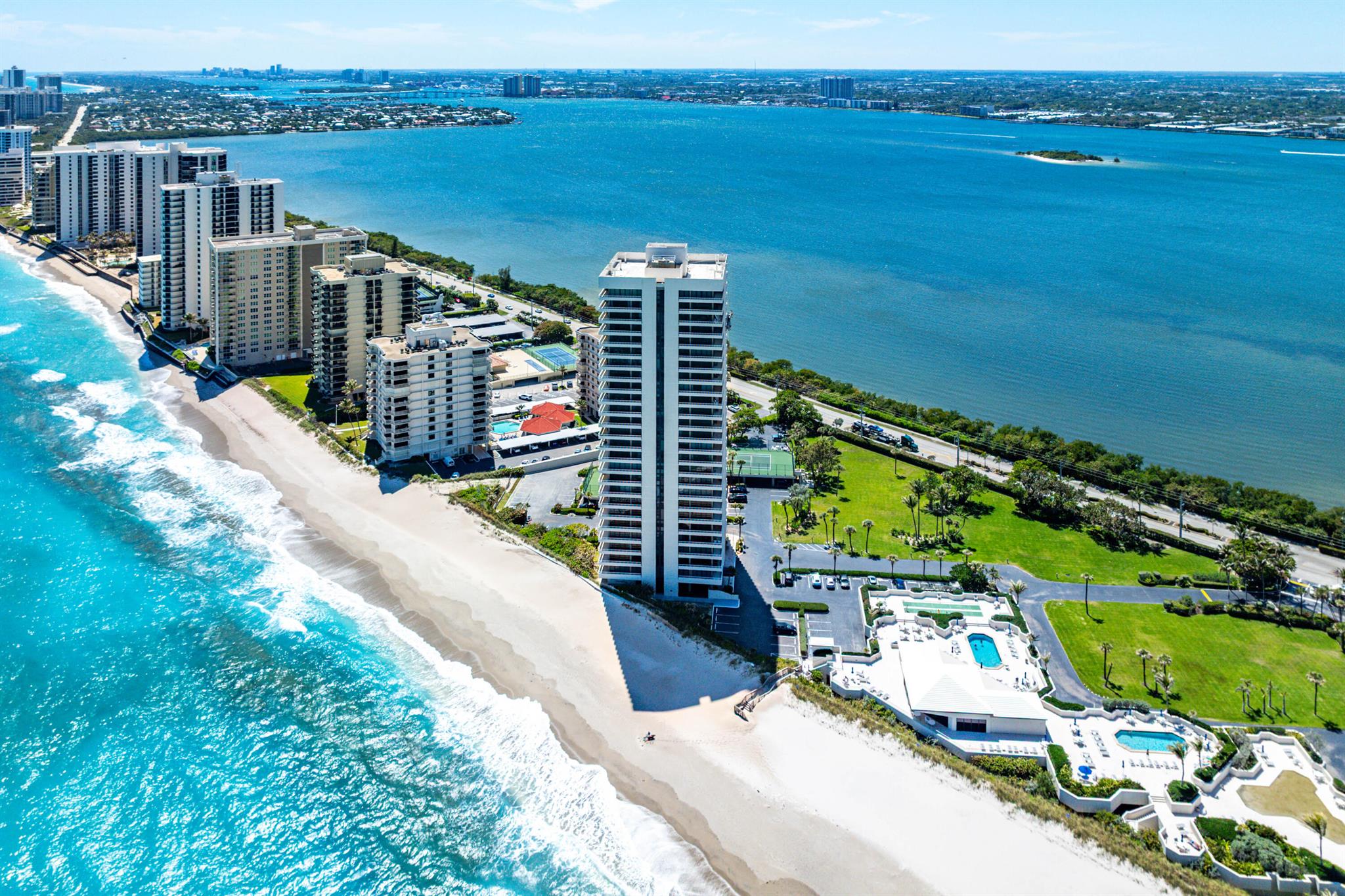 Experience unparalleled luxury in this stunning 2-bedroom, 2-bathroom direct oceanfront condo on prestigious Singer Island. Bask in breathtaking panoramic views through massive windows that flood the space with natural light. The modern white kitchen, complete with stainless steel appliances, is a chef's dream. Both bathrooms have been tastefully updated, adding to the sophisticated charm. Step onto the expansive wraparound balcony, where you'll enjoy unobstructed ocean vistas and sweeping intercoastal views, towering above neighboring buildings. This meticulously maintained building boasts recent upgrades, including a stylishly renovated lobby, state-of-the-art gym, serene library, and refreshed hallways. The spacious clubhouse offers spectacular views of the beach and ocean,