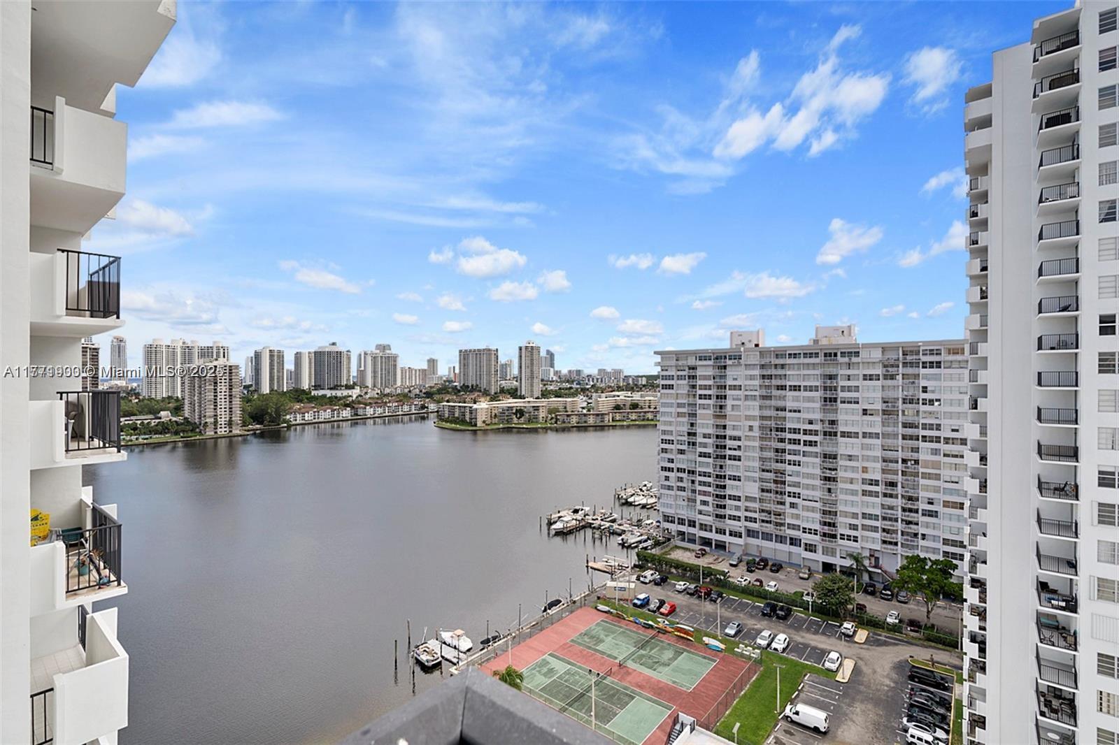 Come by to see this one of a kind unit on the 19th floor with water views. Updated bathrooms, kitchen, and new floor. Separate dining area in a room that could be used as a den, office or child play area. Plenty of natural light without the extra heat from the sun. As if that weren't enough, the building offers an array of amenities including a heated pool, tennis court, fully-equipped gym, and pool table, ensuring there's never a dull moment. Situated within walking distance to Aventura Mall, as well as a walking distance of restaurants, supermarkets, banks, and stores, convenience is at your fingertips.