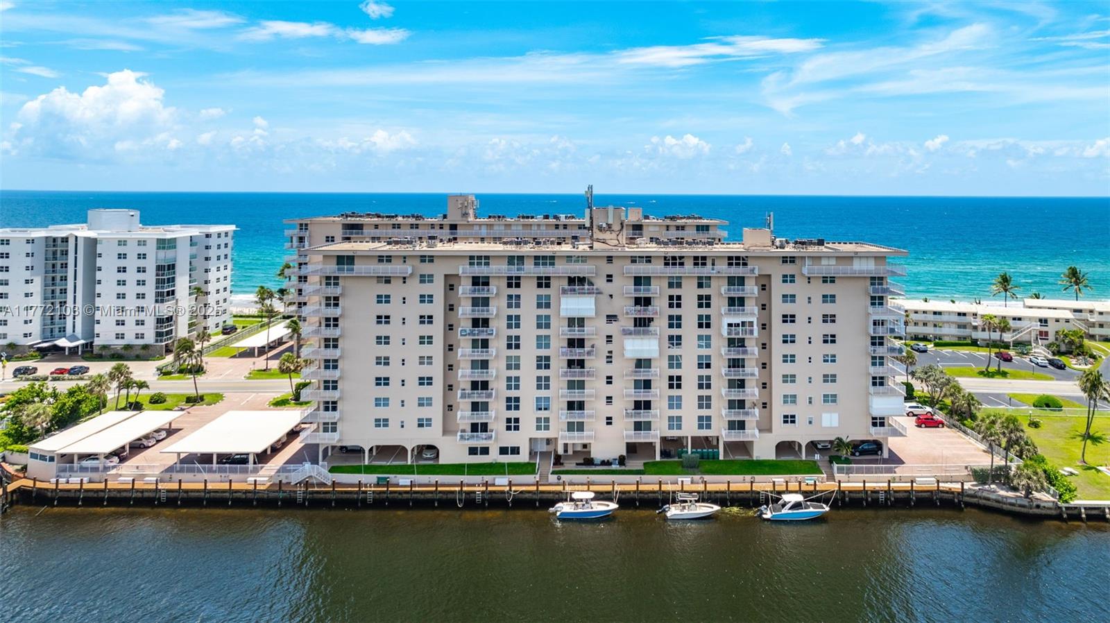 This beautifully kept Condo in Hillsboro Beach offers the ultimate waterfront lifestyle. Designed w/an open floor plan features a spacious kitchen with counter seating and newer appliances. Large bedrooms w/a walk-in closet,and the convenience of **IN-Unit LAUNDRY**, plus a generous storage unit on the same floor. Impact windows & doors fill the space w/natural light, leading to a stunning open balcony where you can take in breathtaking Intracoastal Waterway views.The resort-style amenities include a heated pool, clubhouse, fitness room, and private beach access just across the street.Covered parking is conveniently located under the building.For boating enthusiasts, the community offers dockage for vessels up to 37’ with no fixed bridges. Coastal living where paradise meets affordability!