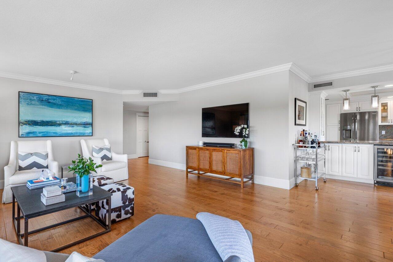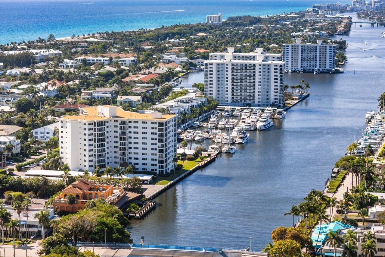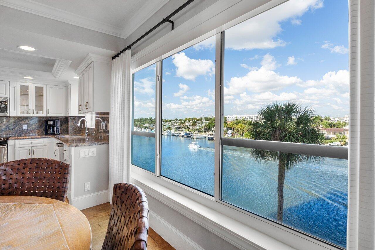A MUST SEE: Bar Harbour is ideally situated just 1 block from Atlantic Ave and 2 blocks from the shores of the Atlantic Ocean. This exceptional 2-bedroom, 2-bathroom condo is in pristine, MOVE-IN condition, offering breathtaking views of the Intracoastal Waterway and the Atlantic Ave bridge. The unit features a sophisticated, transitional design with an open-concept kitchen, snack bar, and formal dining area, all with captivating water views. Bar Harbour offers an array of amenities, including fitness center, library/reading room, a rentable guest suite, a beautifully renovated social room, and a lobby. The sparkling pool overlooks the Intracoastal Waterway, providing a serene retreat. Additionally, an on-site manager and 24/7 front desk service ensure convenience and peace of mind. MORE